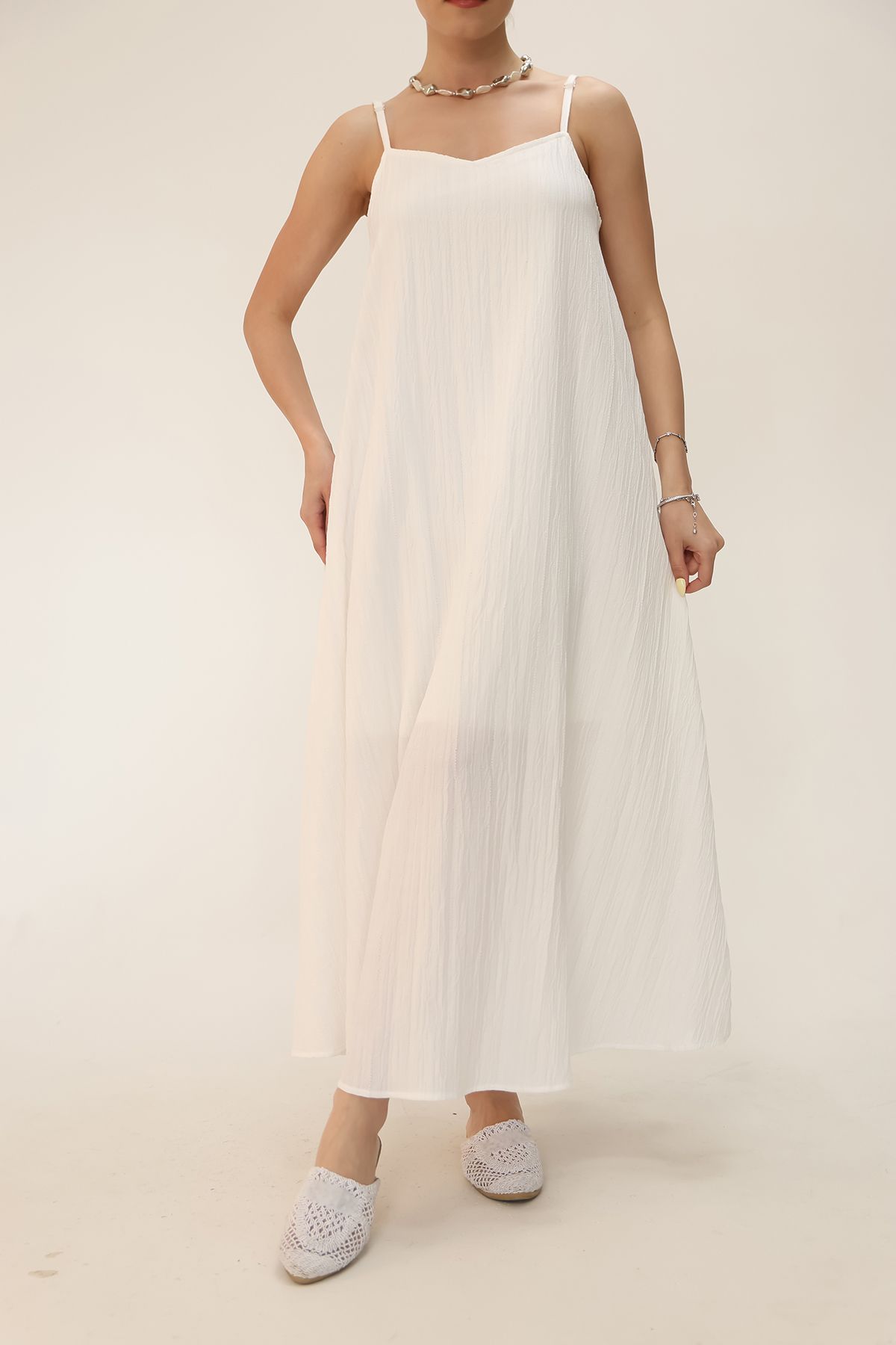 – Zarif tasarımıyla dikkat çeken bu elbise, ekru rengin asaletini yansıtır.; – Dokulu kumaşı sayesinde hem şıklığı hem de konforu bir arada sunar.; – Astarlı yapısı ile iç göstermez ve rahat bir kullanım sağlar.; – Kolay bakım imkanı sunan yıkama talimatları, uzun süreli kullanım için idealdir.; – Özel koleksiyon parçası olarak tasarlanmıştır; zarafetiyle göz alıcı bir görünüm kazandırır.; – Kutusuz ambalajıyla minimalist bir yaklaşım sergilerken, aynı zamanda pratikliği ön planda tutar.; – Günlük kullanıma uygun casual tasarımıyla her ortamda rahatlıkla tercih edilebilir.; – V yaka kesimi ile feminen çizgilere sahip olup, yaz ayları için hafiflik katmaktadır.; – Kolsuz kol tipiyle sıcak günlerde serinlik hissi verirken, modern siluetiyle trendleri takip eder.; – Relaxed kalıbı sayesinde vücut hatlarını sıkmadan özgürce hareket etme olanağı tanır.; – Pamuklu materyali cildinizle dost dokunuşlar sunarken, keten kumaşın doğal nefes alabilirliğiyle konforu arttırır.; – Uzun boyu ile bacakları olduğundan daha uzun göstererek feminen duruşunu pekiştirir.; – Yetişkin yaş grubuna hitap eden bu parça, günlük giyimde şıklığı yakalamak isteyenler için mükemmel seçimdir.