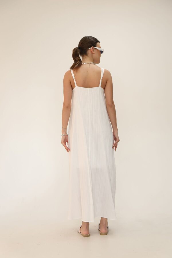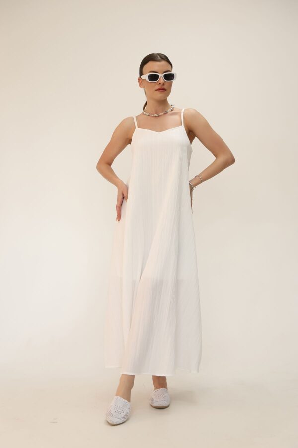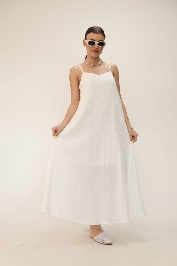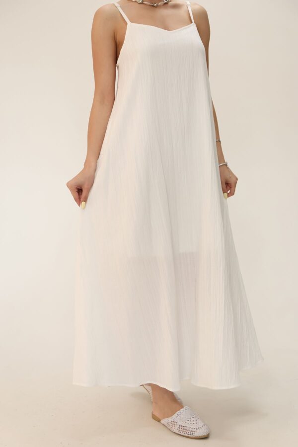 – Zarif tasarımıyla dikkat çeken bu elbise, ekru rengin asaletini yansıtır.; – Dokulu kumaşı sayesinde hem şıklığı hem de konforu bir arada sunar.; – Astarlı yapısı ile iç göstermez ve rahat bir kullanım sağlar.; – Kolay bakım imkanı sunan yıkama talimatları, uzun süreli kullanım için idealdir.; – Özel koleksiyon parçası olarak tasarlanmıştır; zarafetiyle göz alıcı bir görünüm kazandırır.; – Kutusuz ambalajıyla minimalist bir yaklaşım sergilerken, aynı zamanda pratikliği ön planda tutar.; – Günlük kullanıma uygun casual tasarımıyla her ortamda rahatlıkla tercih edilebilir.; – V yaka kesimi ile feminen çizgilere sahip olup, yaz ayları için hafiflik katmaktadır.; – Kolsuz kol tipiyle sıcak günlerde serinlik hissi verirken, modern siluetiyle trendleri takip eder.; – Relaxed kalıbı sayesinde vücut hatlarını sıkmadan özgürce hareket etme olanağı tanır.; – Pamuklu materyali cildinizle dost dokunuşlar sunarken, keten kumaşın doğal nefes alabilirliğiyle konforu arttırır.; – Uzun boyu ile bacakları olduğundan daha uzun göstererek feminen duruşunu pekiştirir.; – Yetişkin yaş grubuna hitap eden bu parça, günlük giyimde şıklığı yakalamak isteyenler için mükemmel seçimdir.