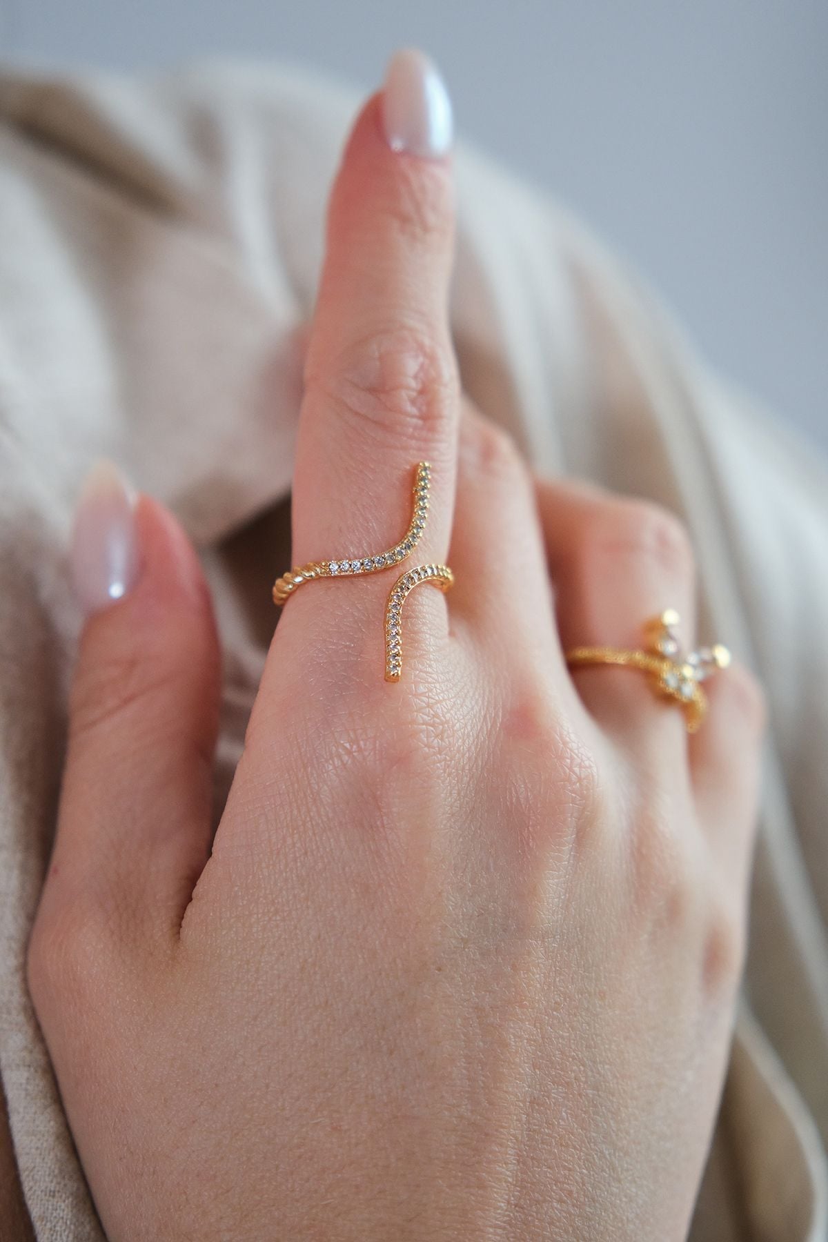 - 1 adet zarif tasarımlı zirkon taşlı yüzük