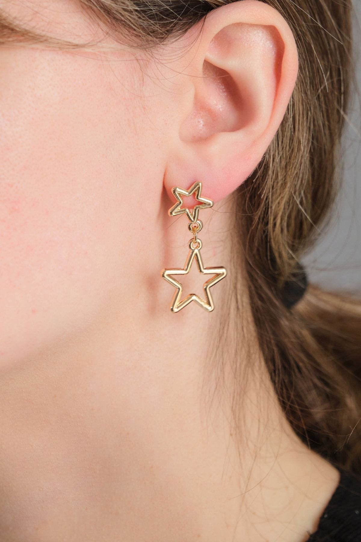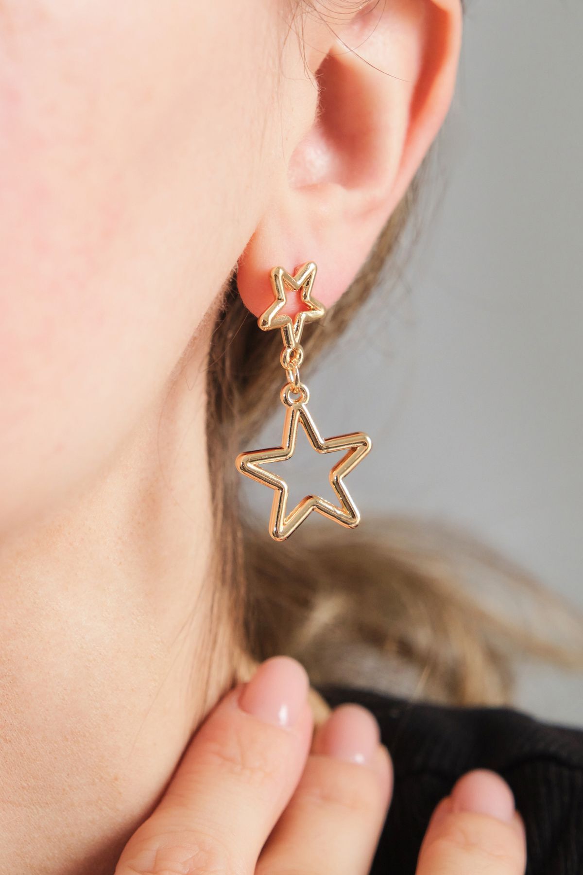 Aurrari Kadın 2’li Sallantılı Gold İnce Yıldız Küpe - Altın Kaplama Hareketli Tasarım İçi Boş Yıldız Küpe