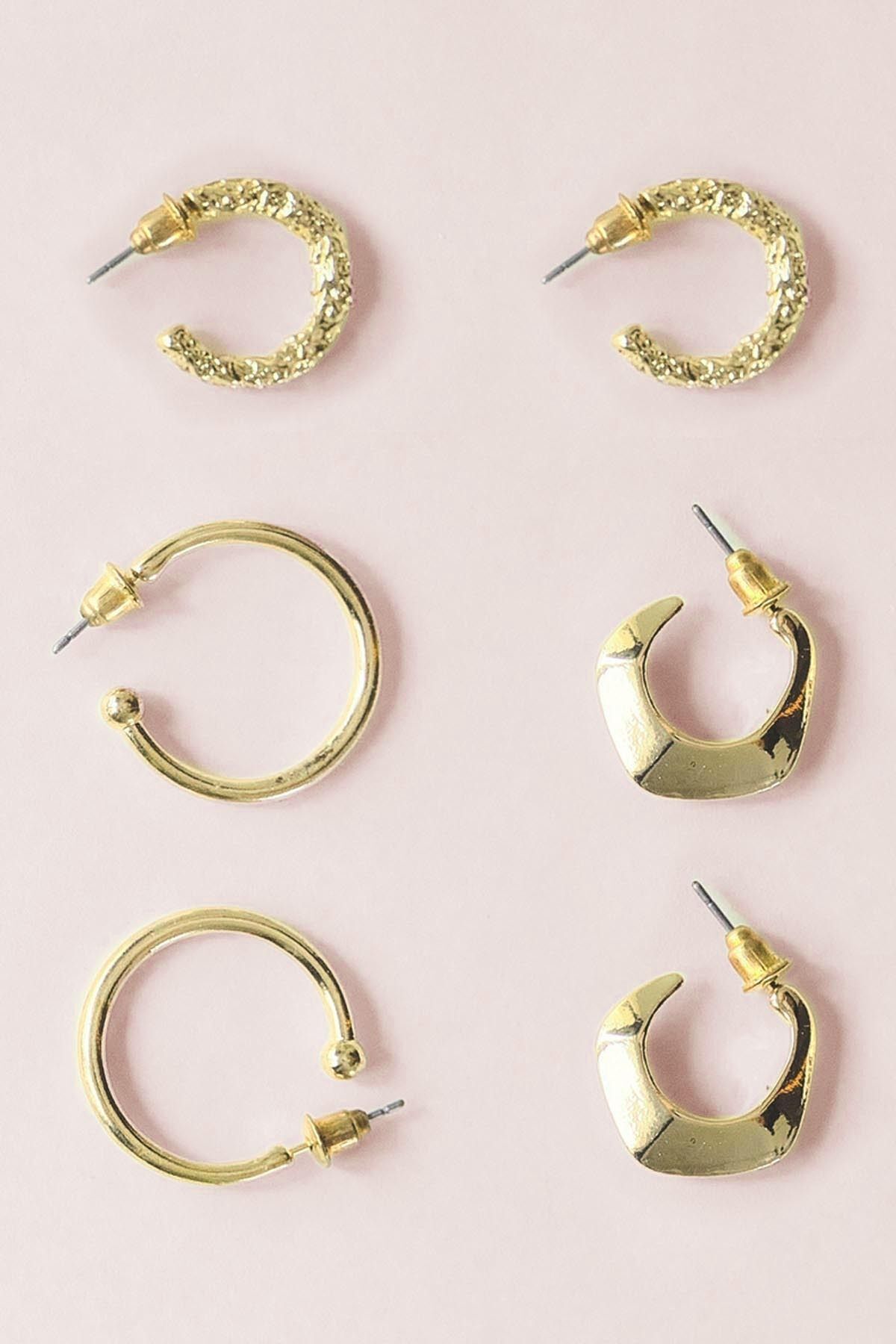 - Zarif tasarımıyla dikkat çeken 6'lı küpe seti, her türlü kıyafetle uyum sağlayarak şıklığınızı tamamlar.; - Altın kaplama malzemesi sayesinde uzun süreli kullanım için idealdir ve parlaklığını korur.; - Kolay bakım imkanı sunan bu küpeler, nemli bir bezle silerek temizlenebilir; böylece her zaman yeni gibi kalır.; - Yerli üretim olan bu ürünler Türkiye'de üretilmiş olup, kalite standartlarına uygun olarak hazırlanmıştır.; - Hem kadın hem de kız kullanıcılar için uygundur; her yaştan kadının tarzına hitap eder.; - Çivi modeli ile modern ve zamansız bir görünüm sunarken, günlük veya özel günlerde rahatlıkla tercih edilebilir.; - Taş detayı içermemesi nedeniyle minimalist bir estetik anlayışa sahiptir; sadelikten hoşlananlar için mükemmel bir seçimdir.