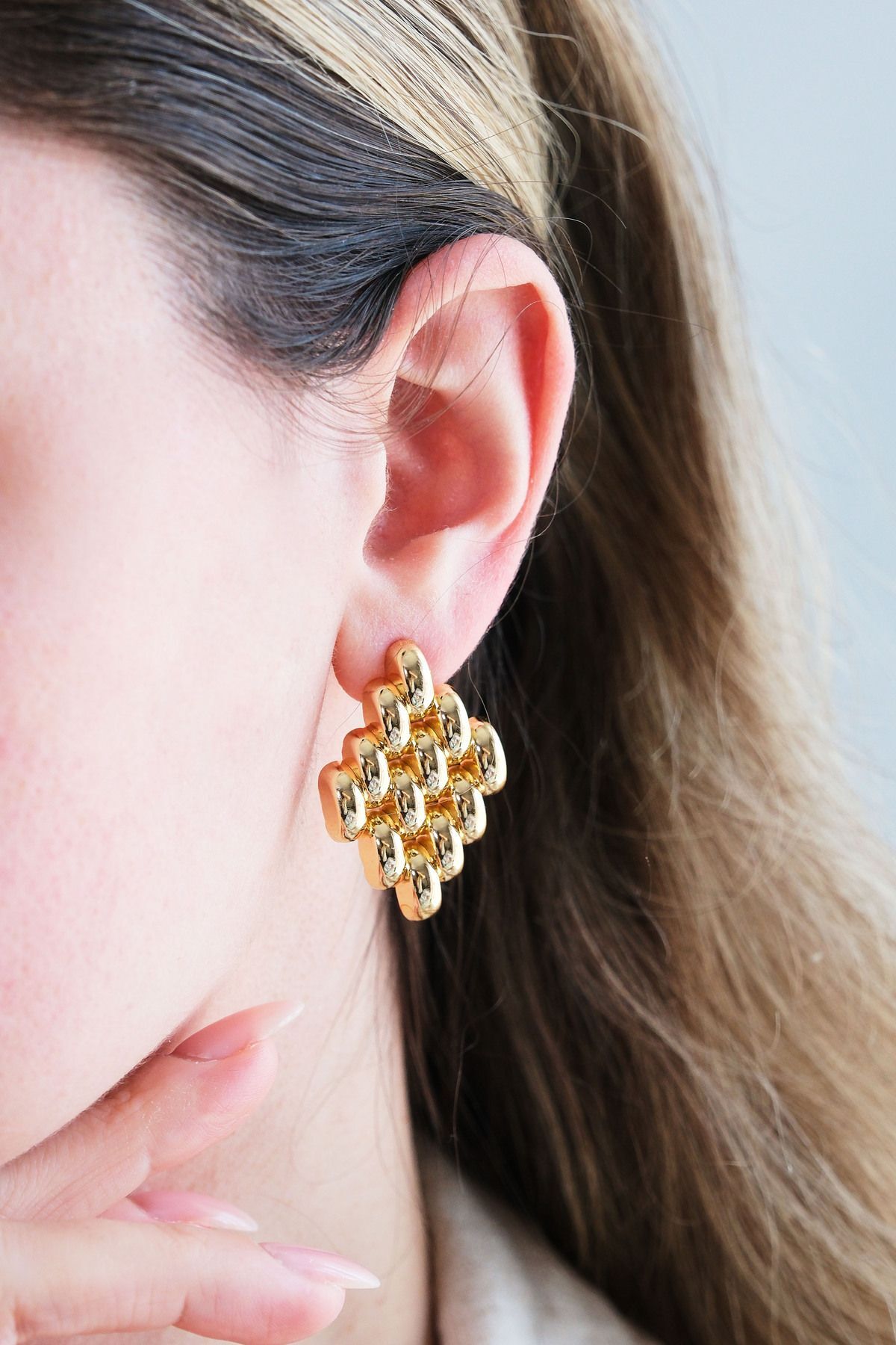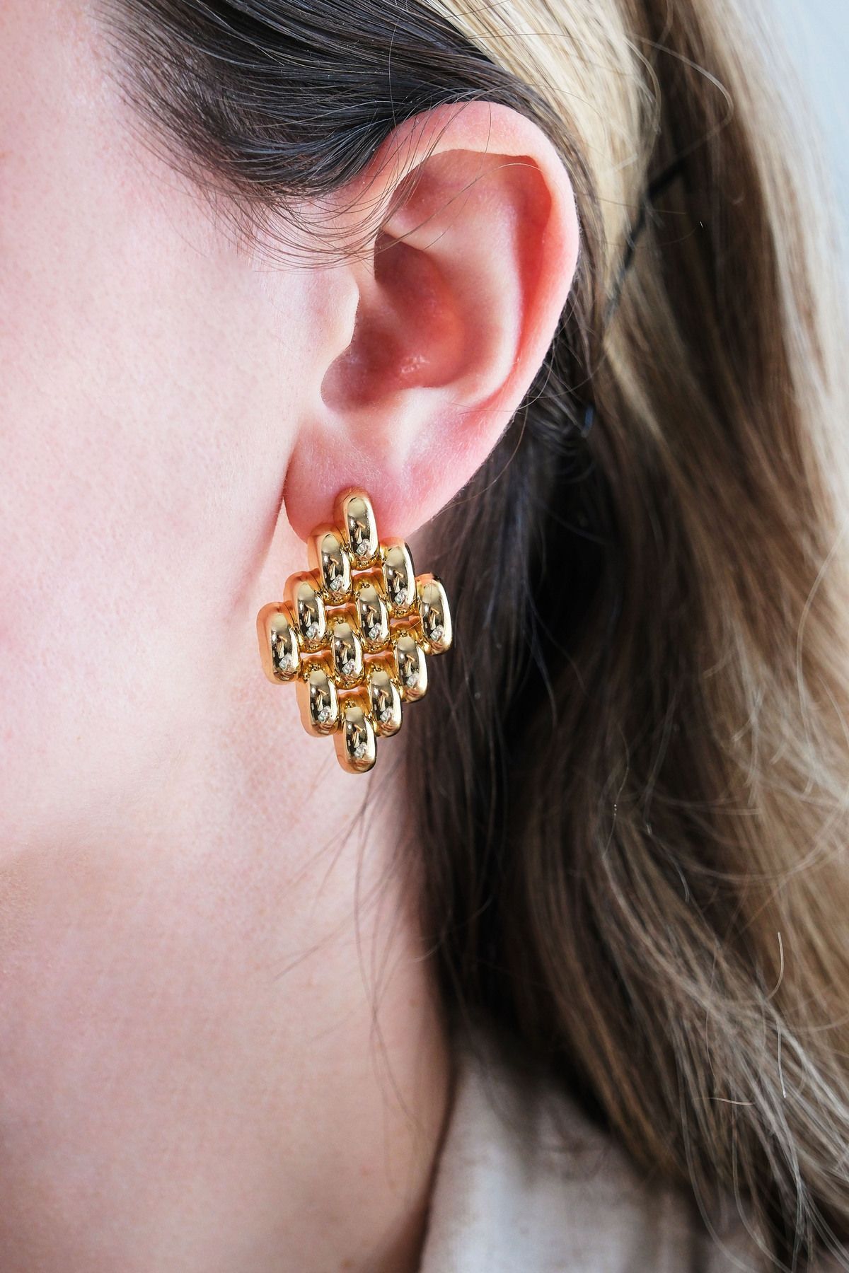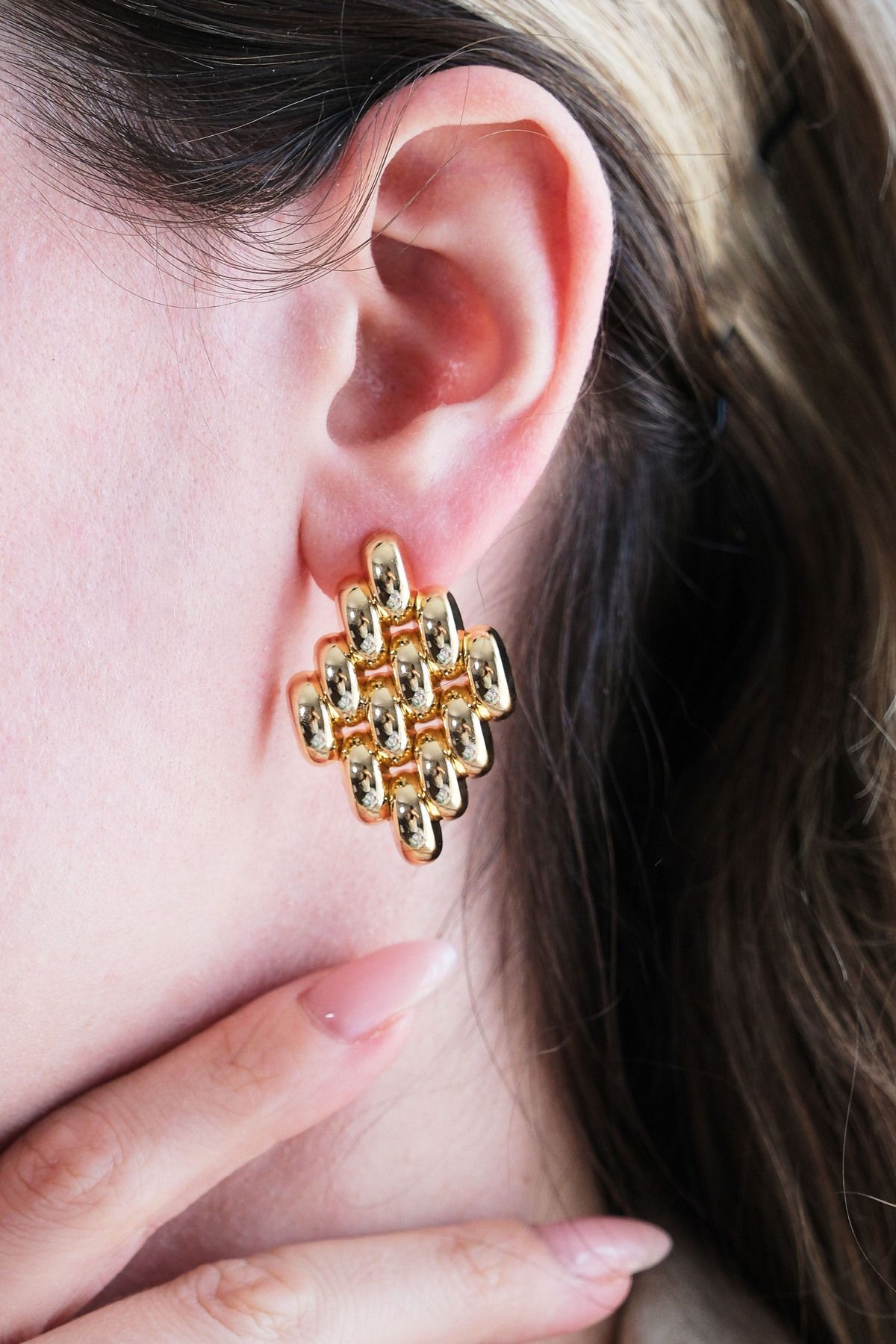Karo desen küpe, altın kaplama geometrik takı, 2'li küpe seti gold, modern desenli küpe, şık kadın aksesuarları, minimalist lüks takı, antialerjik çivi küpe, Aurrari özel tasarım küpe.