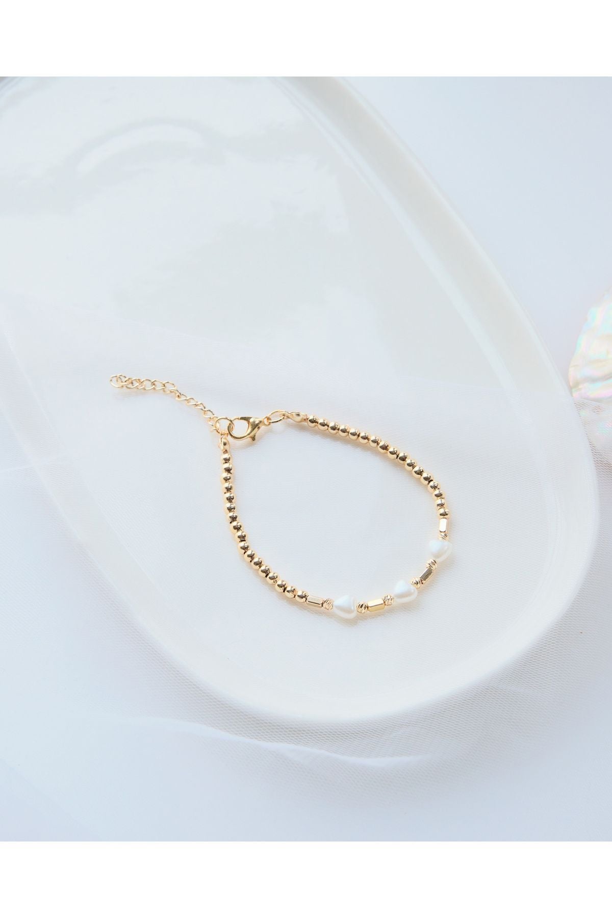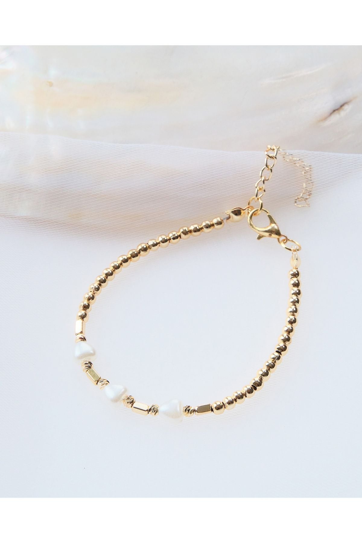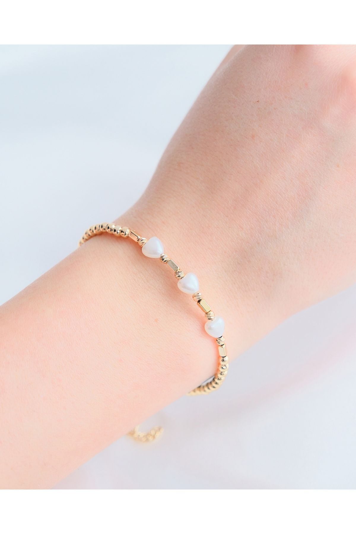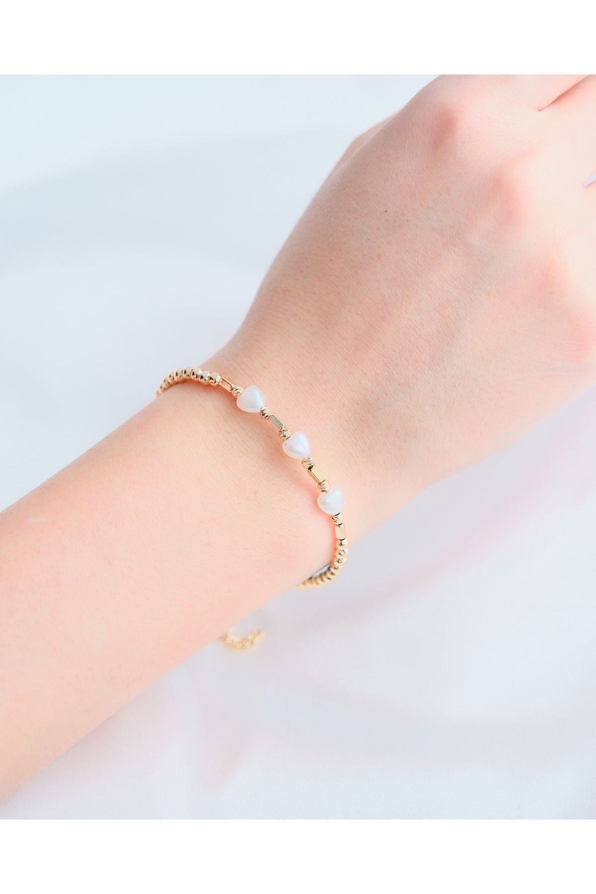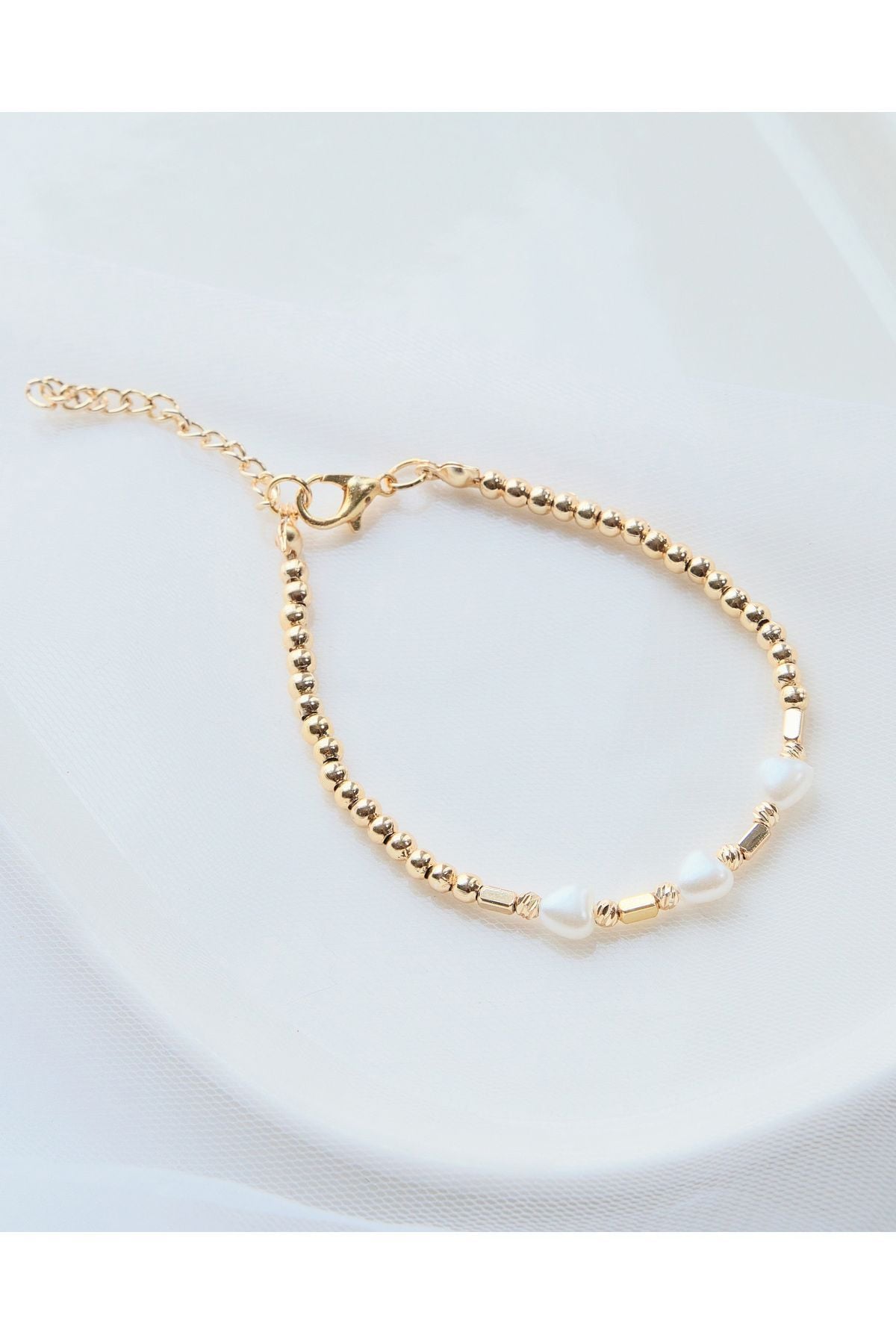 Altın Kaplama 3'lü İncili Kalp Dorika Çelik Bileklik