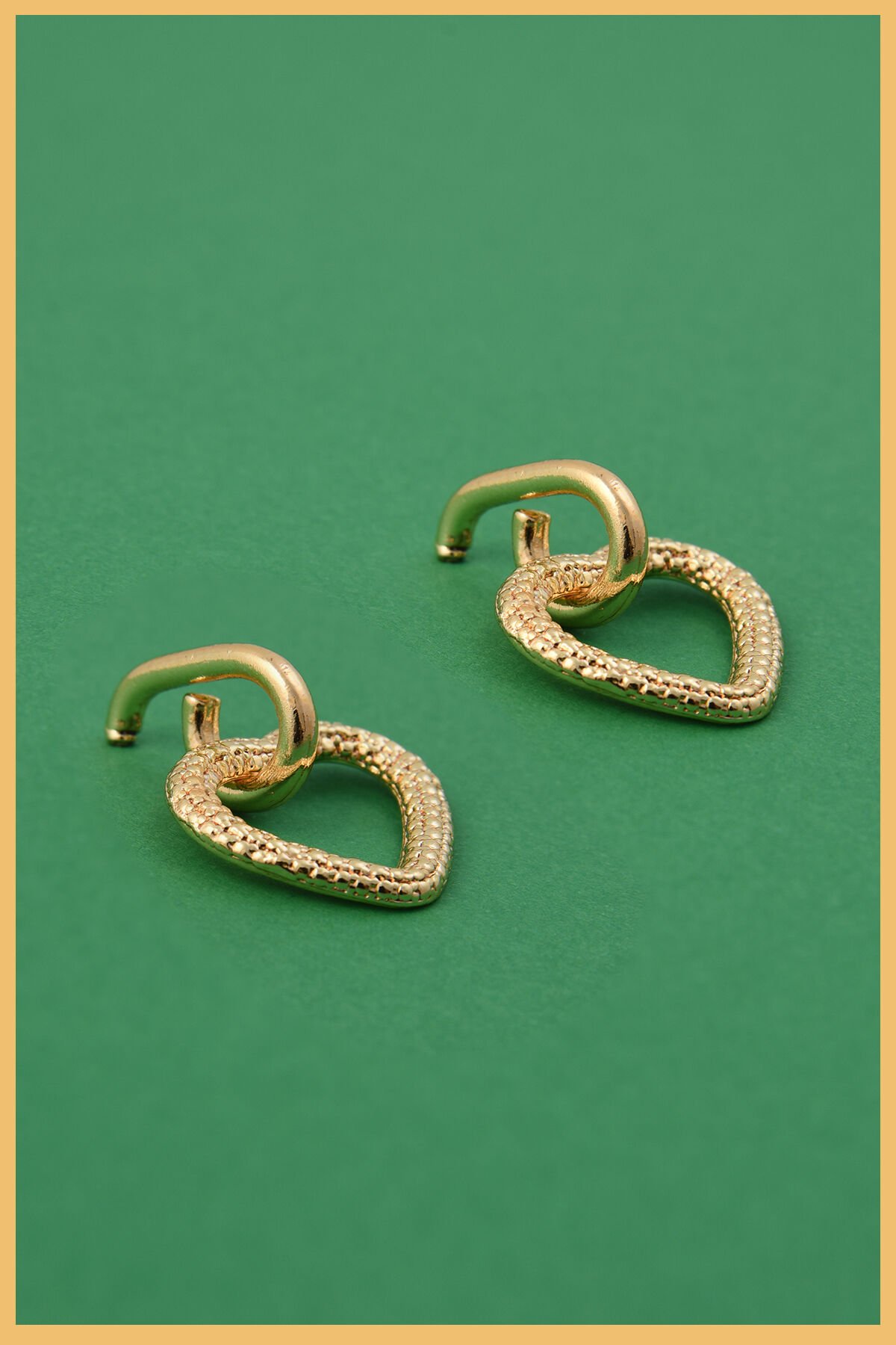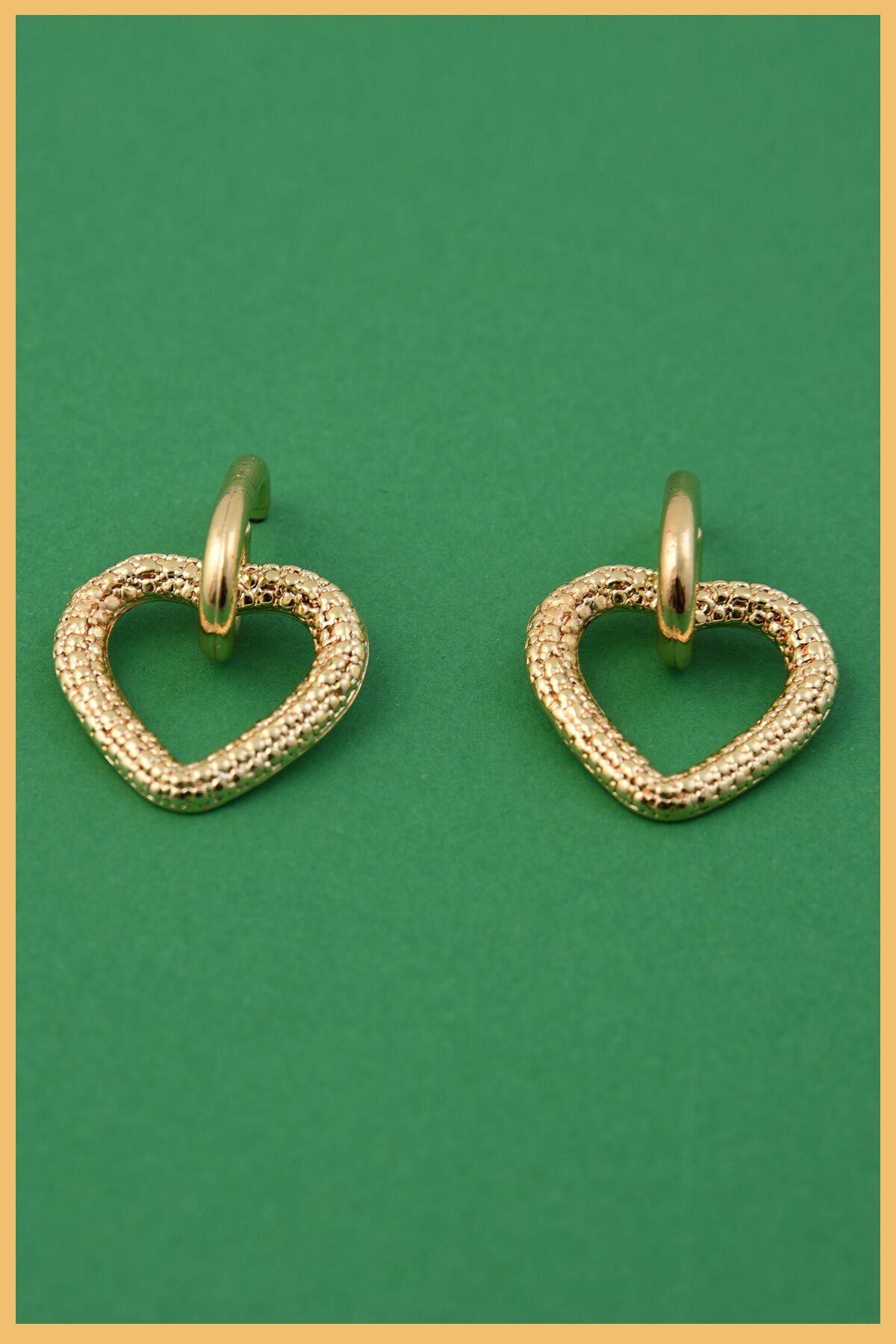 Altın Kaplama Desenli Sallantılı Kalp Küpe