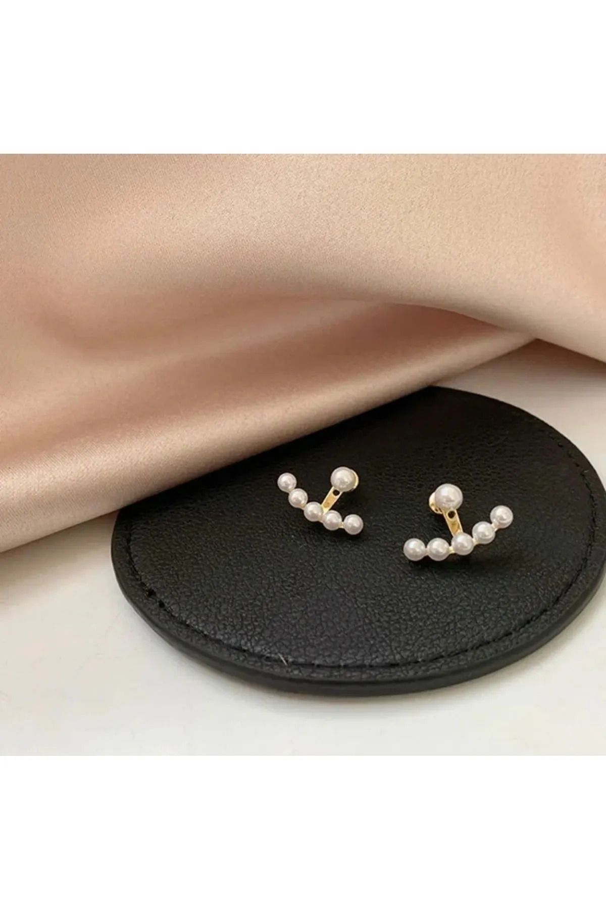 Altın Kaplama İncili Çift Kullanım Yarım Ay Küpe