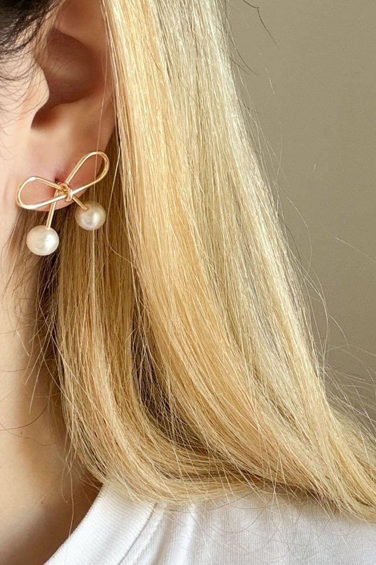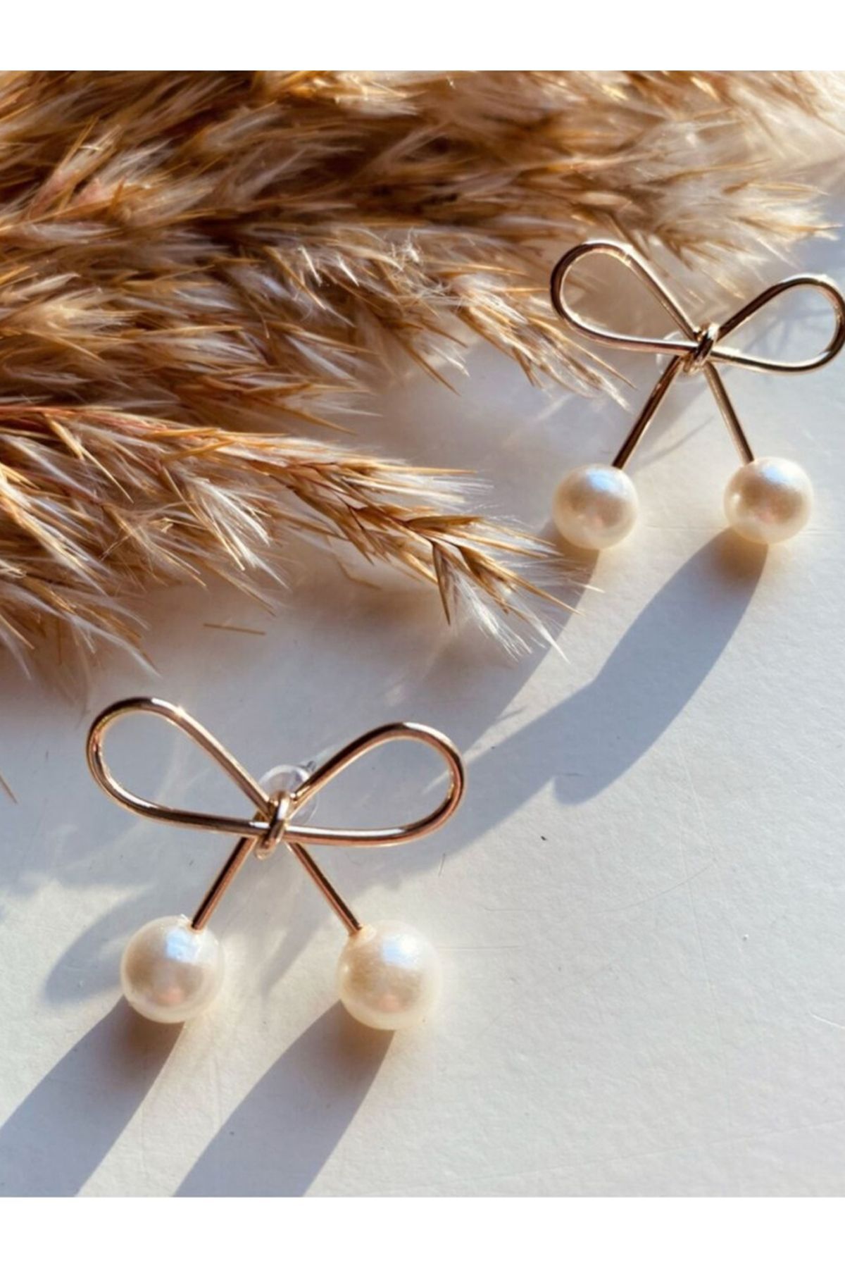 Altın Kaplama İncili Fiyonk Küpe