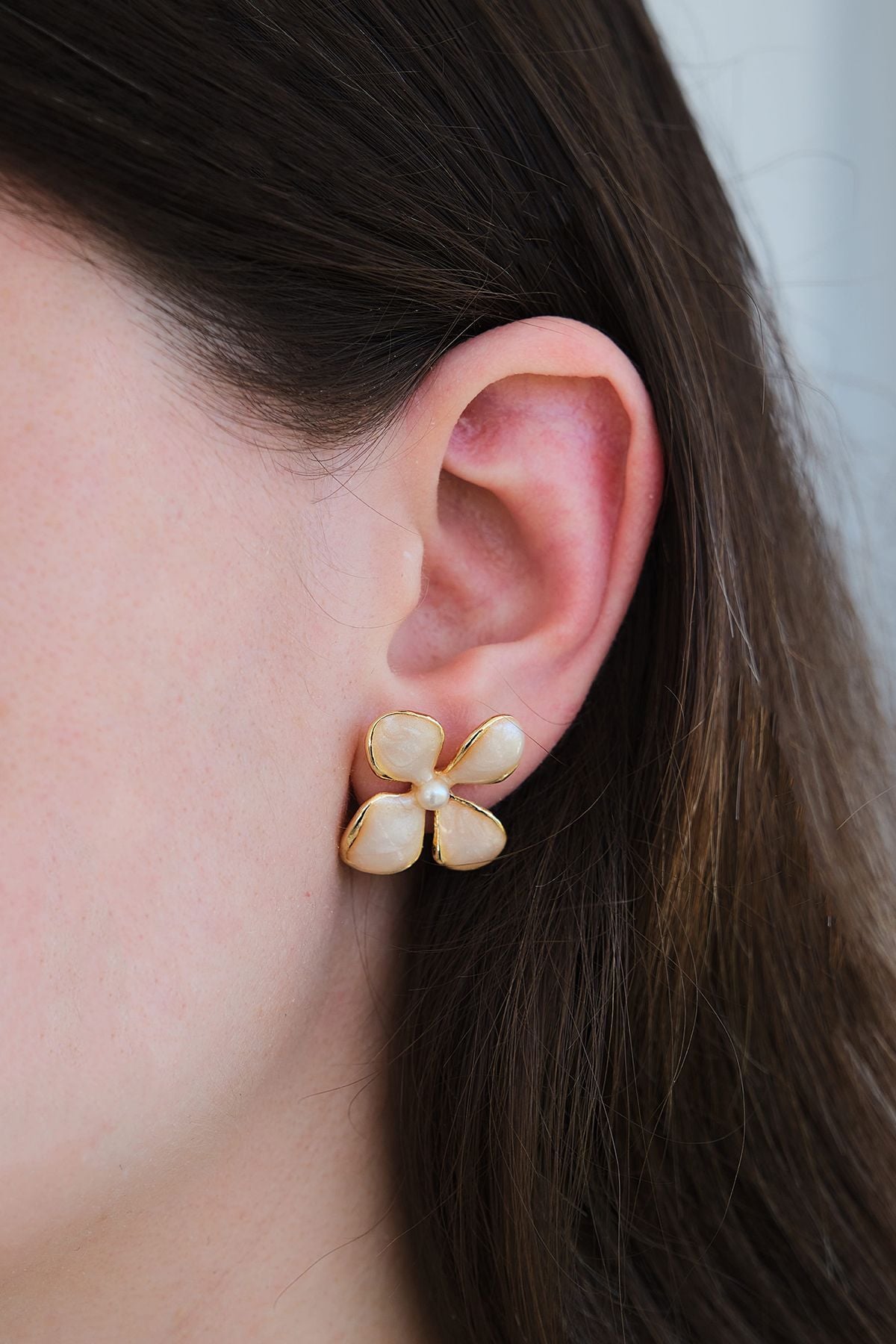- Zarif altın kaplama, her türlü kıyafeti şıklıkla tamamlar.; - mineli çiçek tasarımı, göz alıcı bir görünüm sunar.; - Bakım talimatlarına uygun şekilde nemli bir bez ile silerek uzun süreli kullanım sağlar.; - Kadın ve kız kullanıcılar için idealdir; zarafetiyle dikkat çeker.; - Üretim yeri Türkiye'de gerçekleştirilmiş olup yerel işçilik kalitesini yansıtır.; - Çivi modeli sayesinde kolayca takılıp çıkarılabilir ve günlük kullanım için uygundur.; - Pirinç materyali dayanıklılığı artırırken, inci taş detaylarıyla sofistike bir dokunuş katmaktadır.