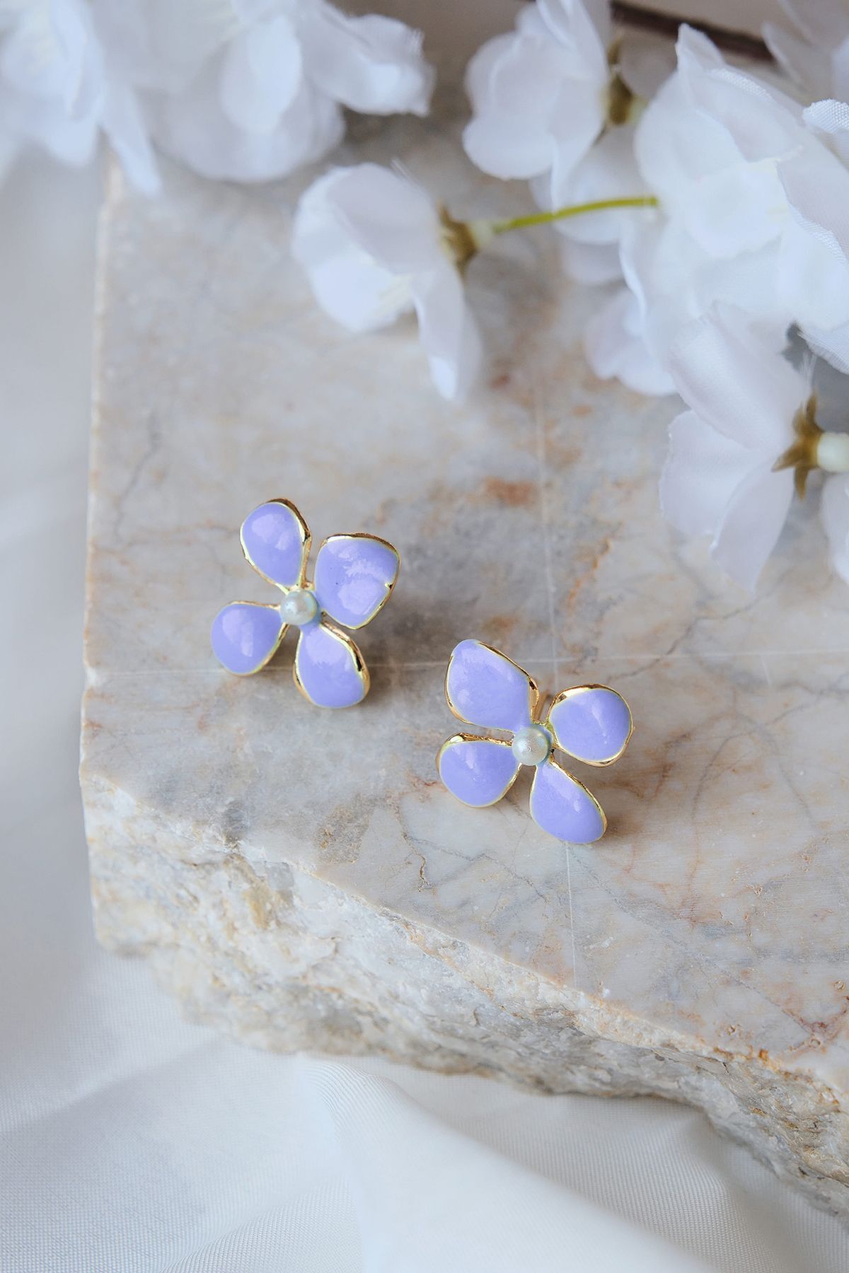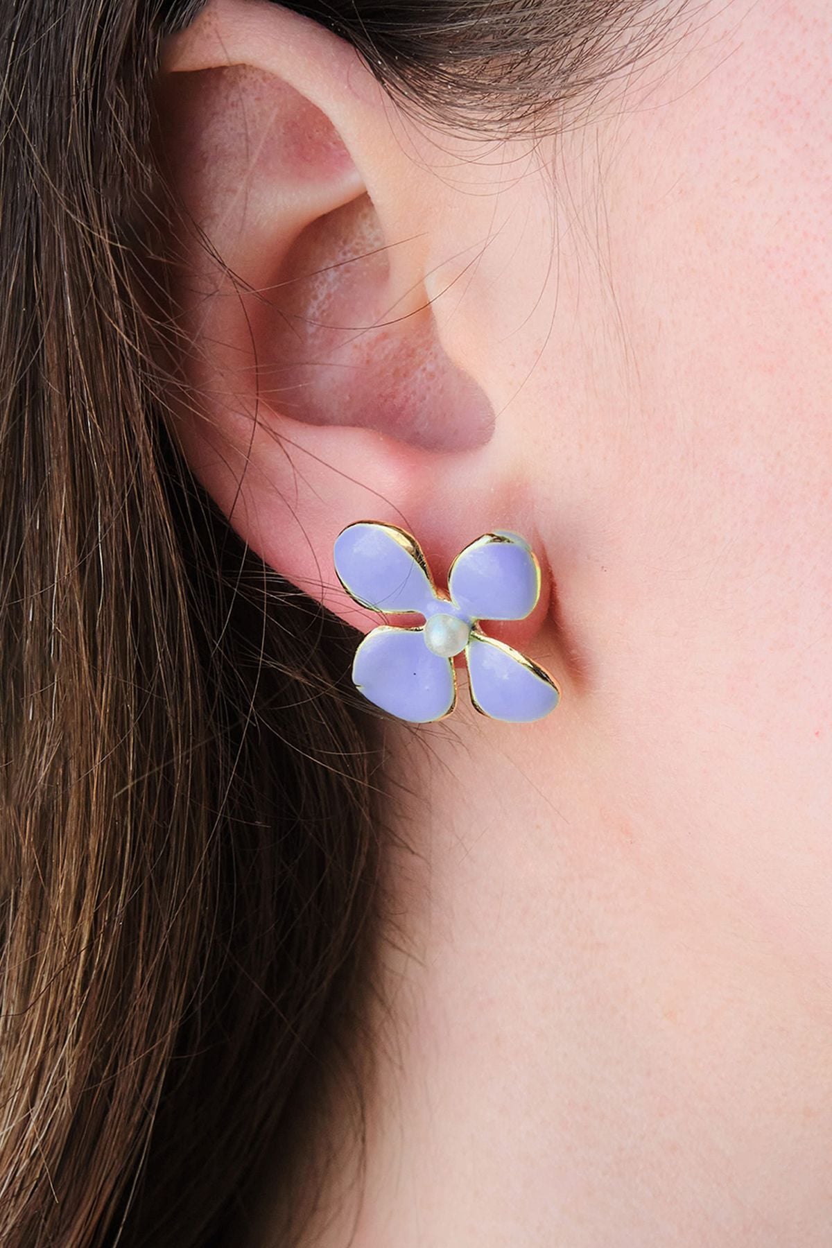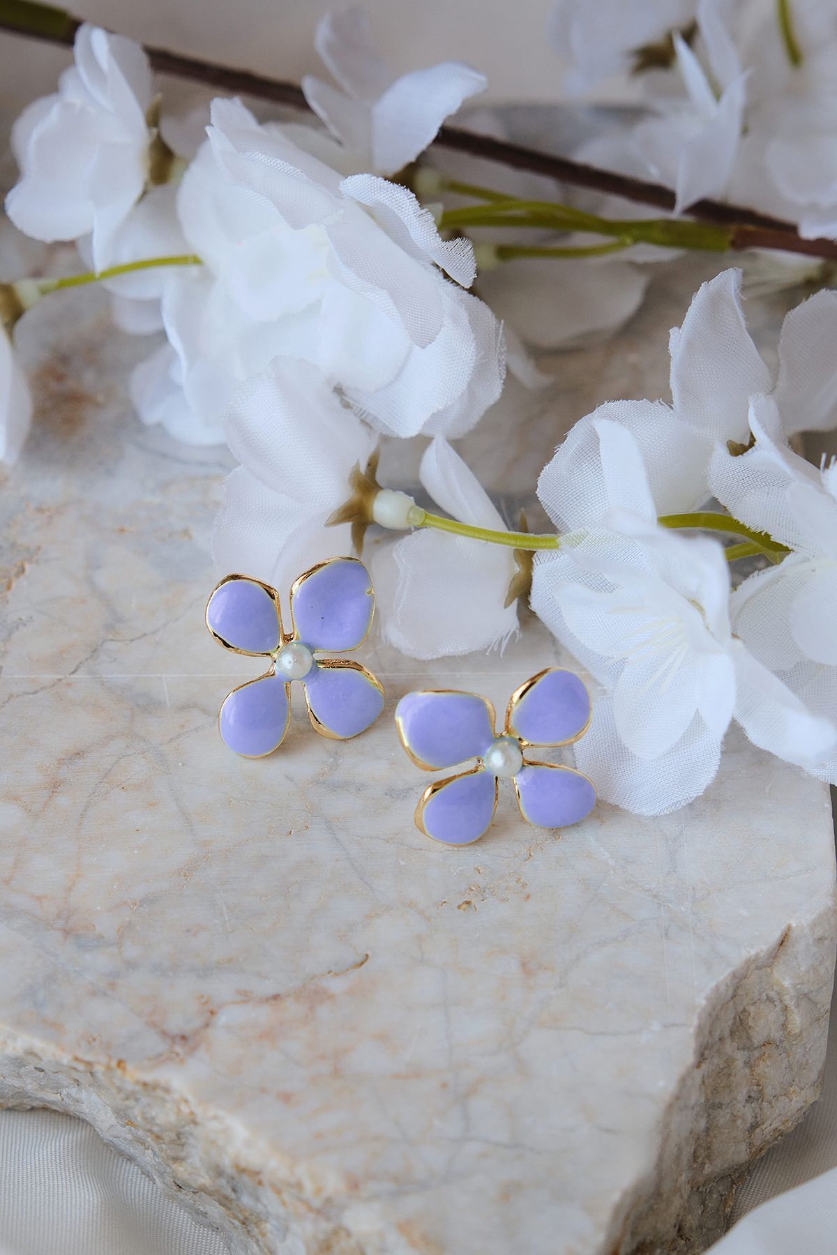 Altın Kaplama İncili Mor Mineli Çiçek Küpe