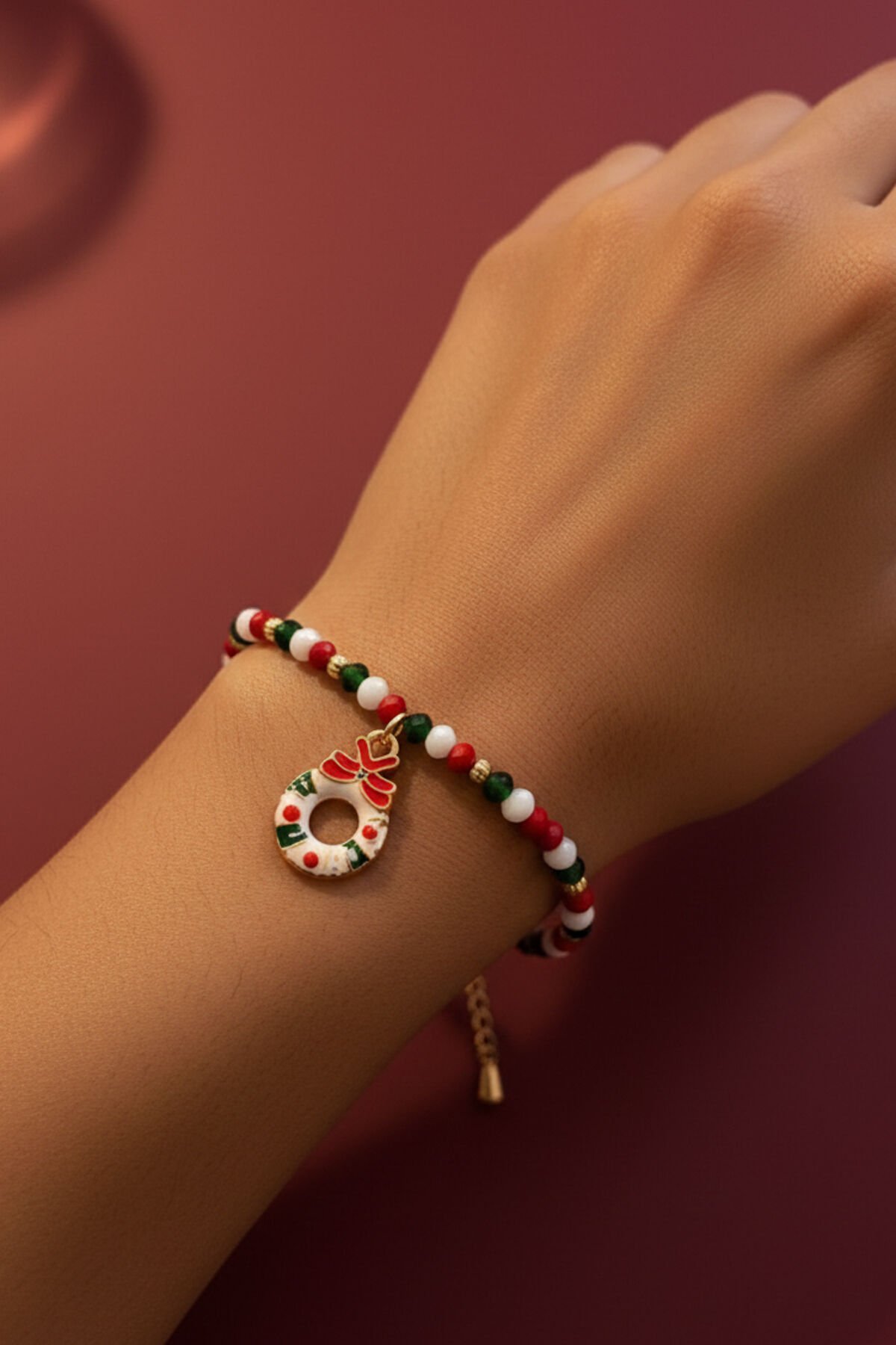 Bu neşeli yılbaşı bilekliğini, kırmızı veya yeşil tonlarındaki kışlık trikolarınızla kombinleyerek tematik bir uyum yakalayabilirsiniz. Günlük kullanımda Aurrari’nin gold zincir bileklikleriyle birleştirerek katmanlı bir görünüm elde edebilir; yılbaşı akşamı şıklığında ise minimal gold küpelerle stilinizi tamamlayabilirsiniz.