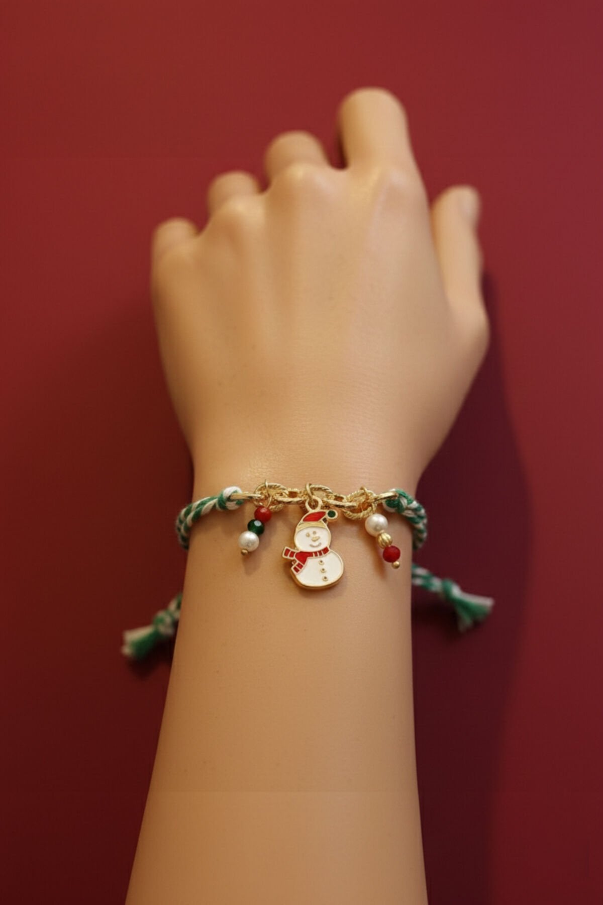 Altın Kaplama Kardan Adam Figürlü Ayarlanabilir Yılbaşı Bilekliği – Özel Tasarım Yılbaşı Hediyesi