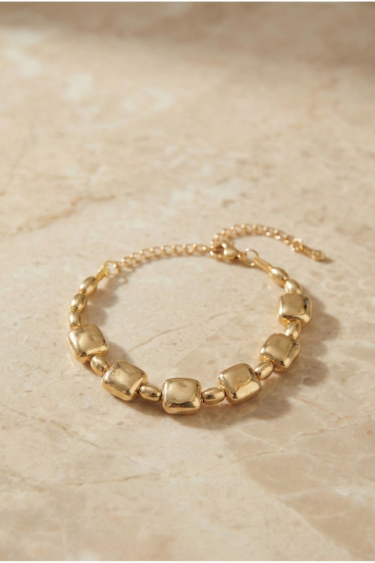 Altın Kaplama Kareli Dorika Ayarlanabilir Bileklik