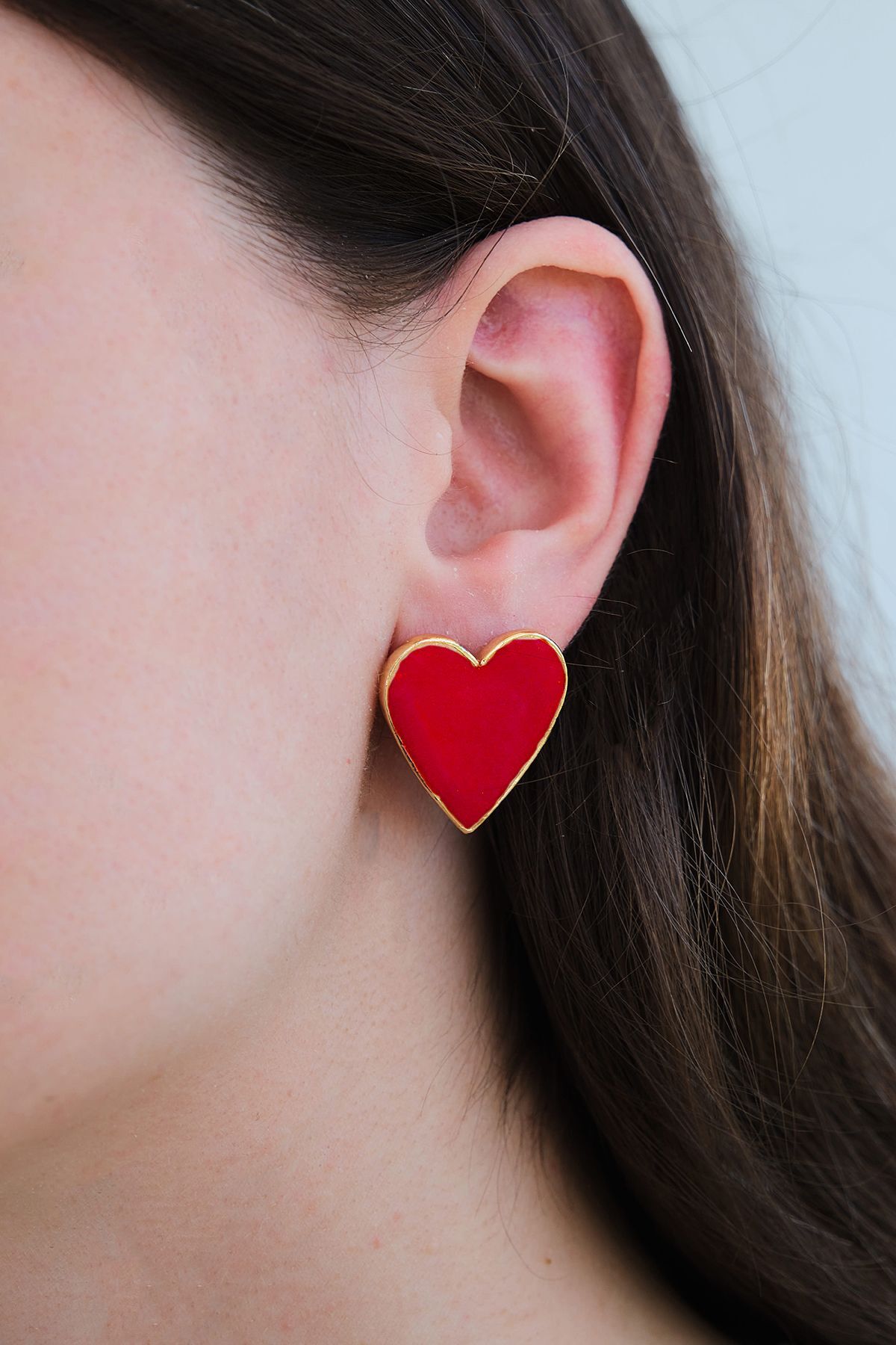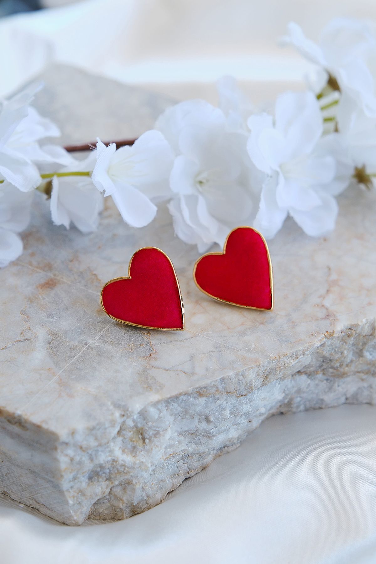 - Zarif altın kaplama ile süslenmiş, her kıyafete şıklık katacak kırmızı mineli kalp küpe.; - Nemli bir bez kullanarak kolayca temizlenebilir; böylece parlaklığını uzun süre korur.; - Kadınların zarafetini tamamlayacak ideal model seçeneği sunar.; - Yerli üretimdir ve Türkiye'de üretilmiştir, yerel sanatçıların yeteneklerini yansıtır.; - Çivi model tasarımıyla modern ve zamansız bir görünüm sağlar.; - Dayanıklı pirinç materyali sayesinde uzun ömürlü kullanım vaat eder.; - Doğal taş detaylarıyla göz alıcı bir estetik sunarken aynı zamanda benzersizliği ön plana çıkarır.