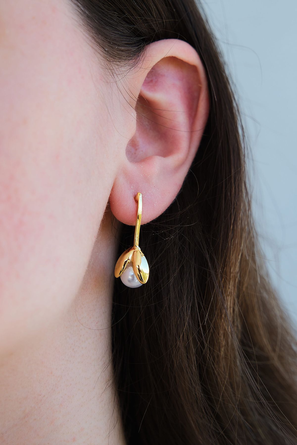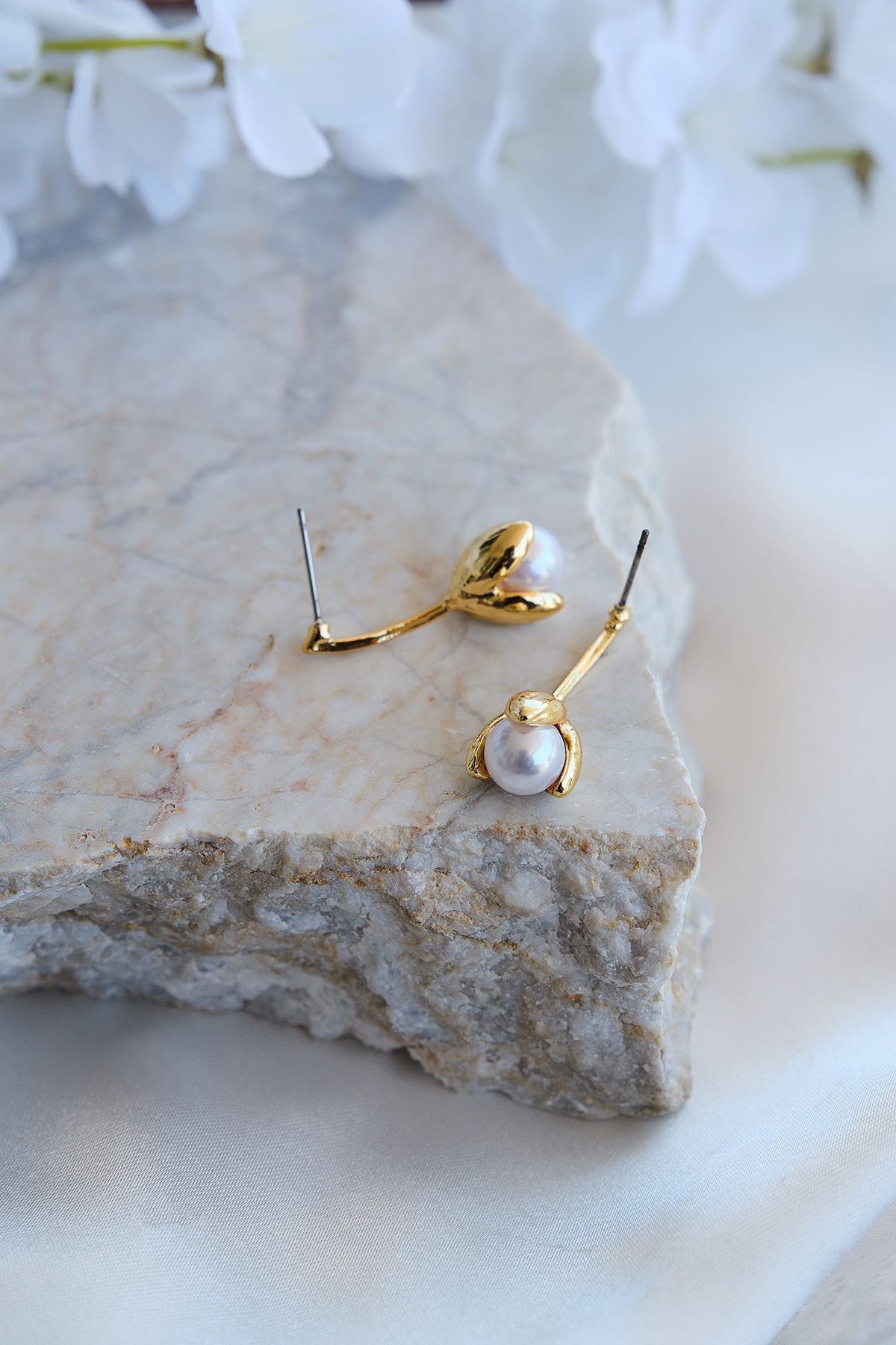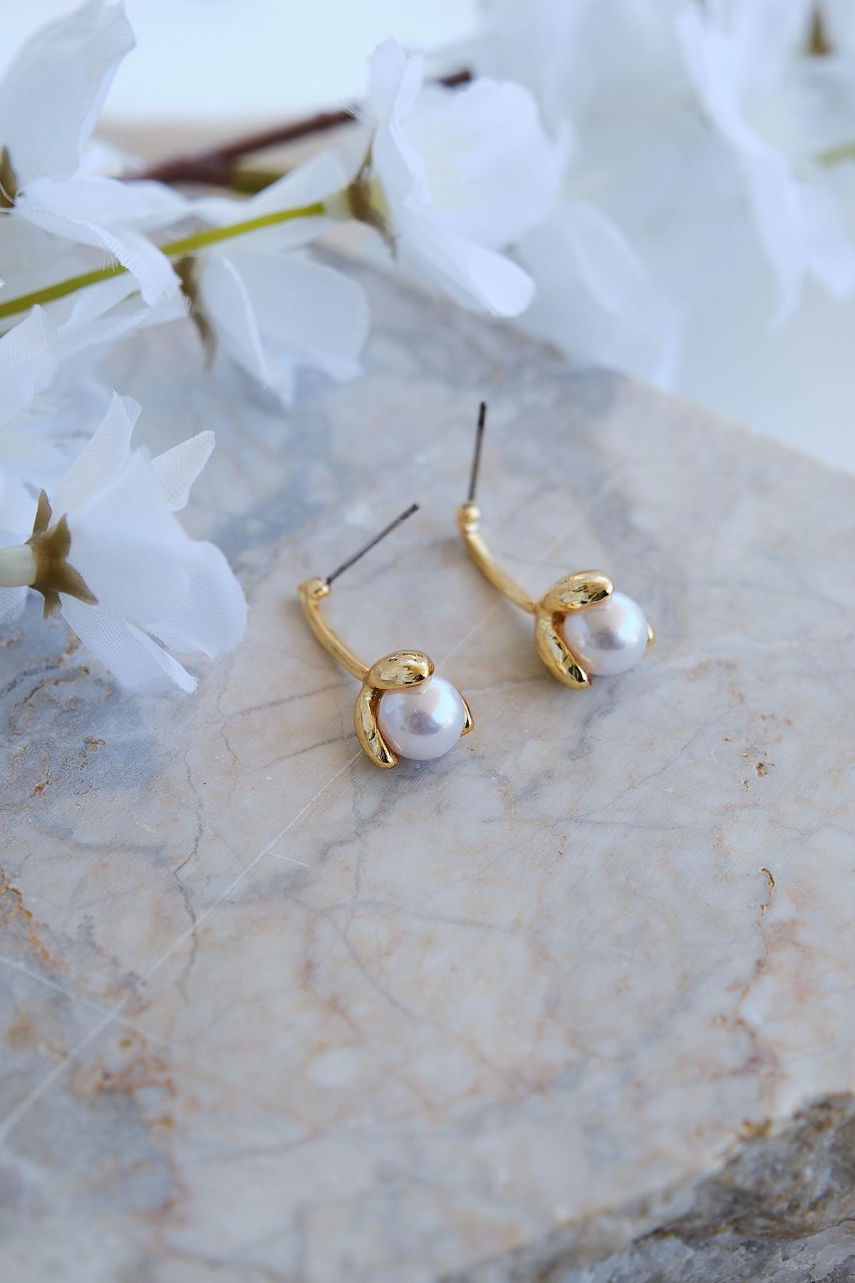 Altın Kaplama Lale Şekilli İncili Küpe