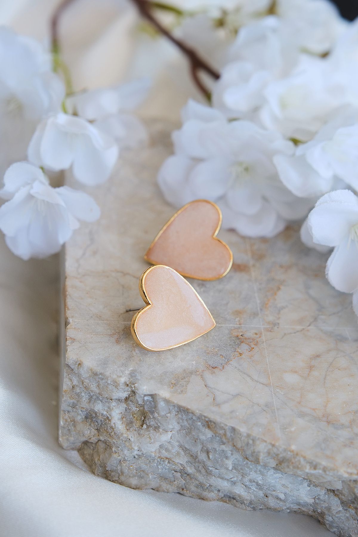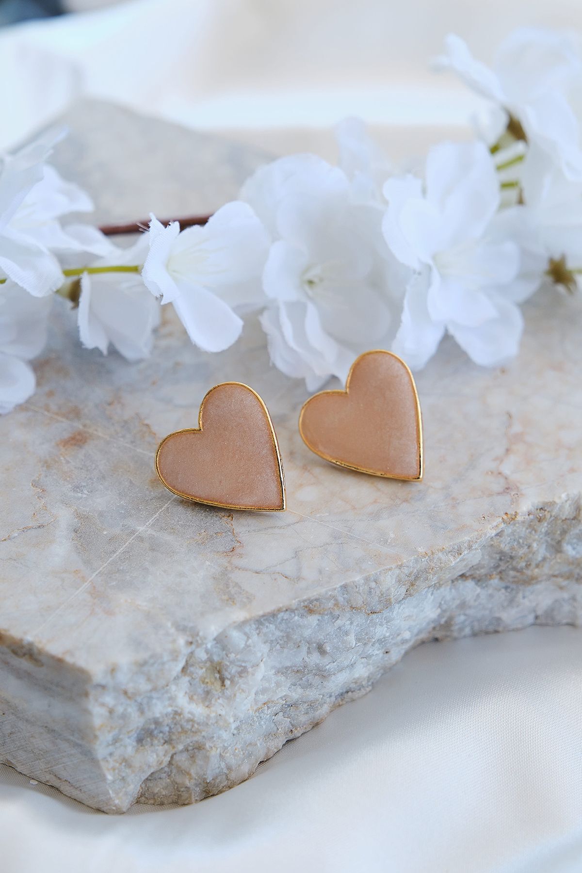 Altın Kaplama Mineli Kalp Küpe