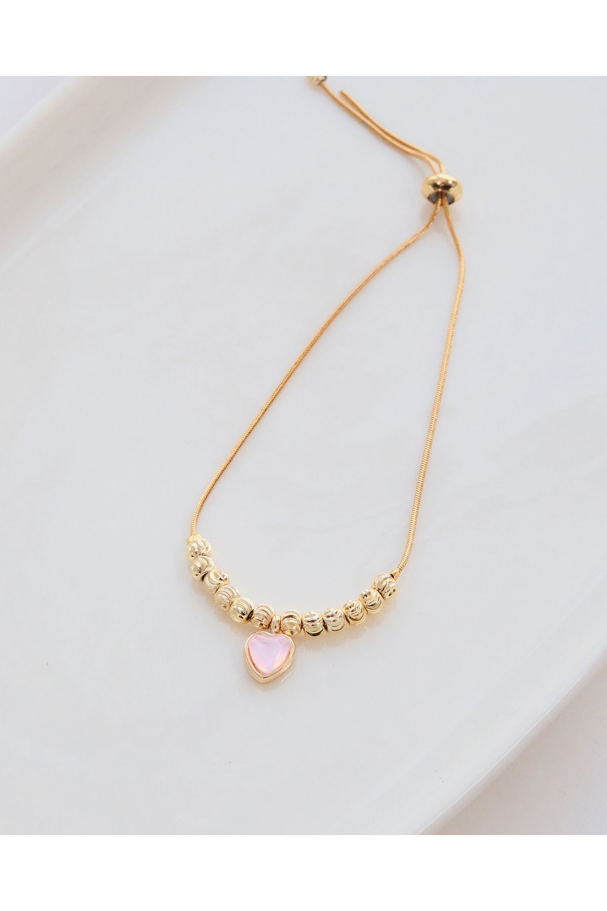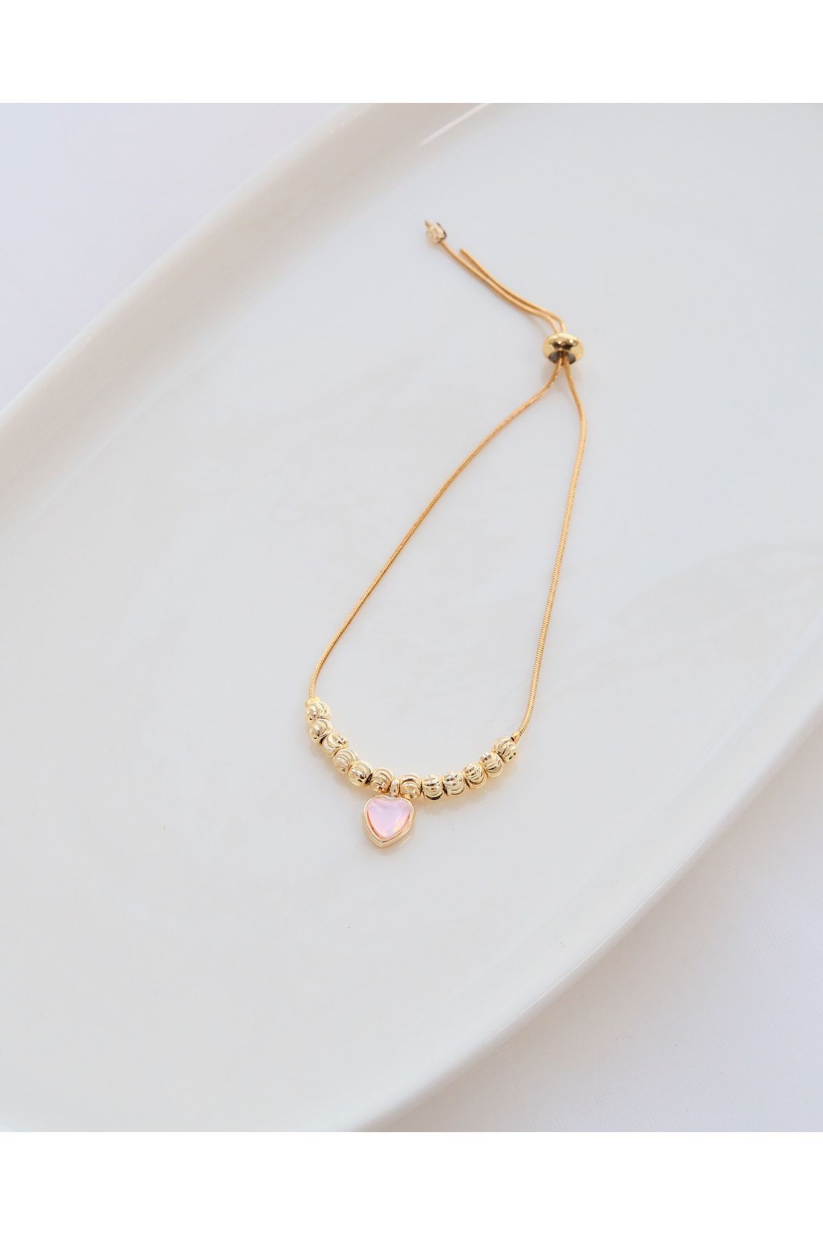 Altın Kaplama Pembe Kalp Dorika Sıkıştırılabilir Çelik Bileklik