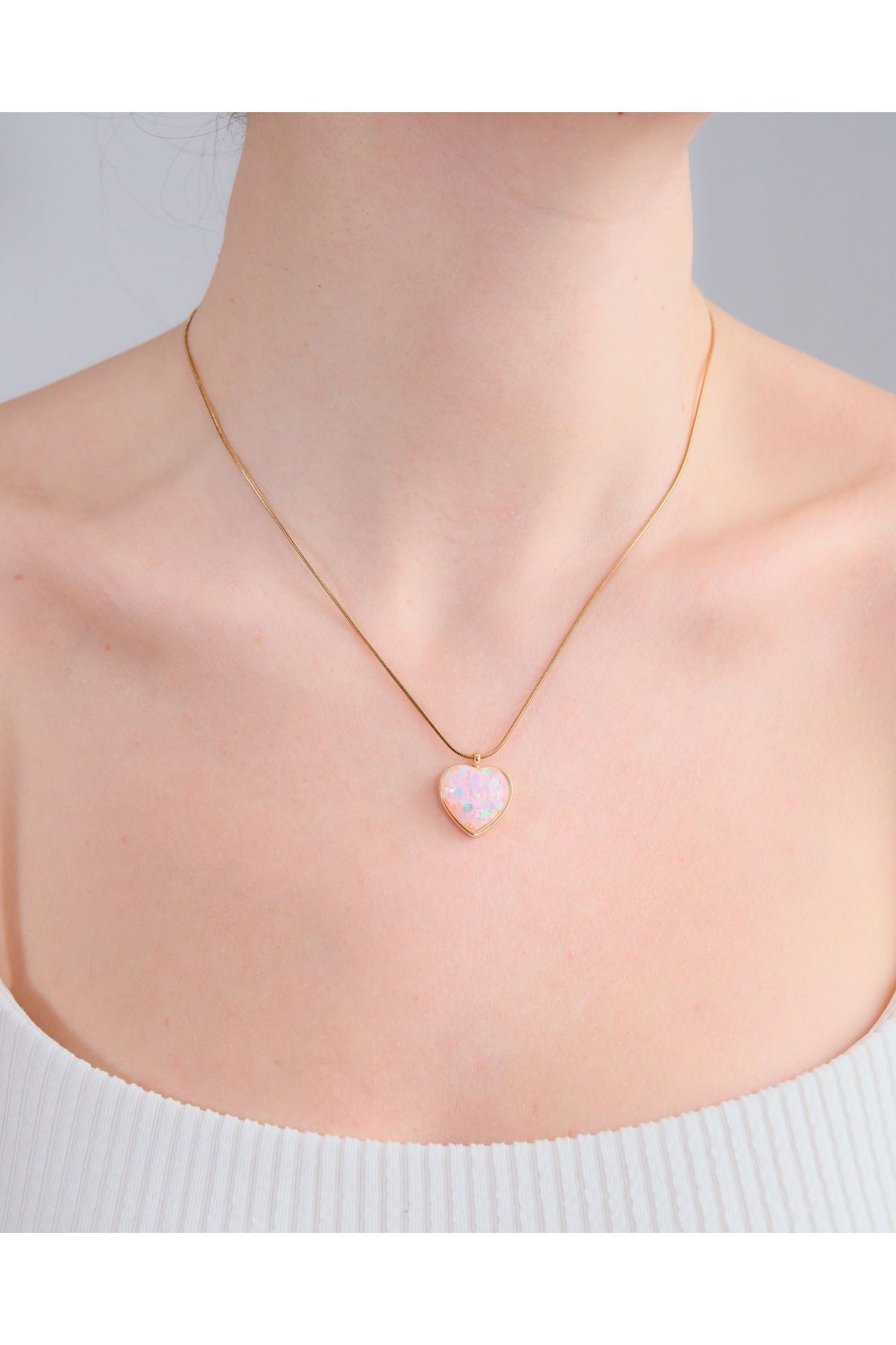 Altın Kaplama Pembe Yıldız Kalp Detaylı Çelik kolye