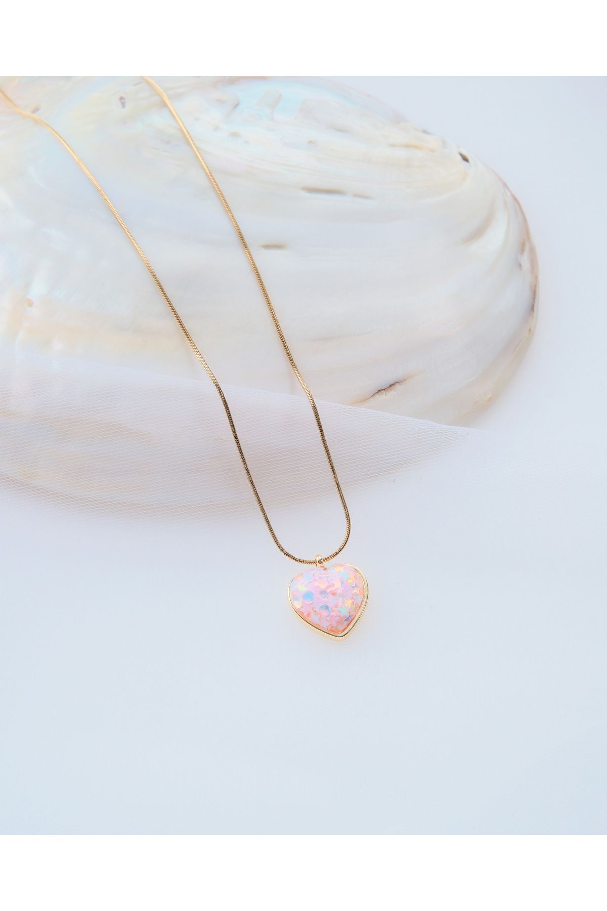 Altın Kaplama Pembe Yıldız Kalp Detaylı Çelik Kolye - Romantik ve Zarif