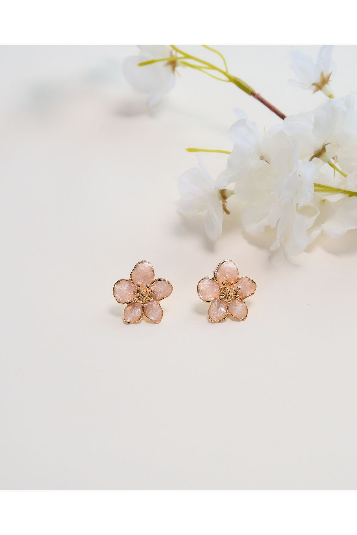 Altın Kaplama Sedef Sakura Çiçeği Küpe