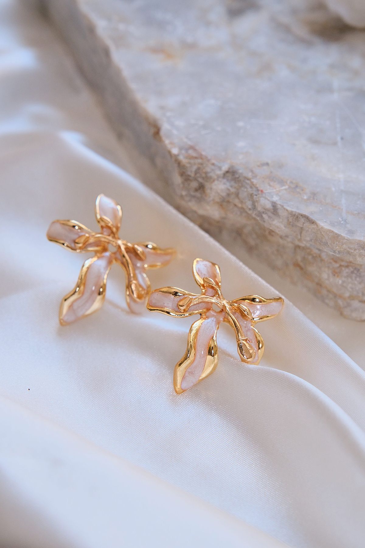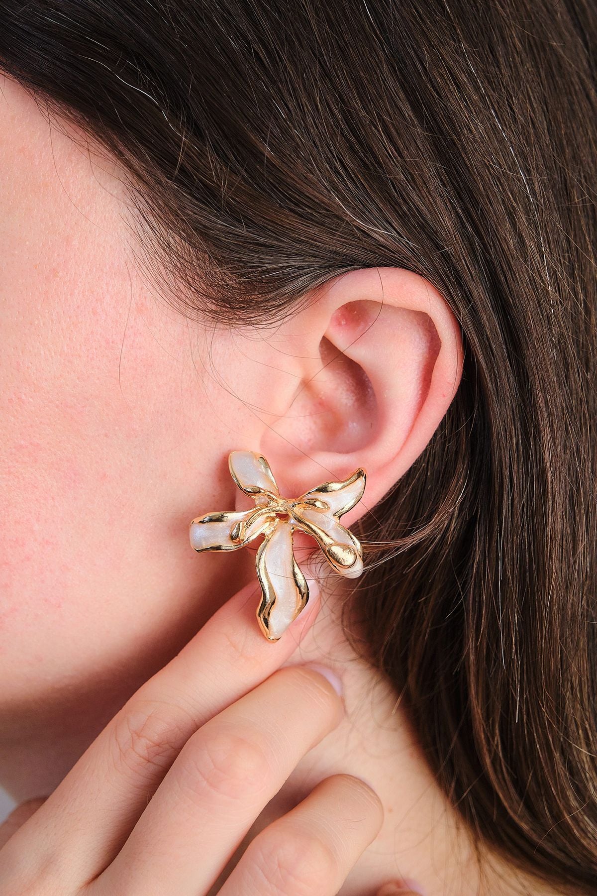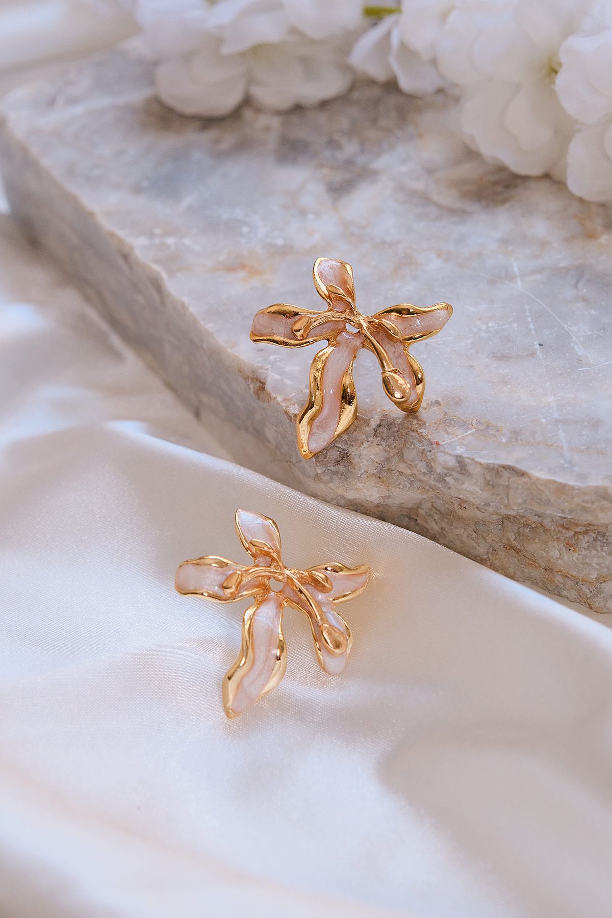 Altın Kaplama Sedefli Büyük Yaprak Küpe