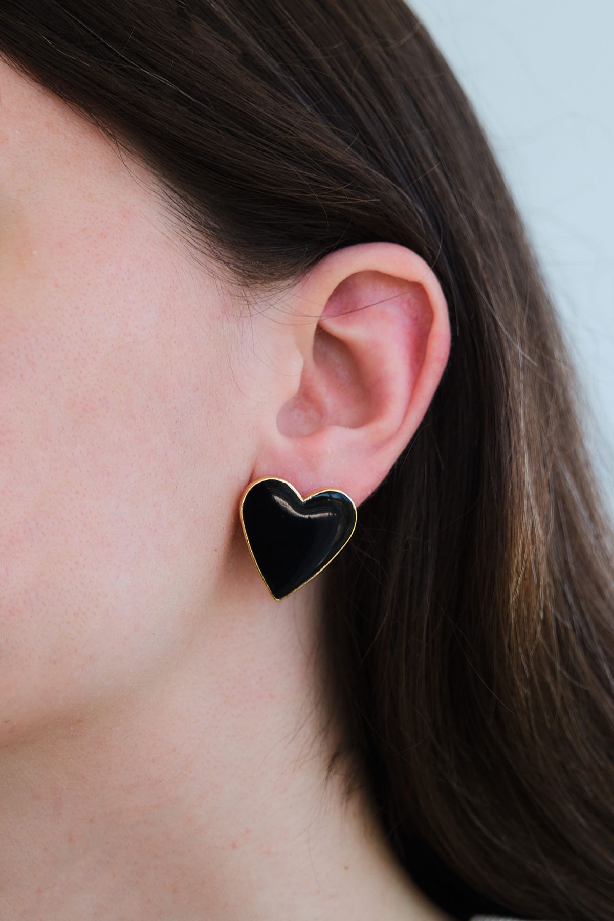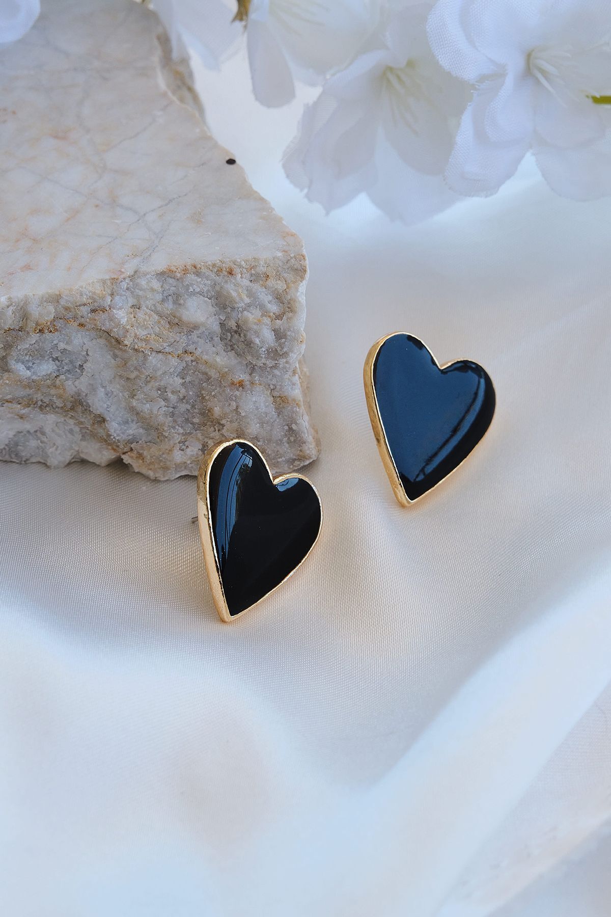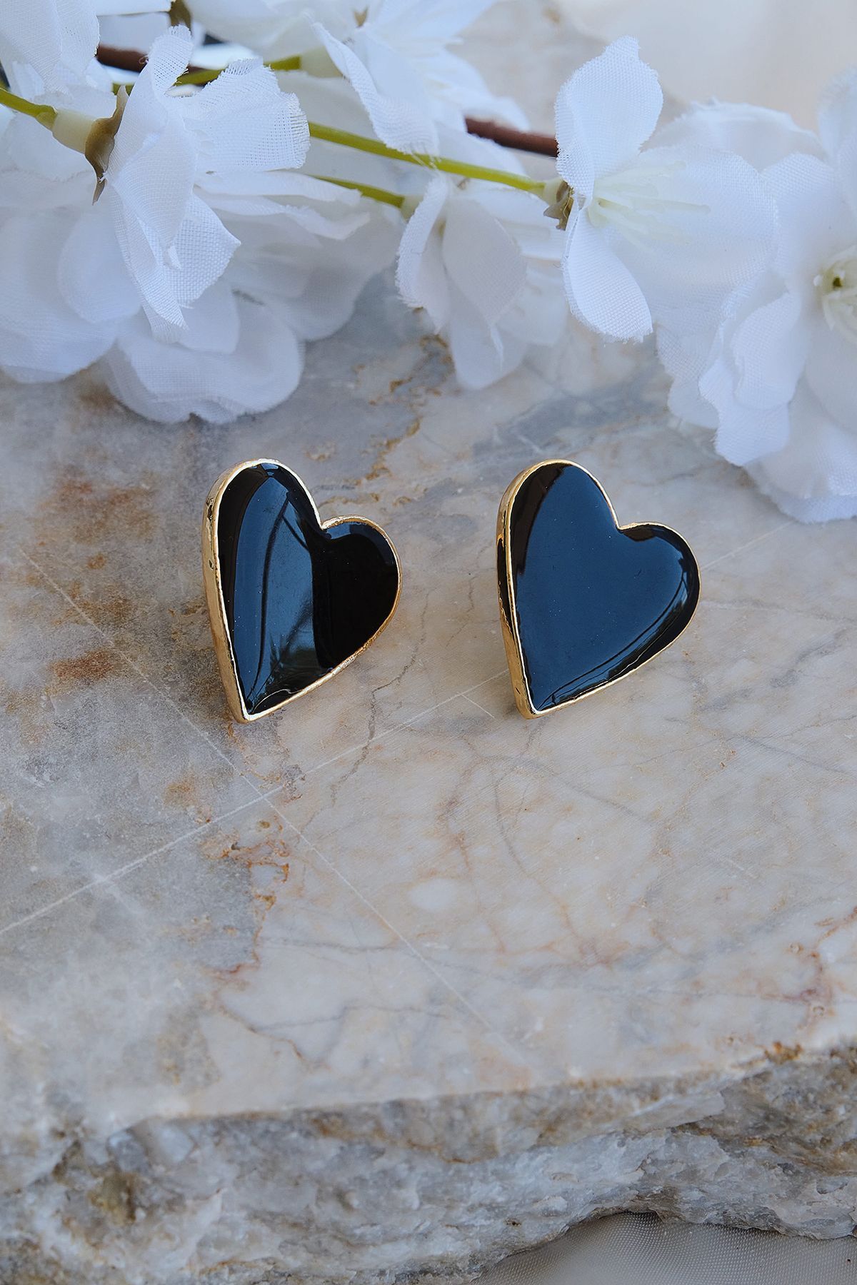 Altın Kaplama Siyah Mineli Kalp Küpe