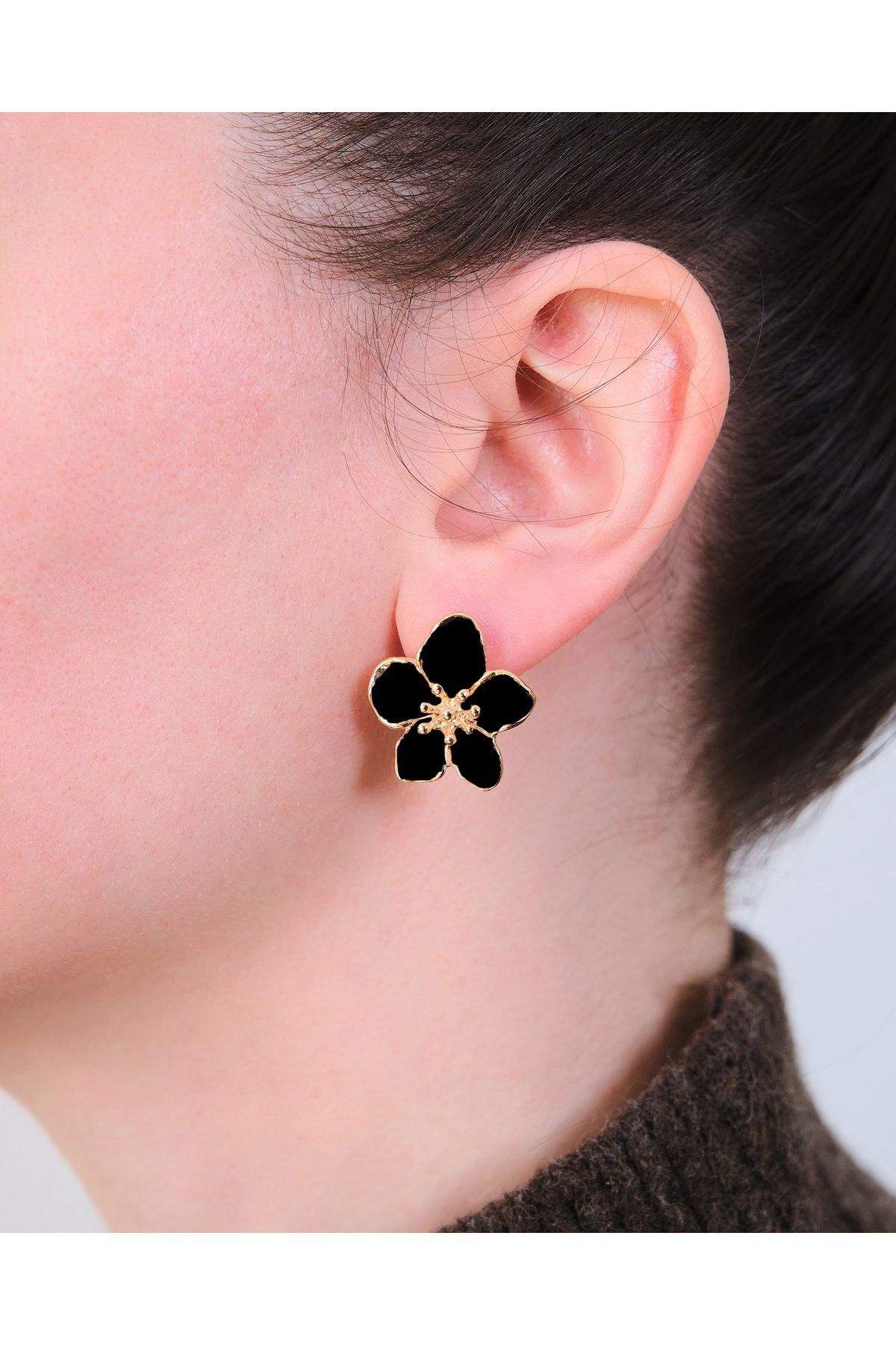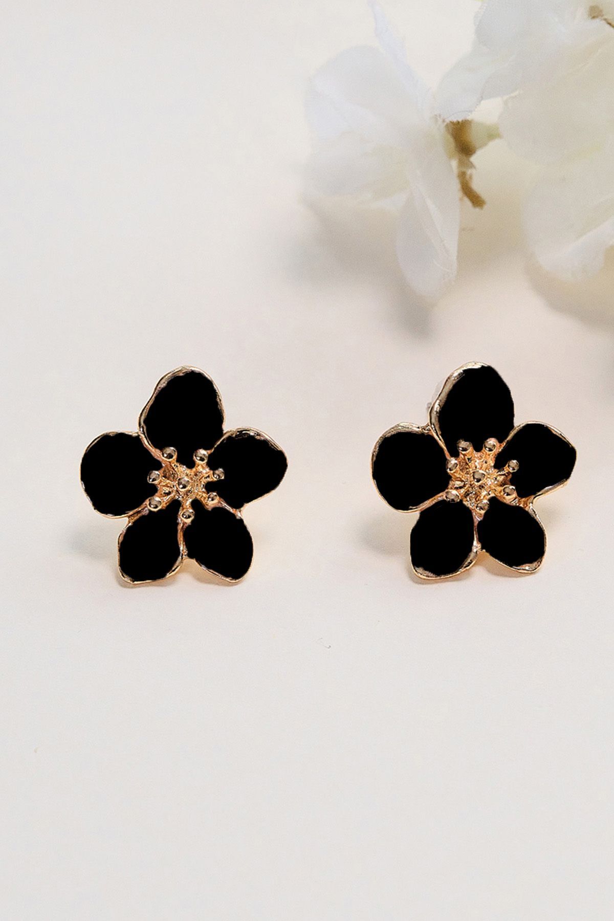 Altın Kaplama Siyah Sakura Çiçeği Küpe