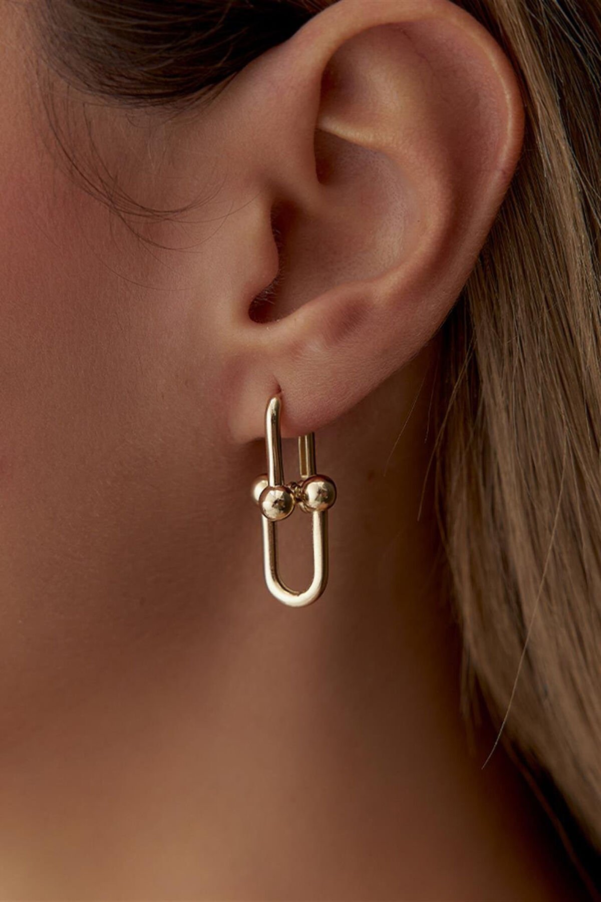 Bu zarif ve çok yönlü küpeler, benzersiz bir U şeklinde tasarlanmıştır ve her birinin uçlarında birer top bulunmaktadır; İki adet birbirine birleştirilerek çivi küpe şeklinde kulağa takılabilirler; Gold veya gümüş seçenekleriyle sunulan bu küpeler, şıklık ve zarafeti bir araya getirirken, kullanıcılarına farklı tarzlar deneme olanağı sunar; Ayrıca, her biri dikkatlice tasarlanmış olan U şekilleri, çıkarılıp ayrıca kullanılabilme özelliğine sahiptir; Bu özelliği sayesinde kullanıcılar, farklı bir görünüm elde etmek veya başka takılarla kombin yapmak için küpleri kişiselleştirebilirler; Gold veya gümüş seçeneklerinden birini tercih edebileceğiniz bu küpeler, herhangi bir stil veya kıyafetle mükemmel bir uyum sağlar; Gündelik giyimden özel günlerdeki şıklığa kadar geniş bir kullanım yelpazesine sahiptirler; Zarif tasarımı ve çok yönlülüğüyle bu küpeler, her kadının takı koleksiyonunda bulunması gereken özel parçalardan biridir;