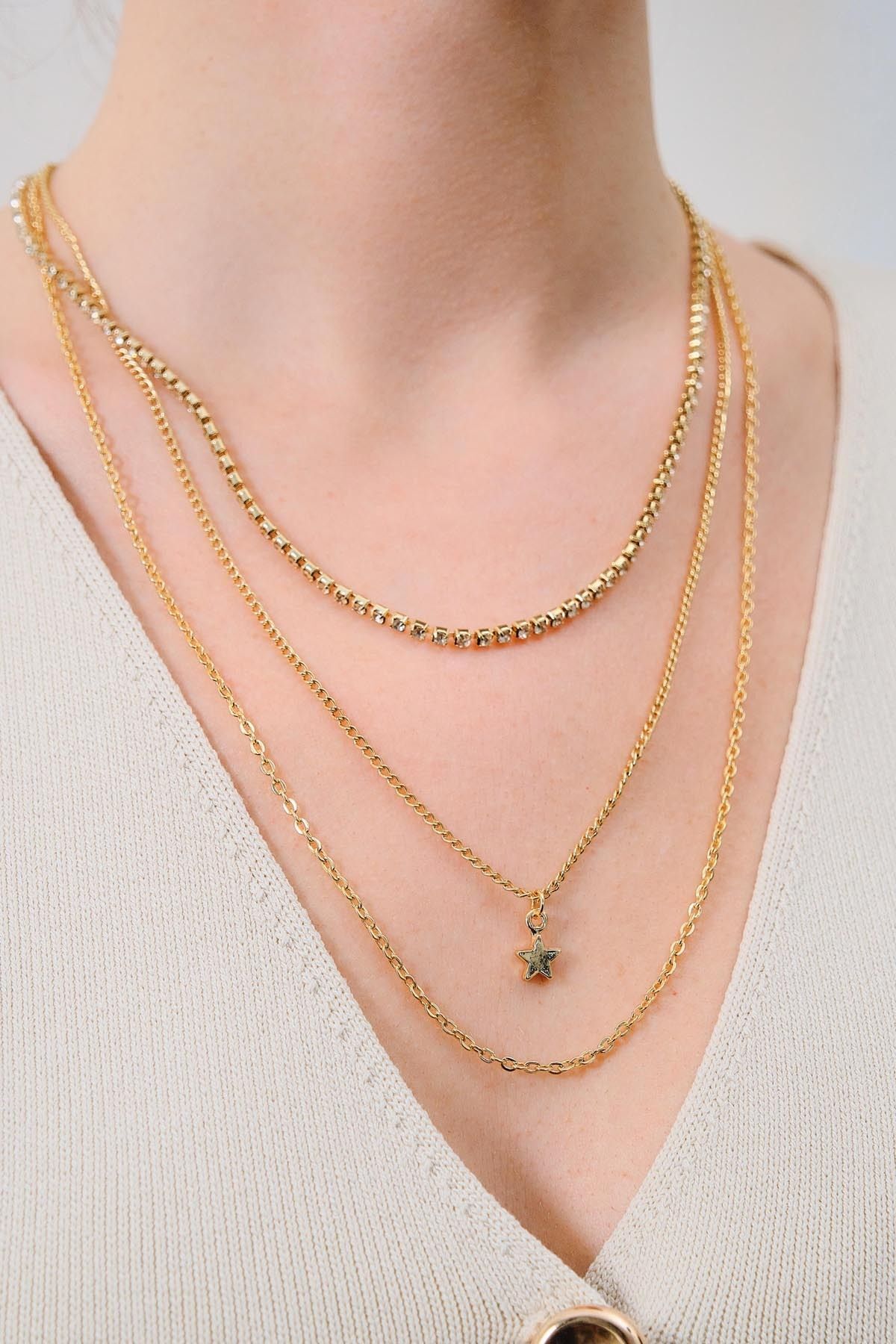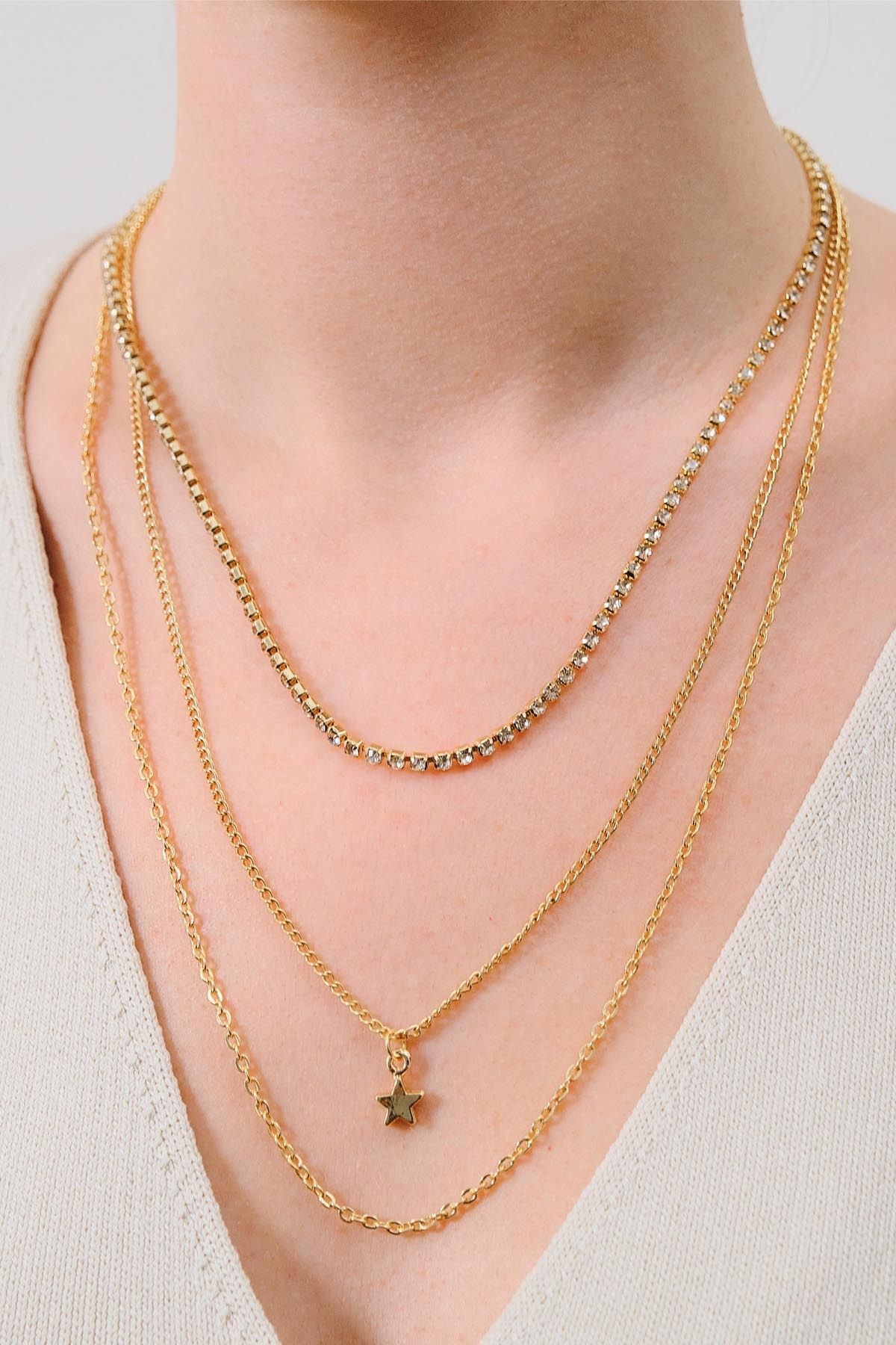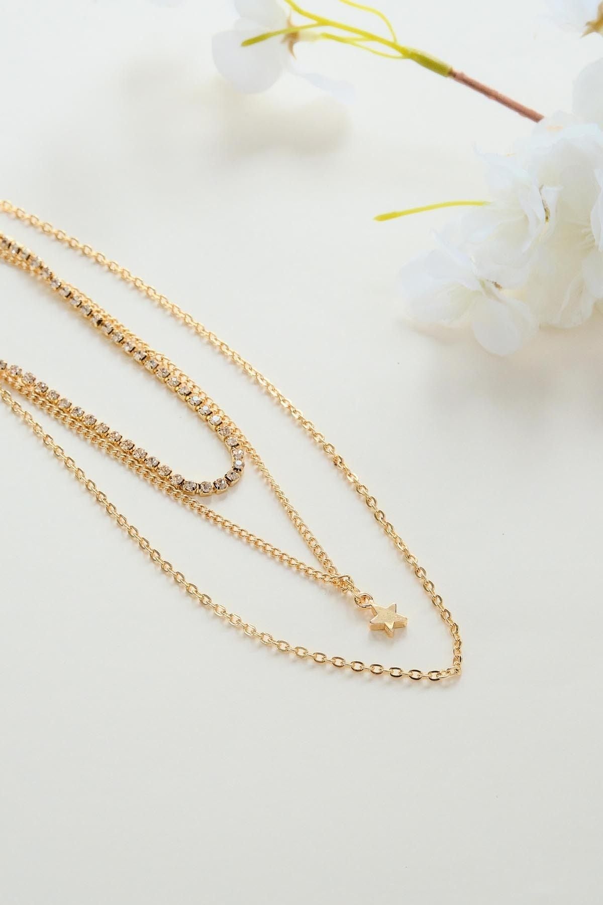 Altın Kaplama Yıldız ve Su Yolu Detaylı 3'lü Kolye Seti