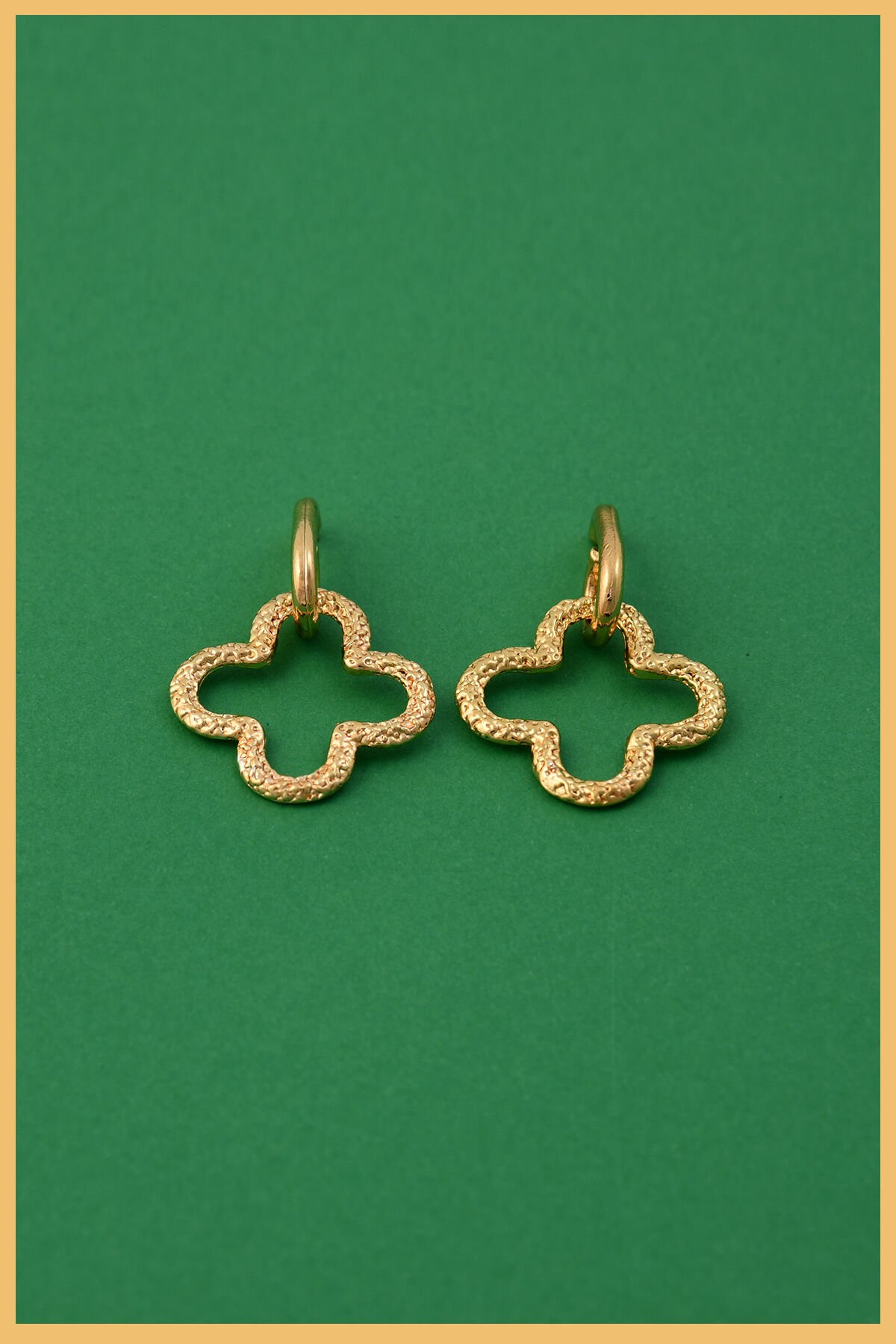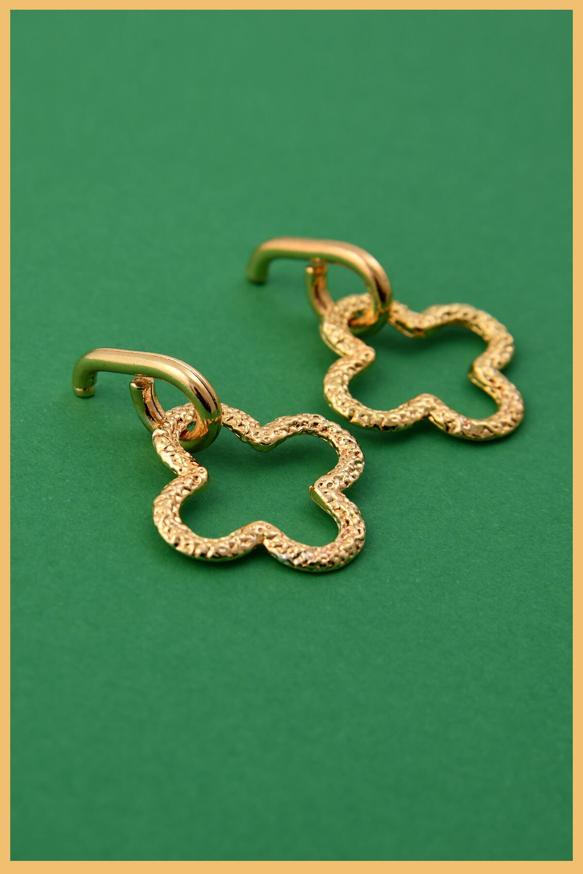 Aurrari 2’li Altın Kaplama Yonca Şeklinde Sallantı Küpe, altın kaplama 2 adet Yonca şeklinde küpe modelinden oluşur.