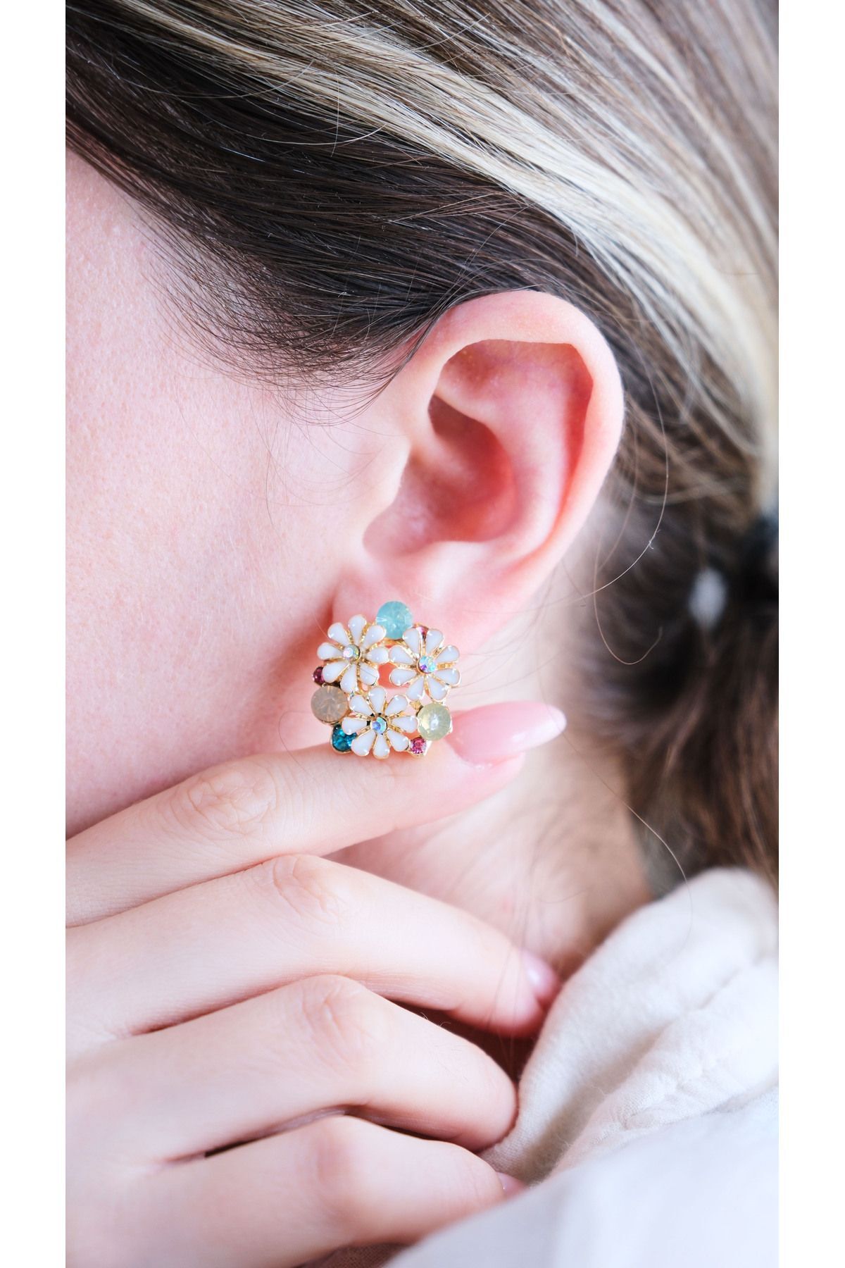 Beyaz Mineli Papatya Zirkon Taş Detaylı Küpe