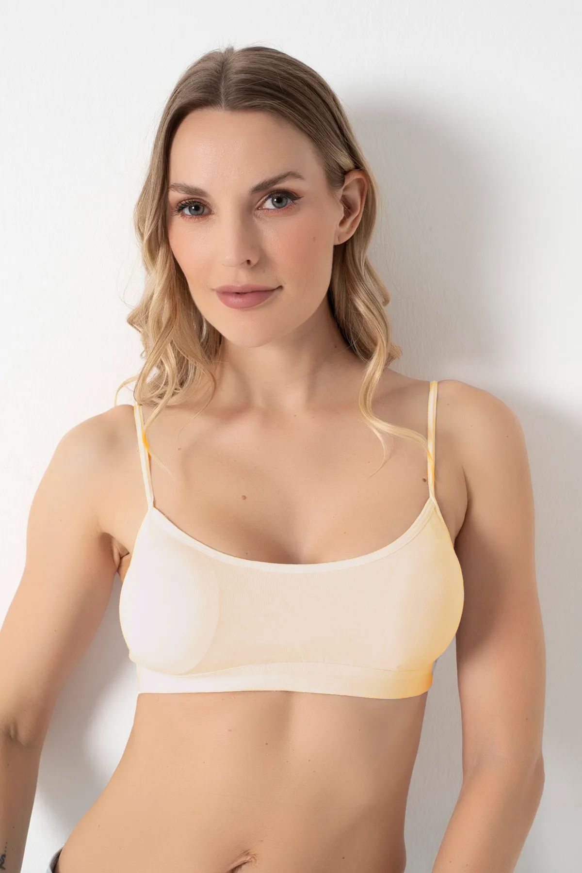 Beyaz Pedli Penye İp Askılı Yarım Atlet