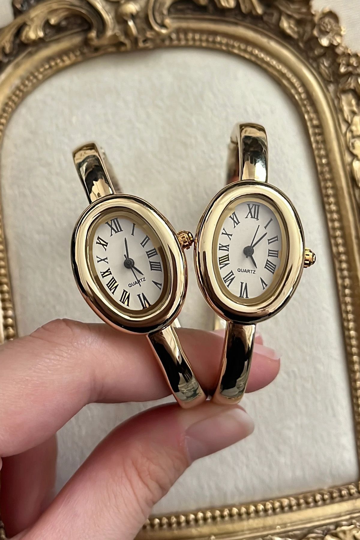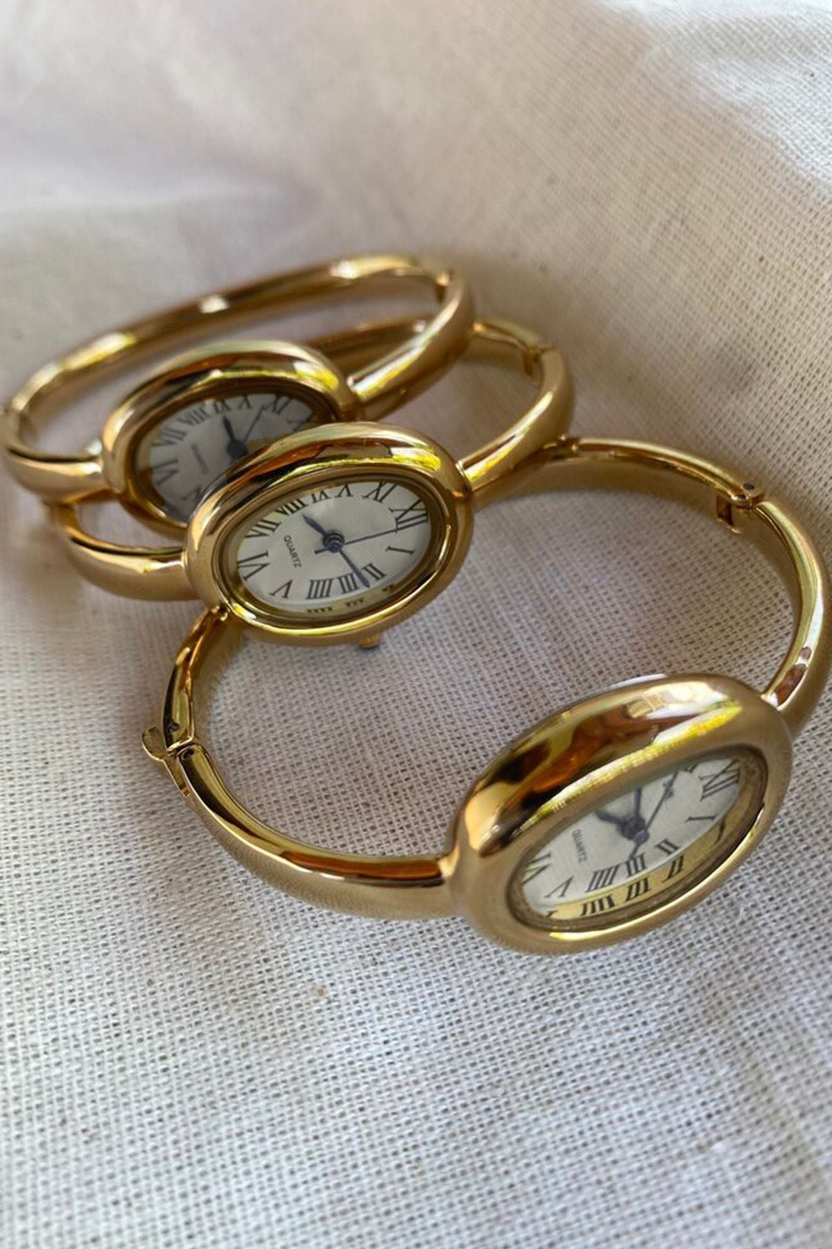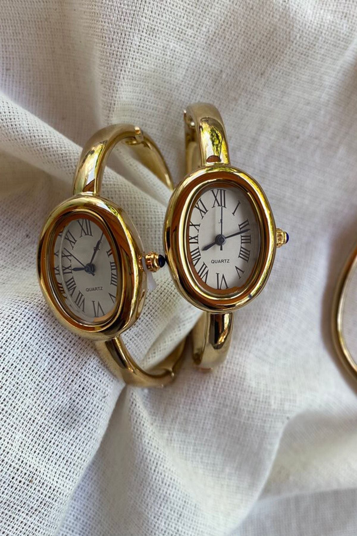 Car Gold Baignoire Kelepçe Kadın Kol Saati - Altın Sarısı Oval Kasa Lüks Tasarım Saat