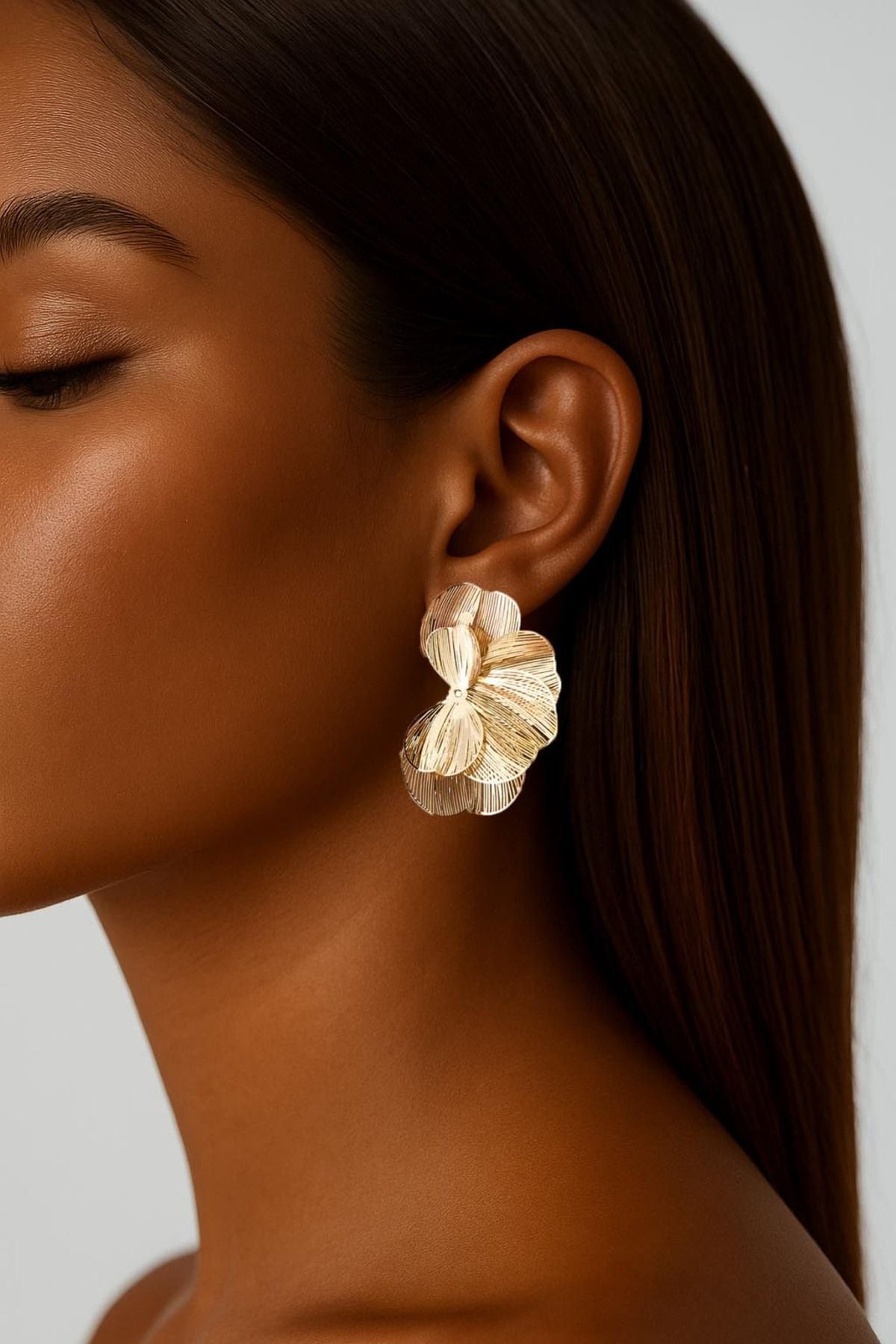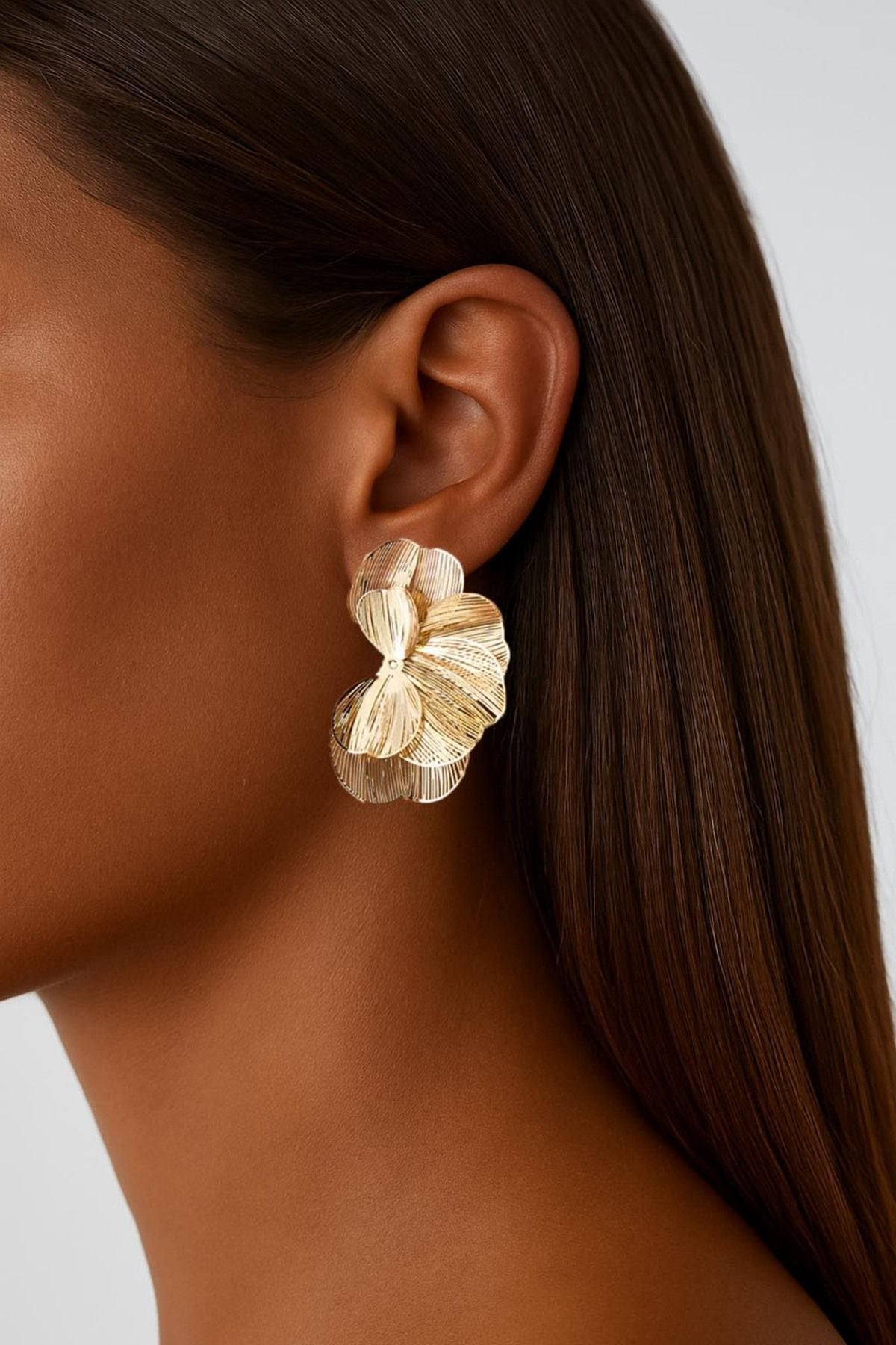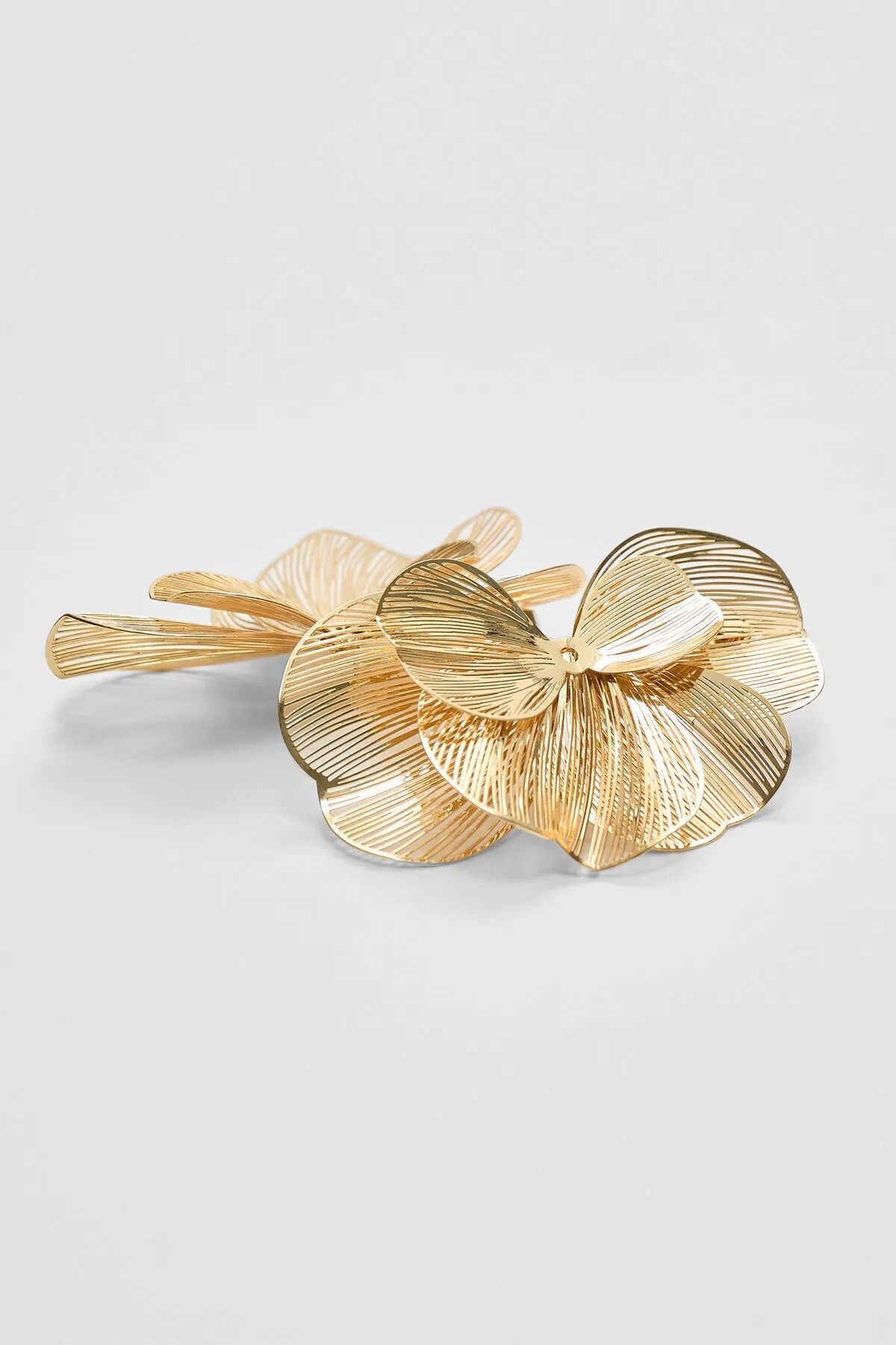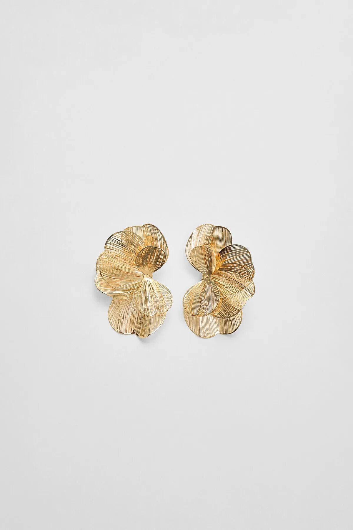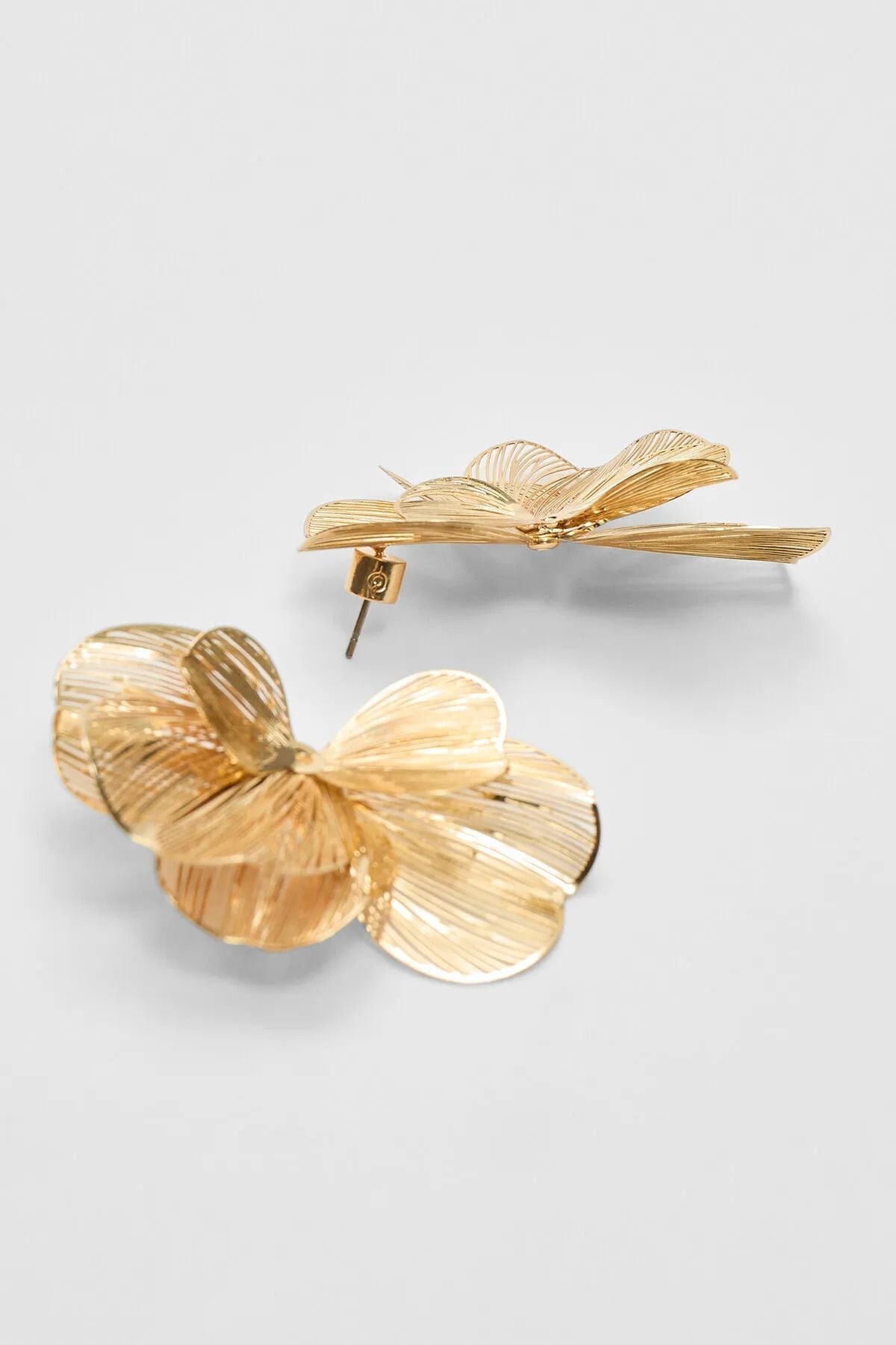 Çiçek Yapraklı Ve Dokulu Çelik Küpe Altın Kaplama