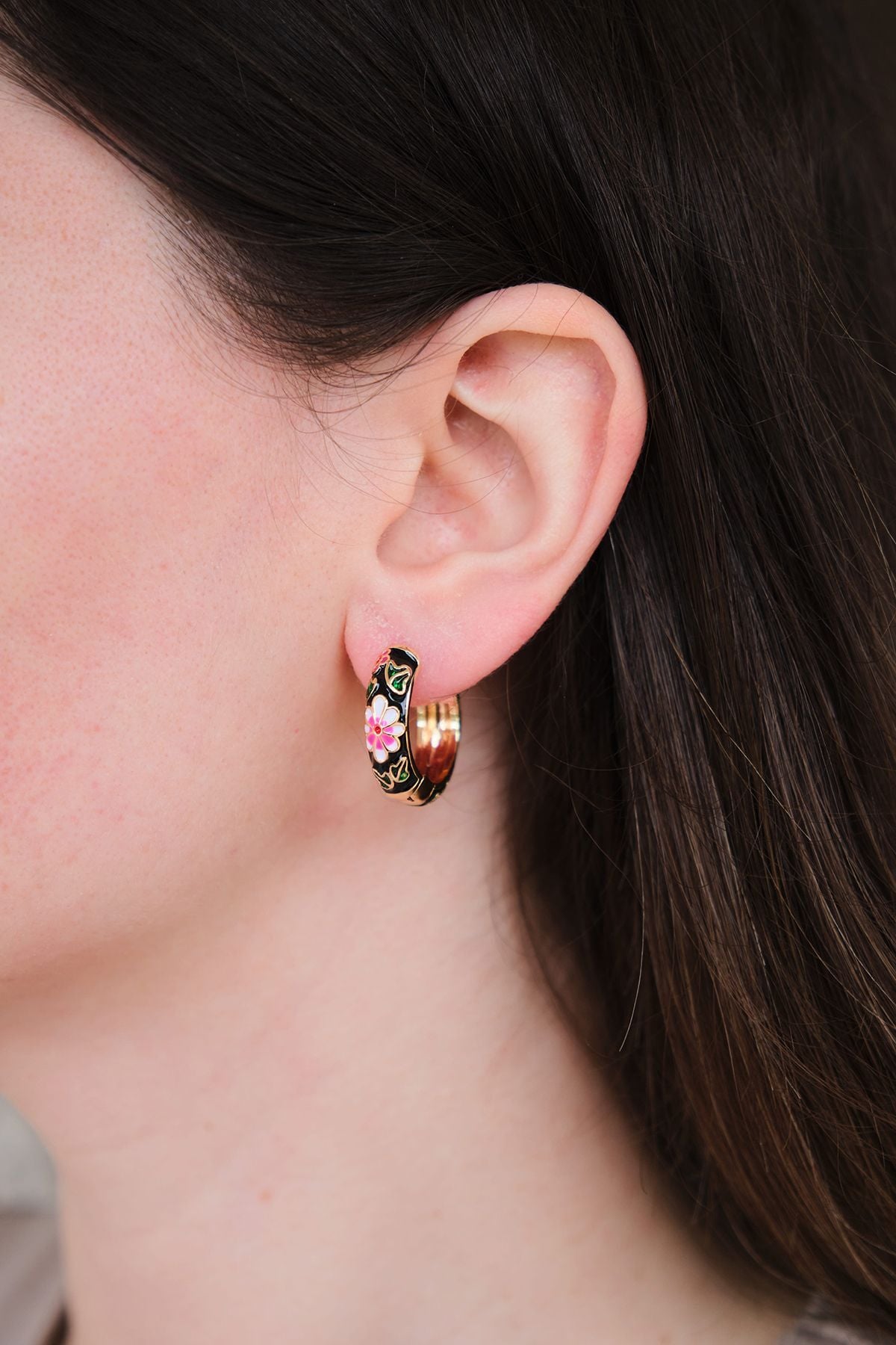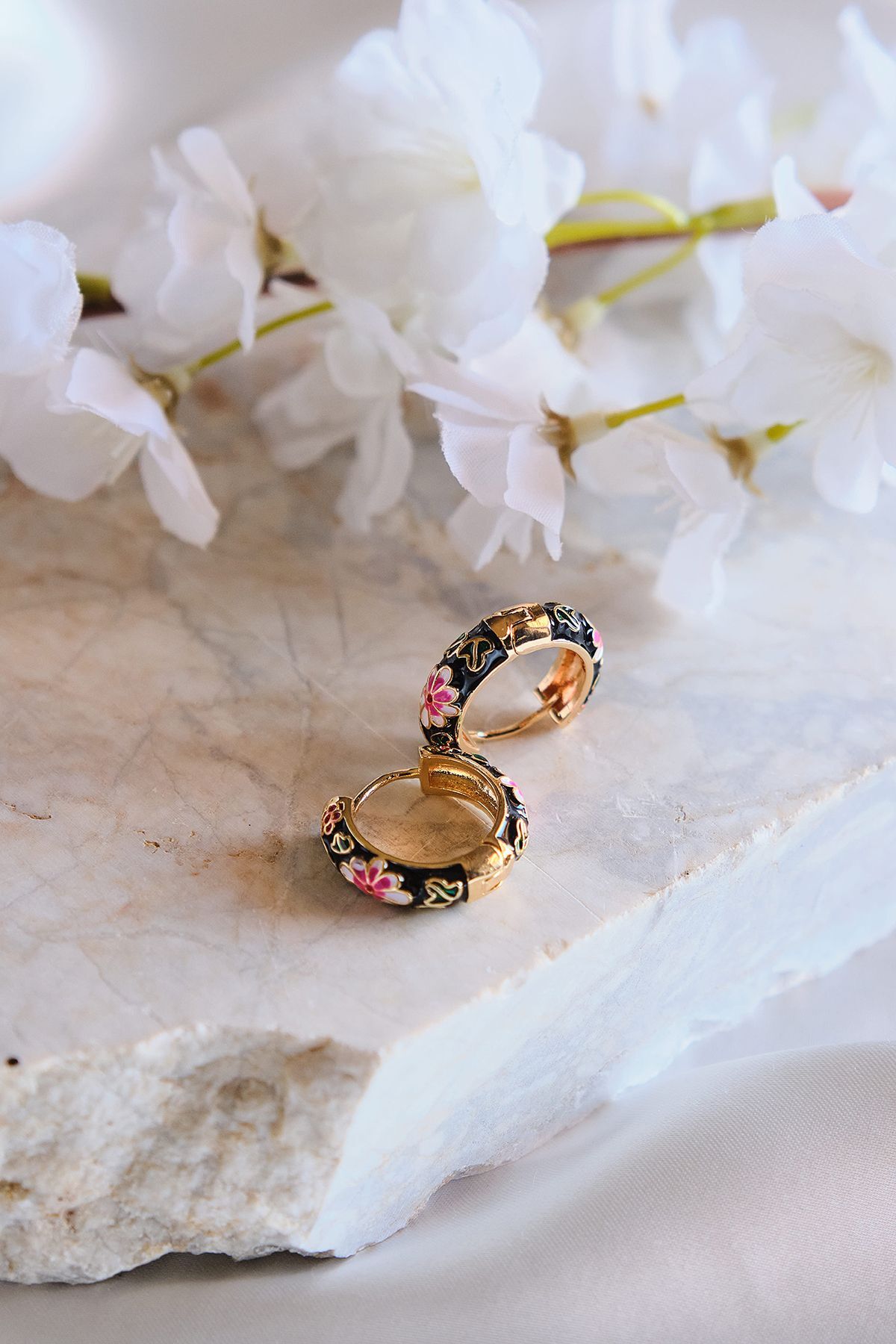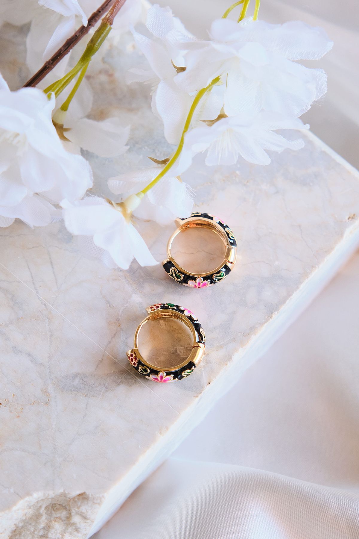 Daisy Mavi Siyah Pembe Mineli Halka Çelik Küpe