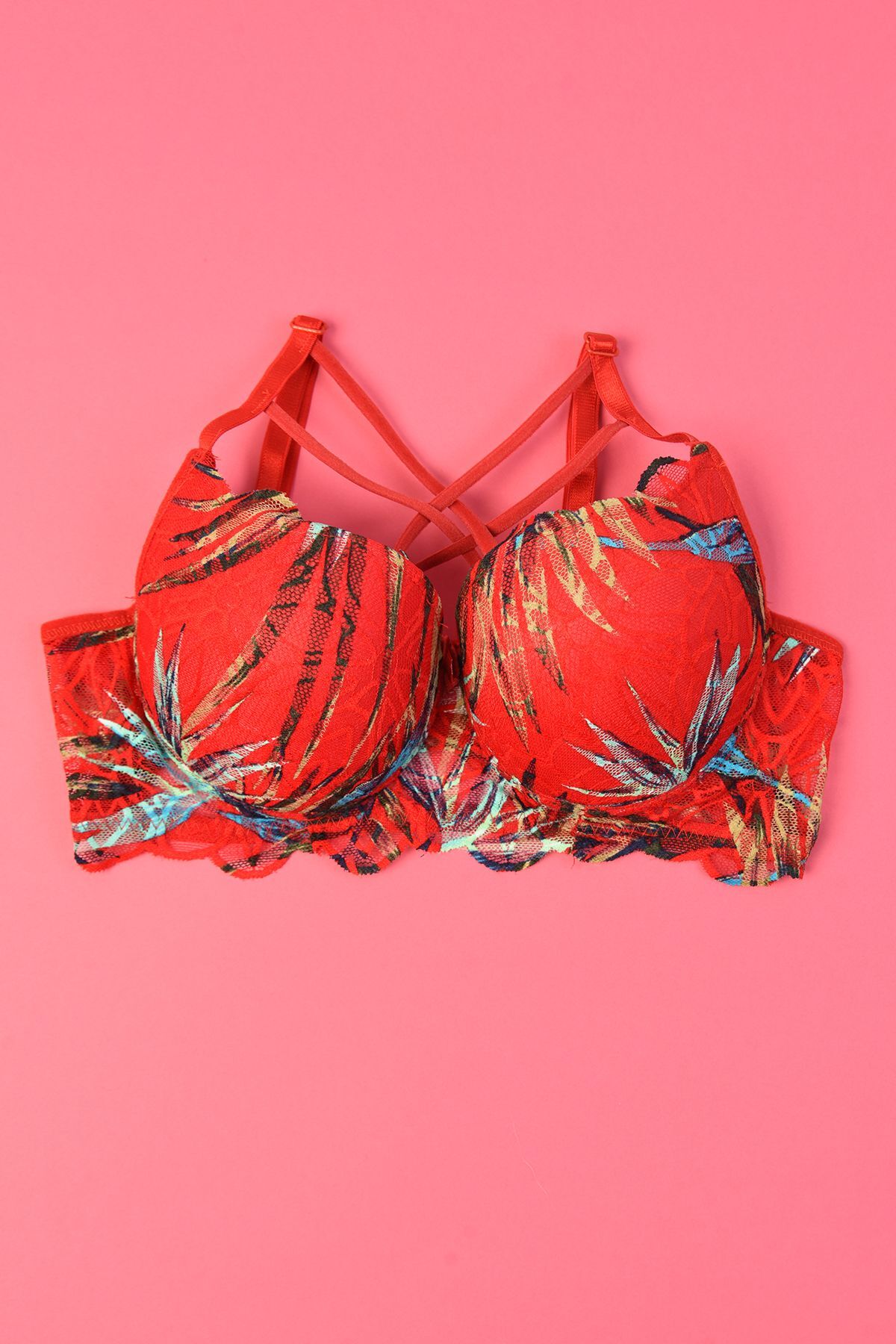 Aurrari Dantelli Çapraz Askılı Destekli Sütyen - Dolgulu Push-Up Etkili Ayarlanabilir Lastikli Bralet Sütyen
