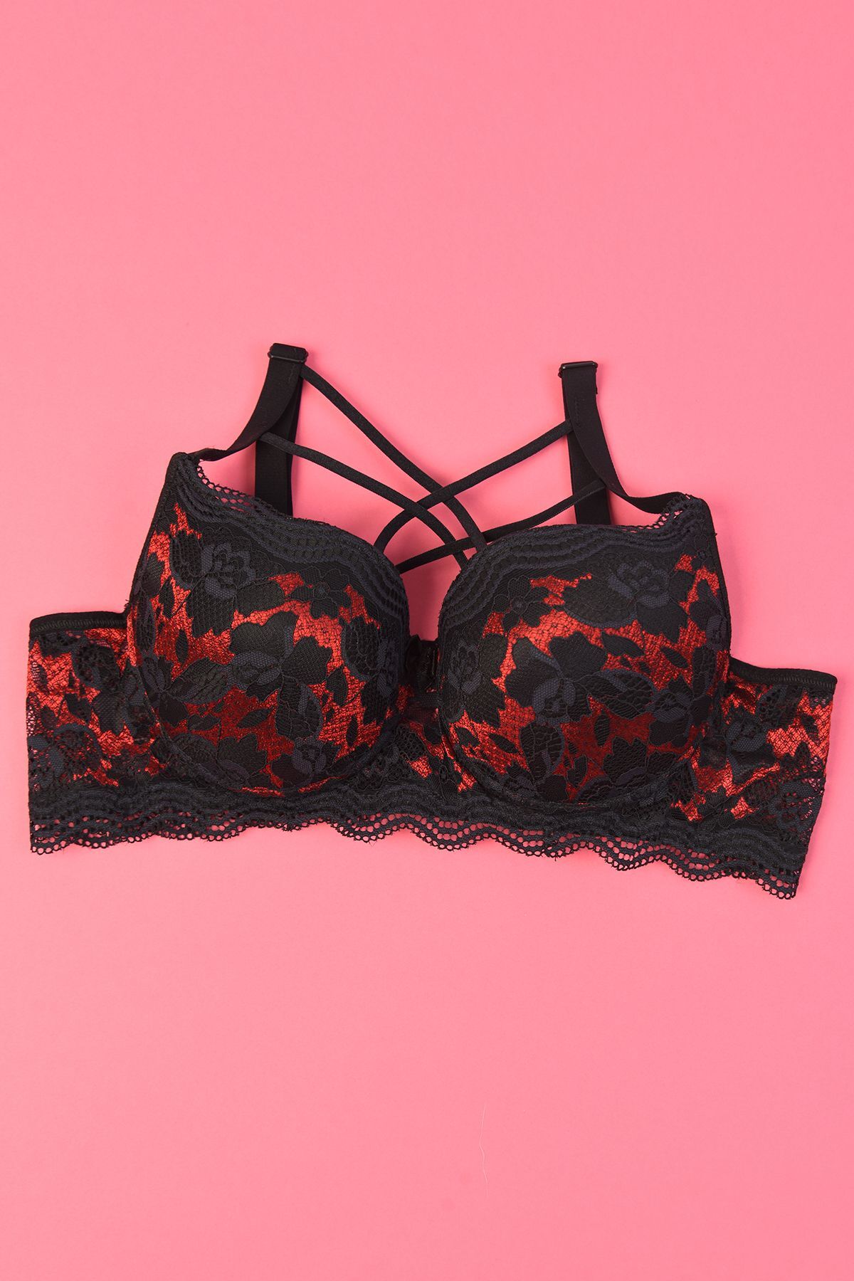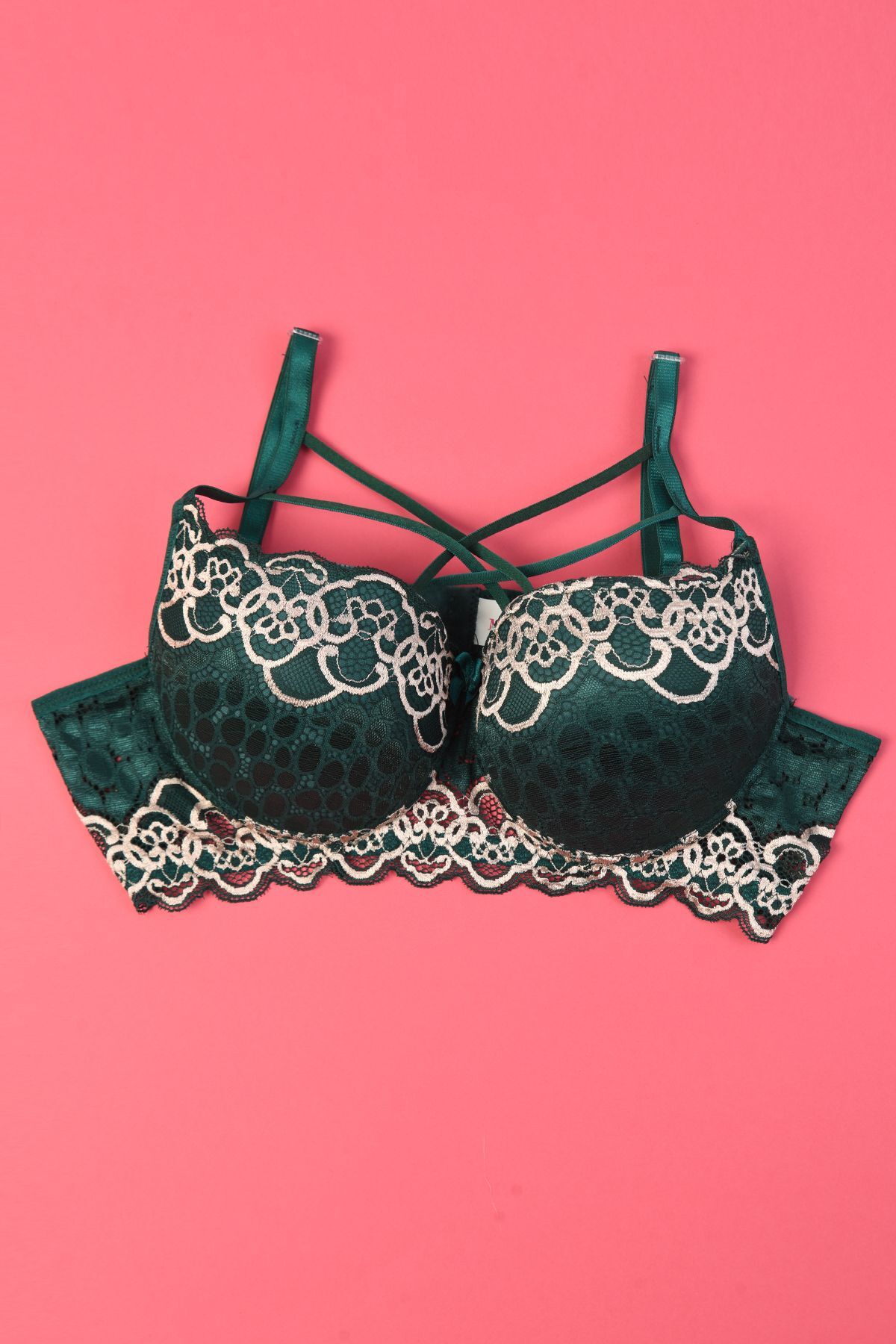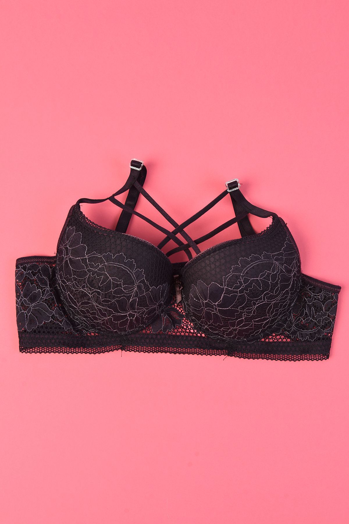Aurrari Dantelli Çapraz Askılı Destekli Sütyen - Dolgulu Push-Up Etkili Ayarlanabilir Lastikli Bralet Sütyen