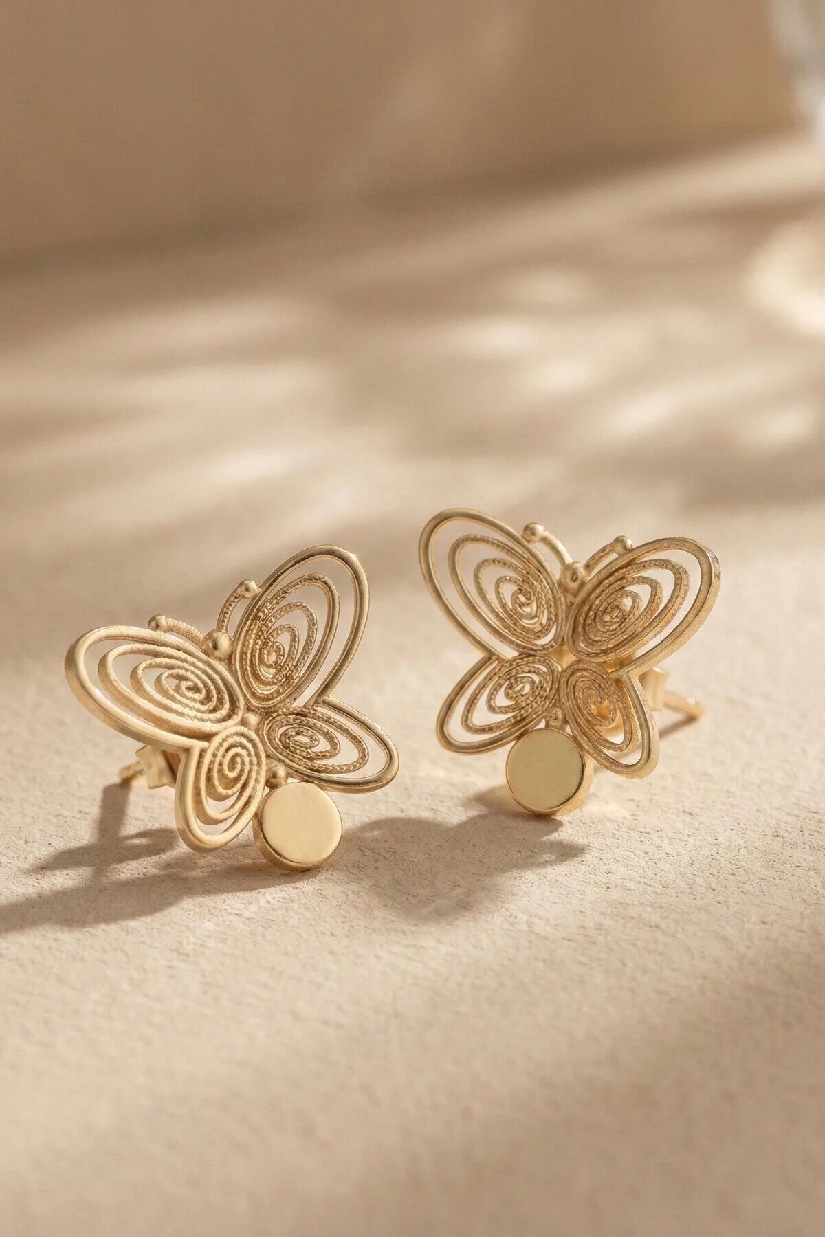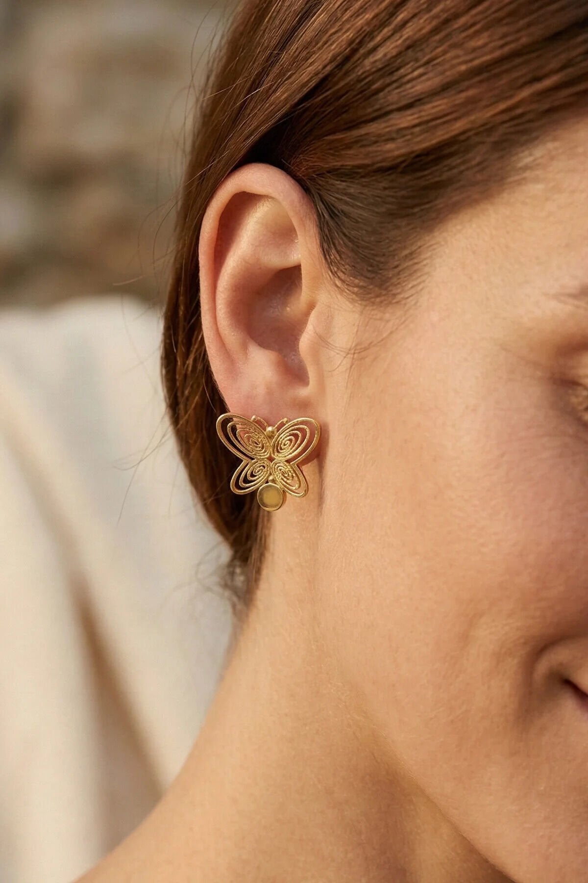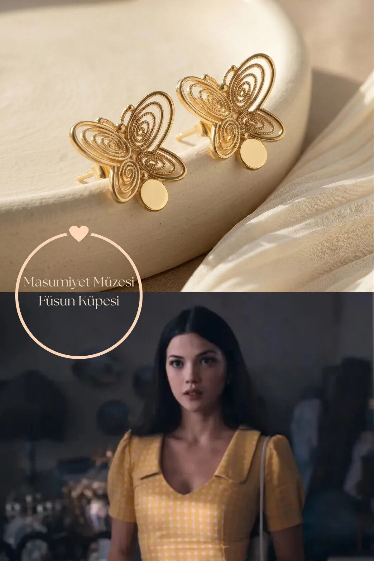 Füsün Masumiyet Müzesi Kelebek Küpe Pullu Altın Kaplama