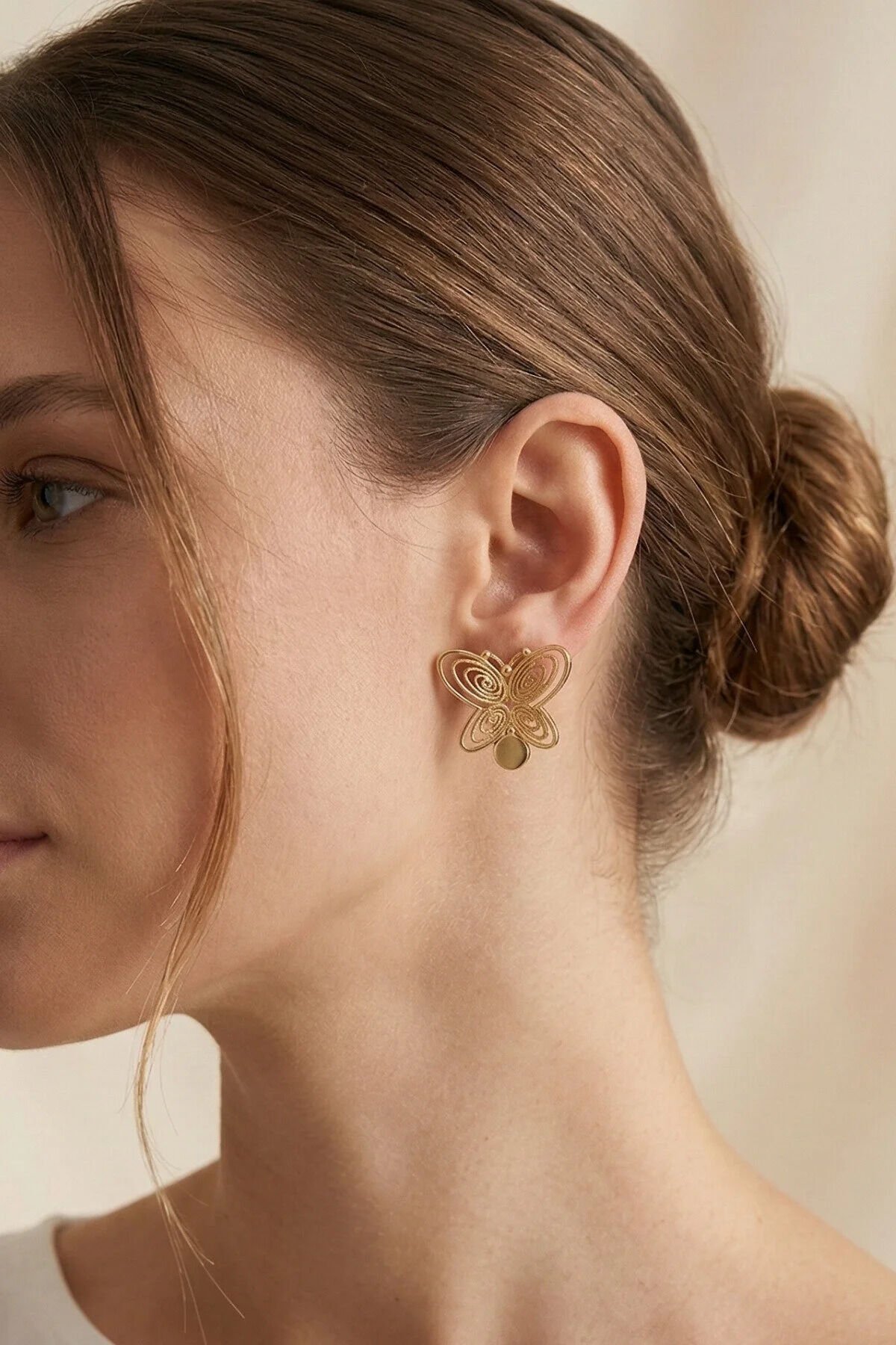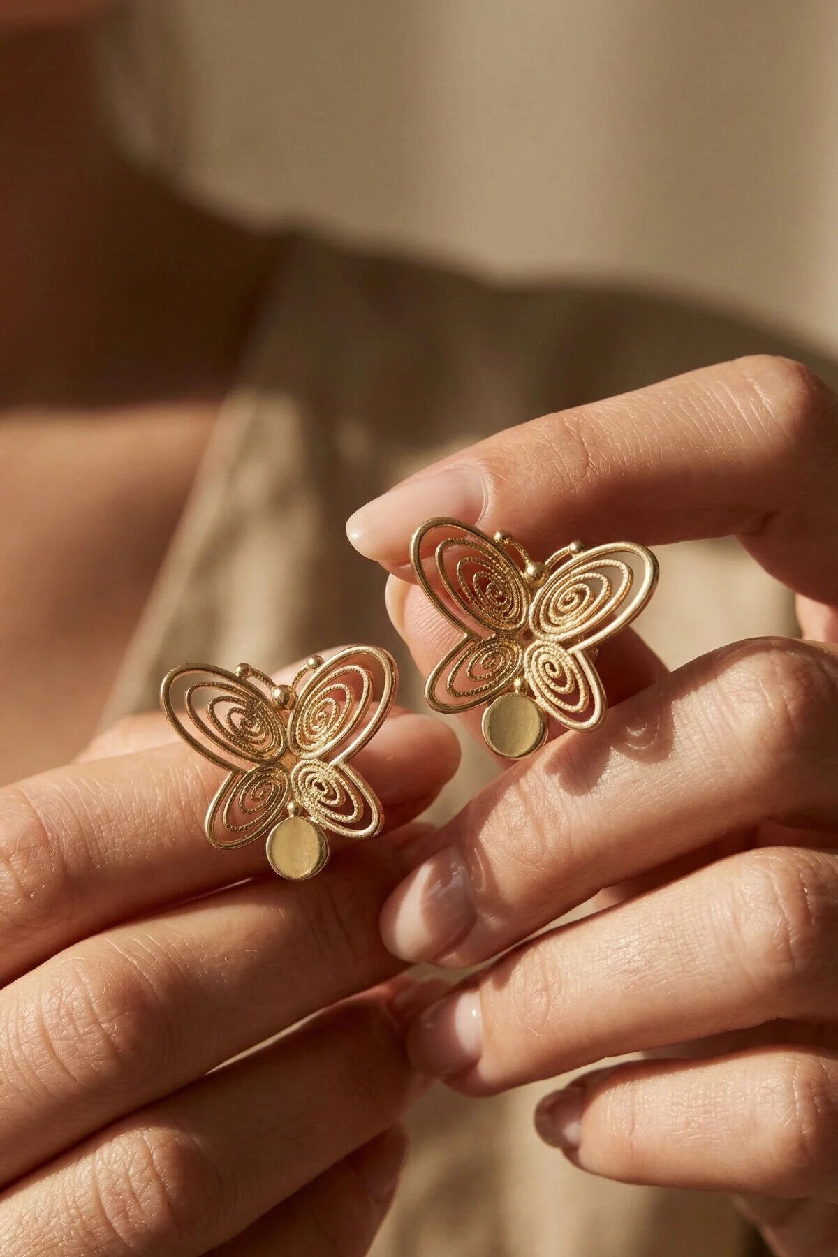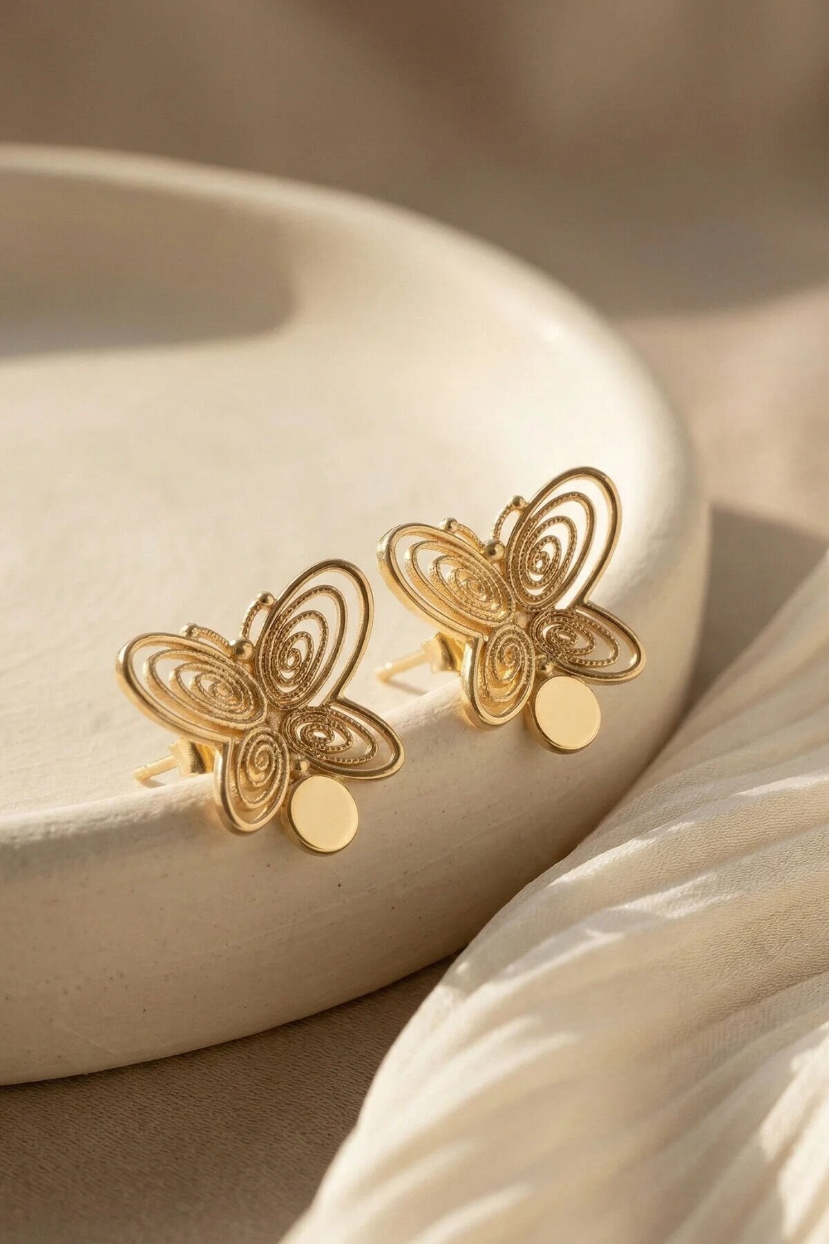 Füsün Masumiyet Müzesi Kelebek Küpe Pullu Altın Kaplama