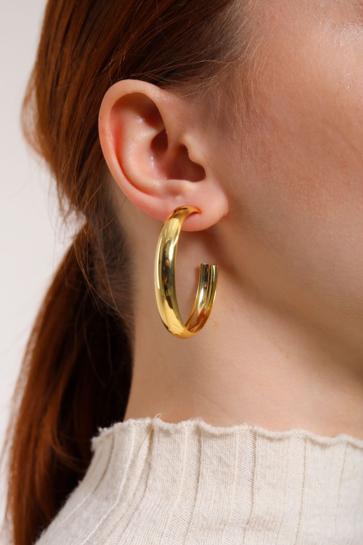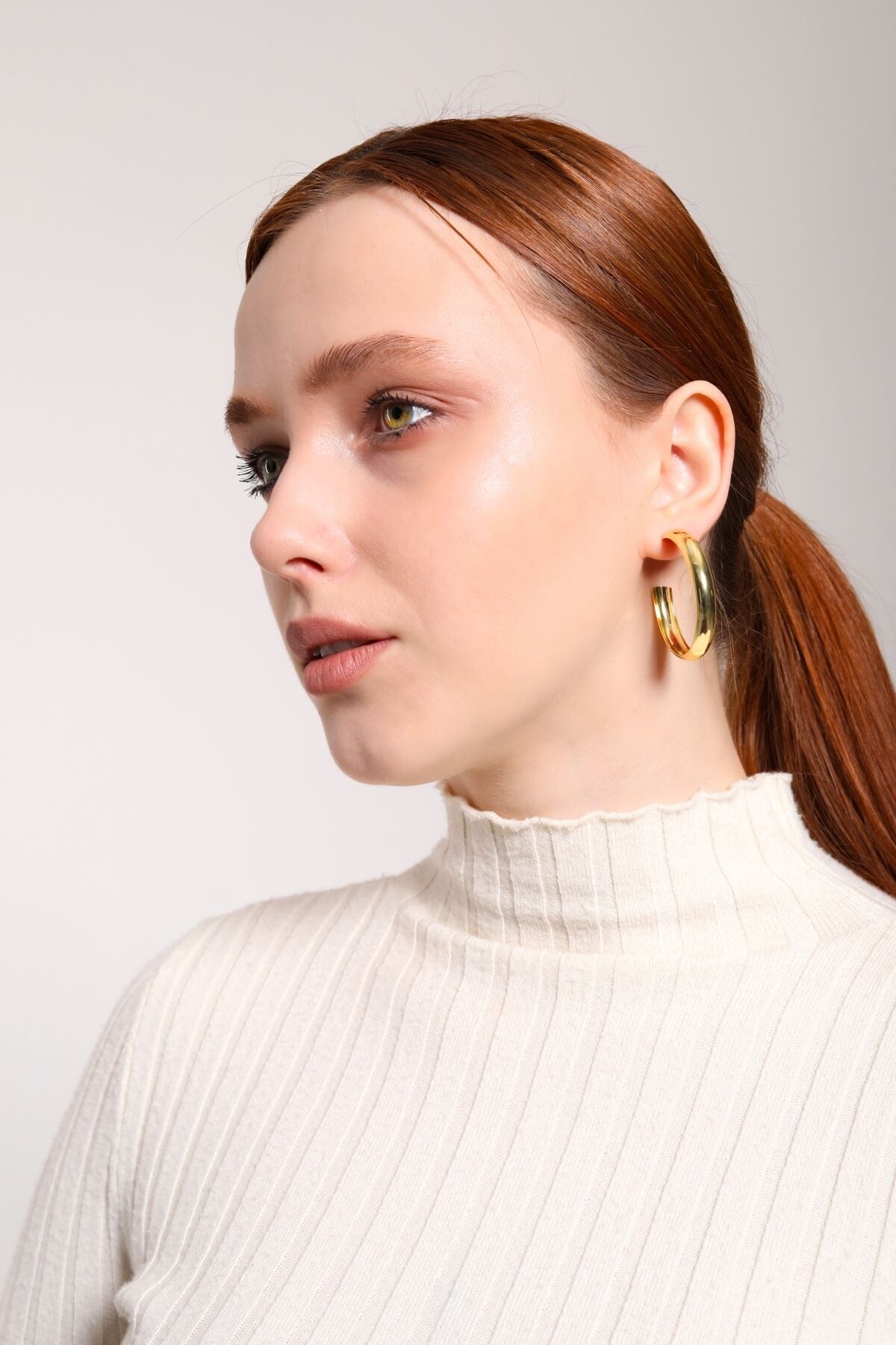 Aurrari 2'li İnce Düz Halka Parlak Yüzey Altın Kaplama Küpe Seti, modern ve zarif tasarımı ile öne çıkan bir takı koleksiyonudur. İki adet halka şeklindeki küpe, klasik ve estetik tarzı seven kadınlar için mükemmel bir seçenektir. Kullanım: Bu özel set, özel günlerde şıklık ve zarafet arayan kadınlar için idealdir. Şık ve resmi kıyafetlerle mükemmel bir uyum sağlar. Kulak deliğine takılabilen bu çivi küpeler, plastik kapama aparatı ile kolayca kilitlenir. Tasarım: Geniş düz halka tasarımı, modern ve minimalist bir tarza sahiptir. Zarif ve sade görünümü, günlük kullanım ve özel günler için uygundur. İnsanlık tarihinin en eski takı tasarımlarından biri olan halka motifini şık bir dokuyla sunar. Hammadde: Ürün, yüksek kaliteli metallerin alaşımından üretilmiştir. Sağlam ve uzun ömürlü bir yapıya sahiptir. Altın kaplamadır ve son derece parlak bir yüzeye sahip olup, uzun süre parlığını korur. Kararma: Parfüm, krem, dezenfektan, alkol gibi kimyasal maddelerle temas etmediğinde kararma yapmaz, uzun süre parlaklığını muhafaza eder. Temizlik: Aurrari Bijuteri ürünleri, temiz ve yumuşak bir bezle silinerek kolayca temizlenebilir ve doğal ışıltısına kavuşabilir. Sağlık: Kaliteli metal alaşımından üretildiği için vücuda zarar vermez. Alaşım nikel içermediğinden alerji yapma riski taşımaz.