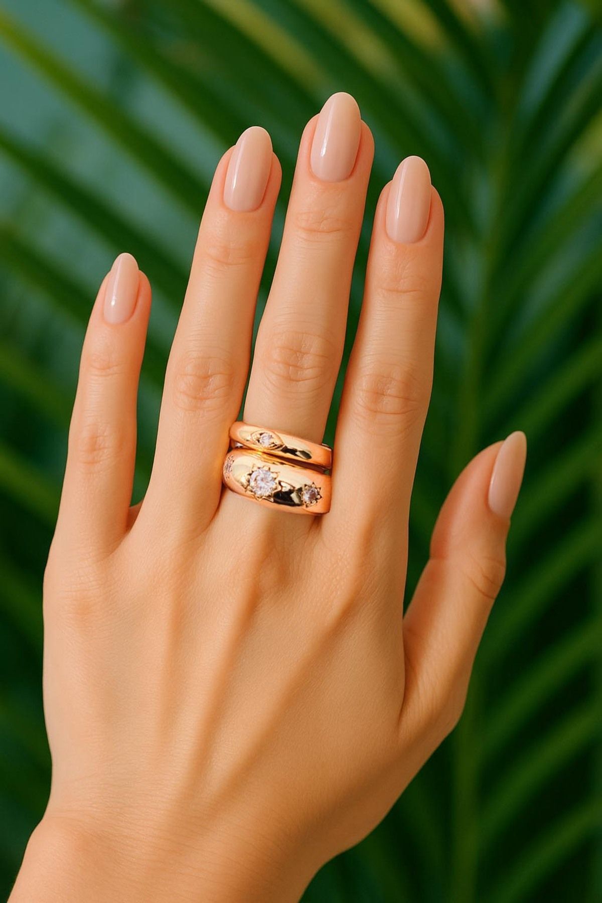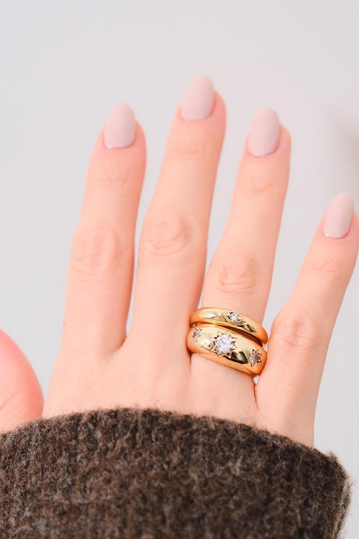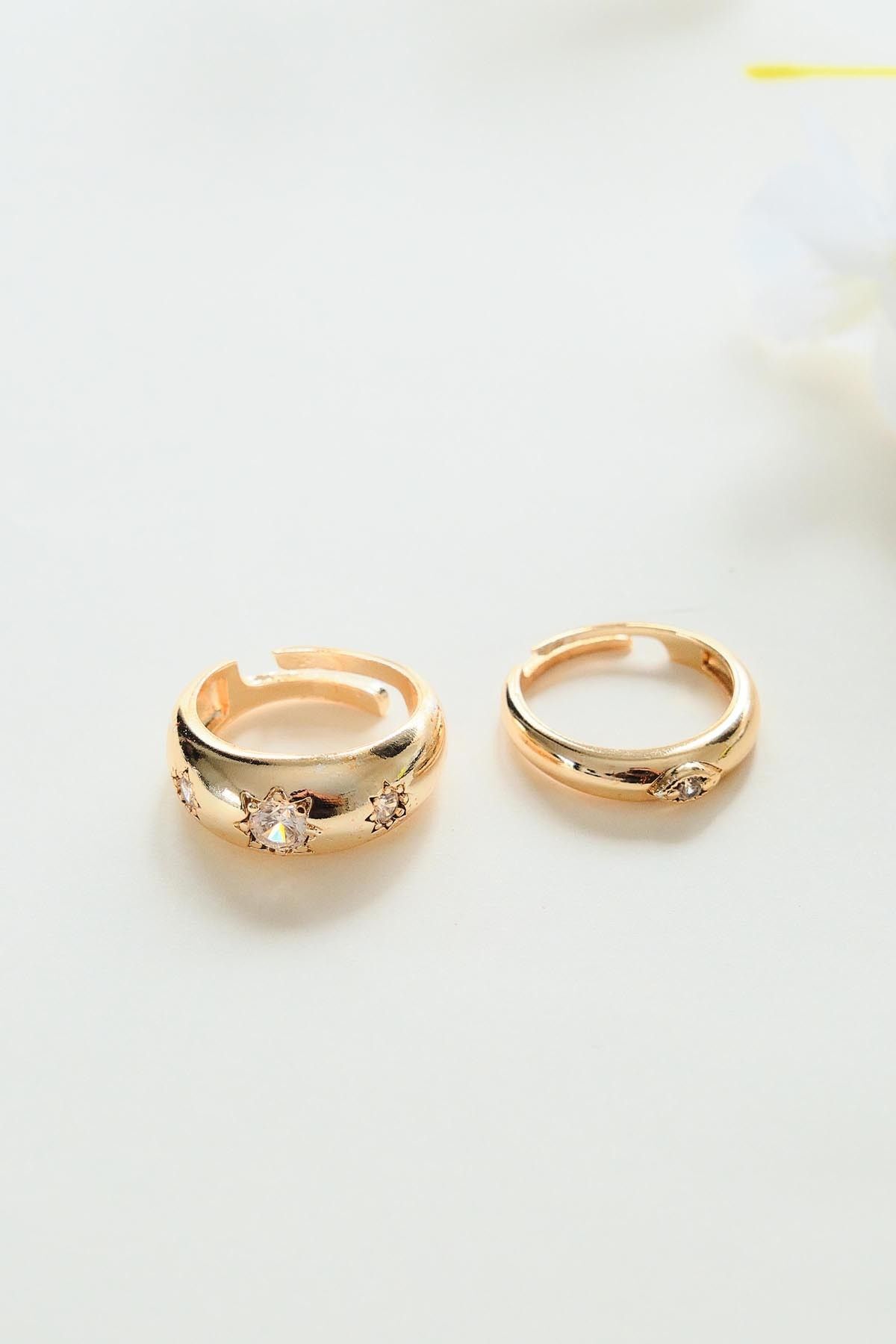Gold 2'li Zirkon Taşı Bombeli Yüzük Seti
