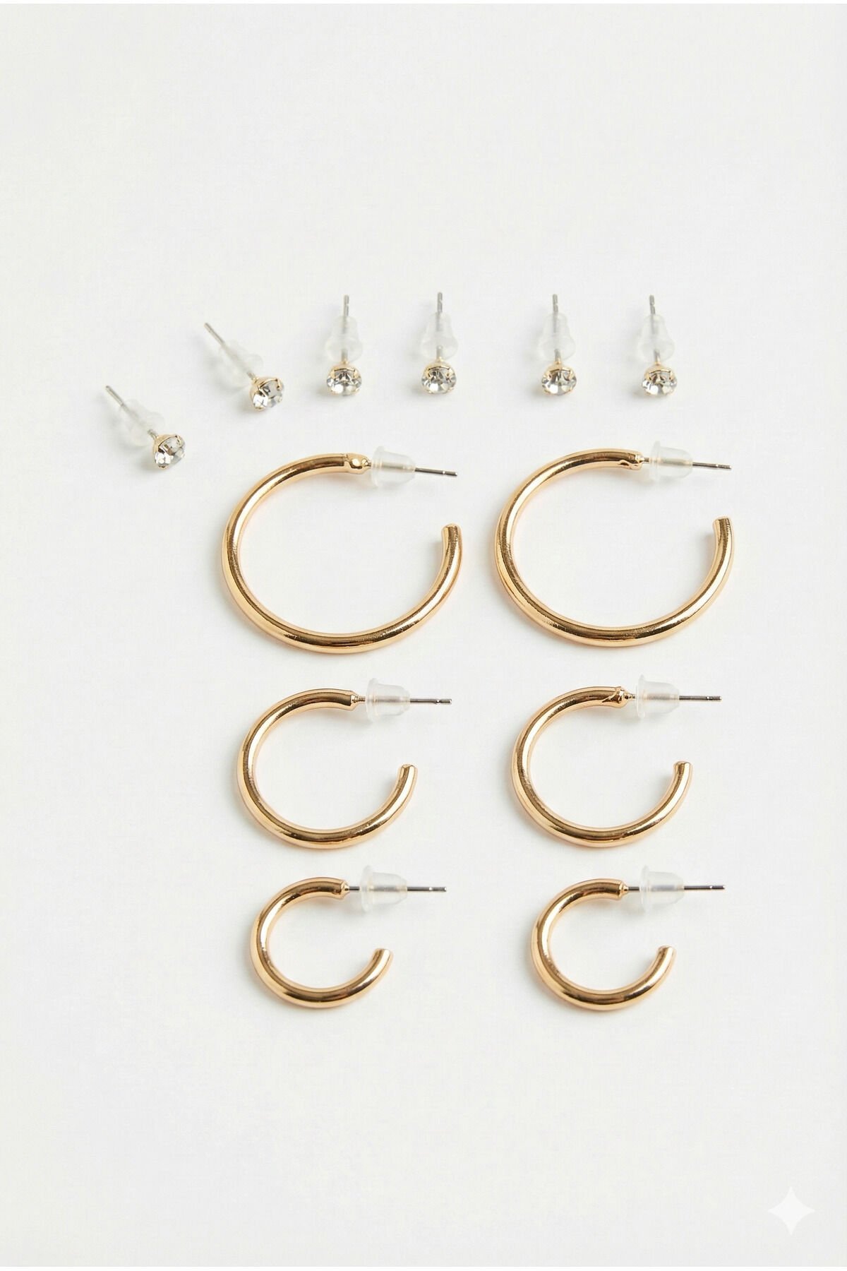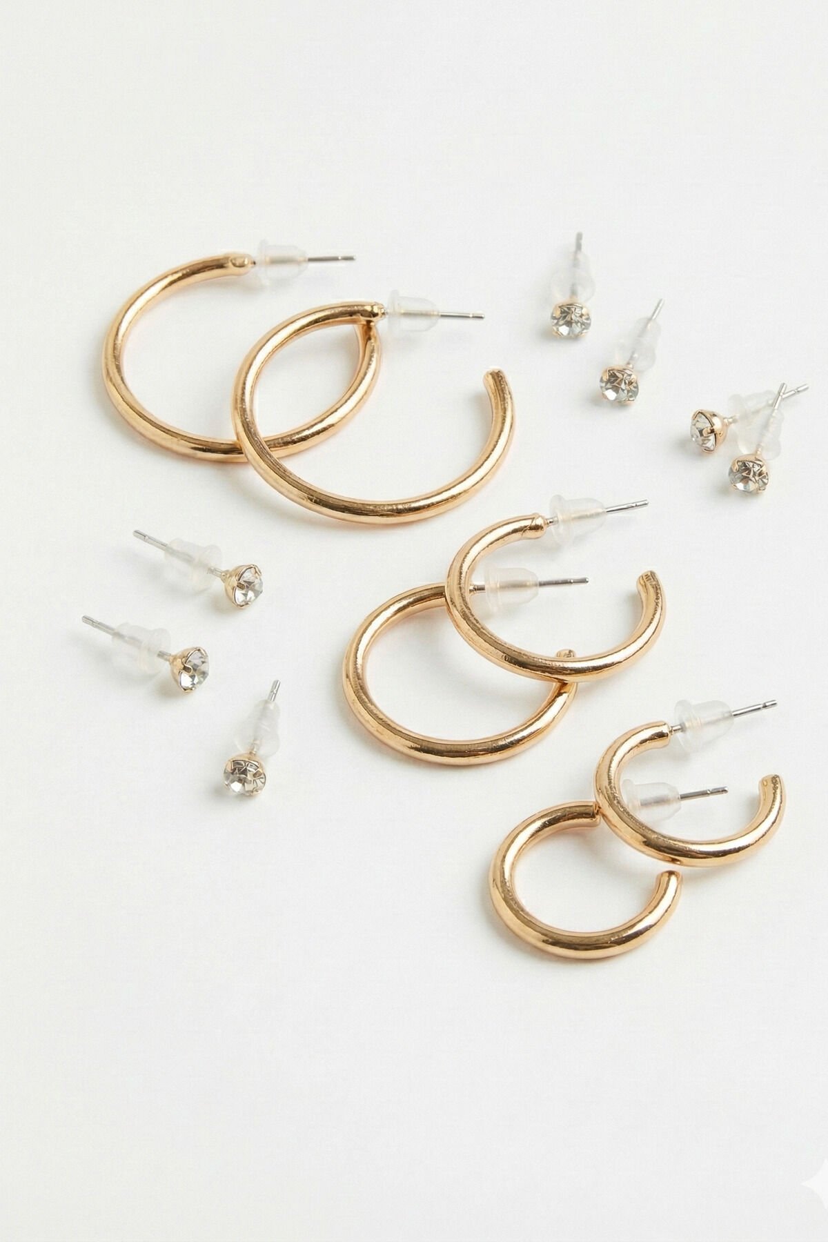 Gold 3 Çift Halka Ve 6 Adet Zrikon Taşlı Küpe Seti