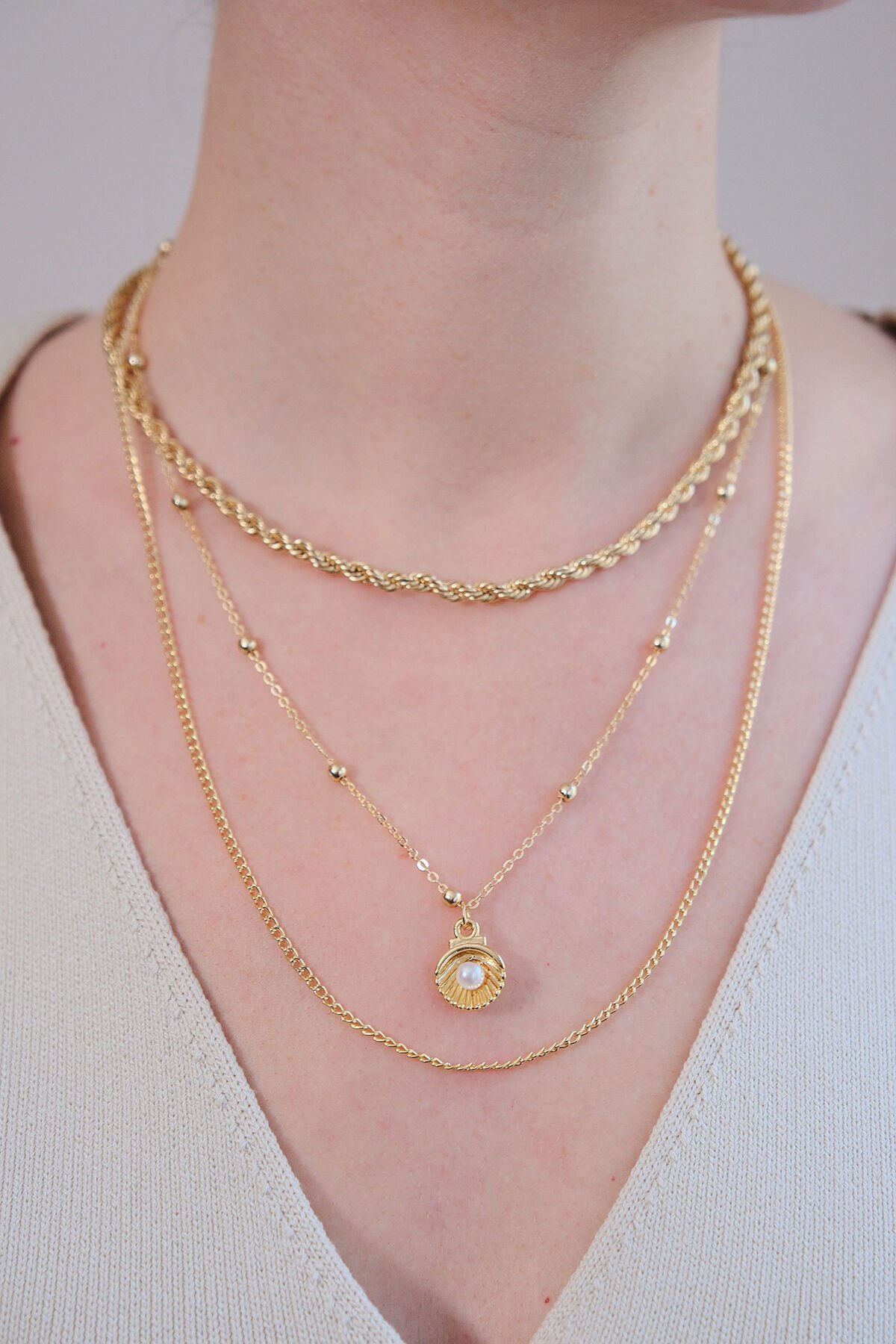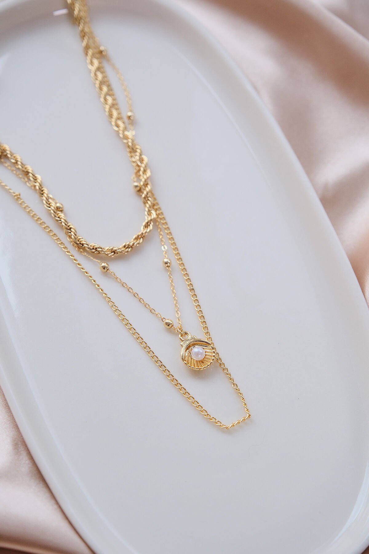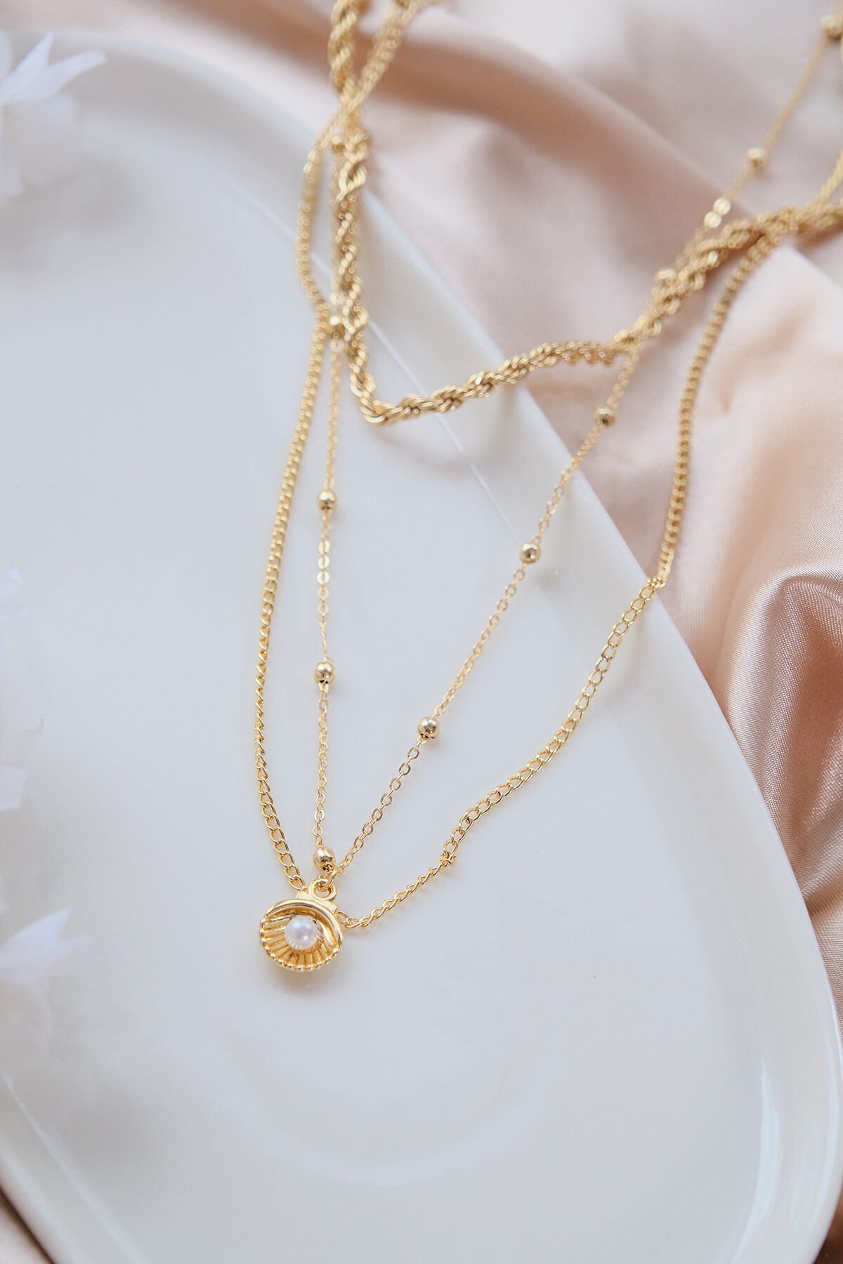 Gold 3'lü İncili İstiridye Kolye