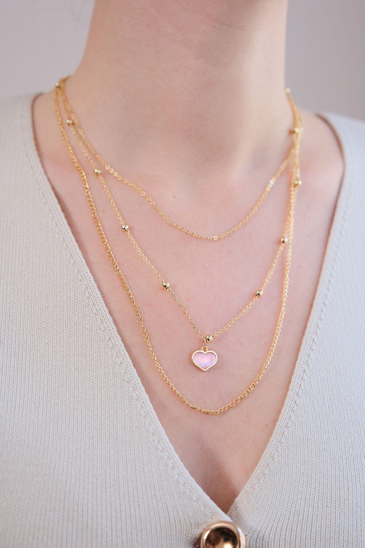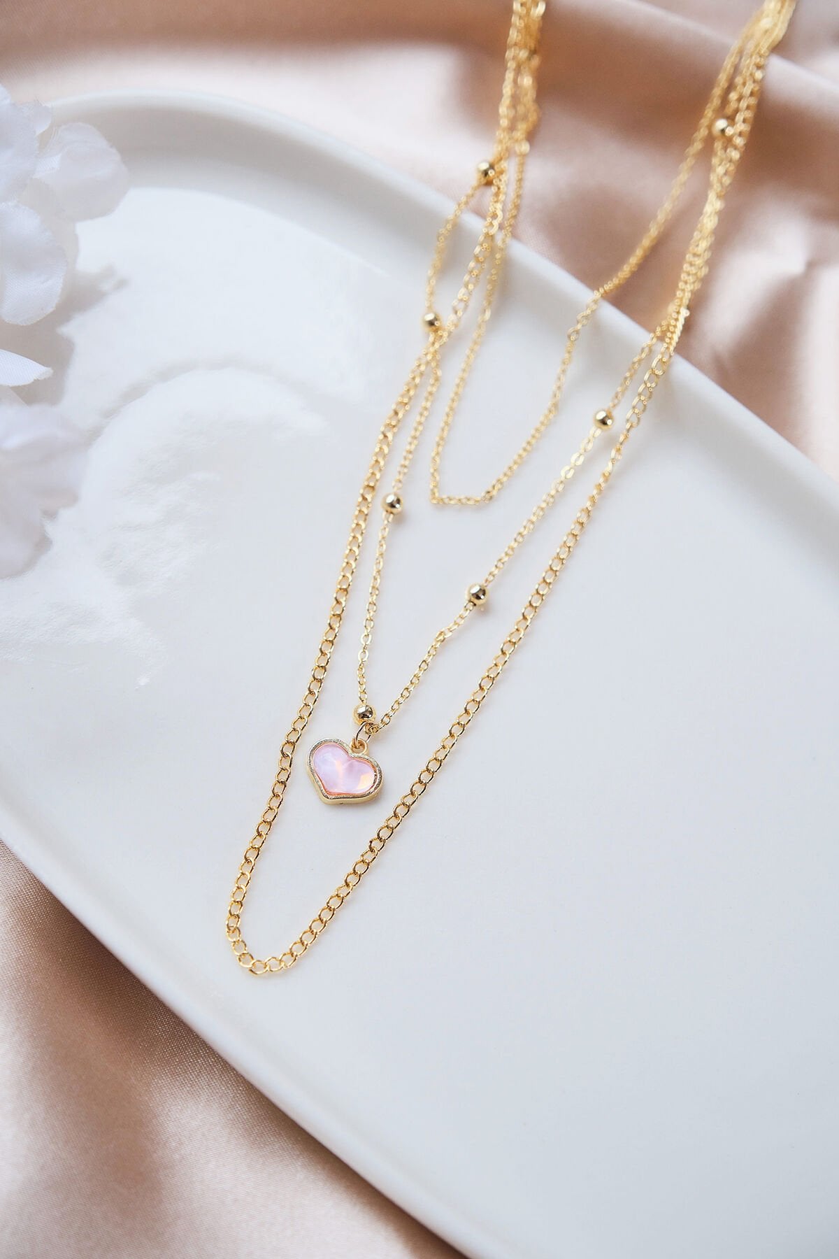 Gold 3'lü Pembe Kalp Kolye