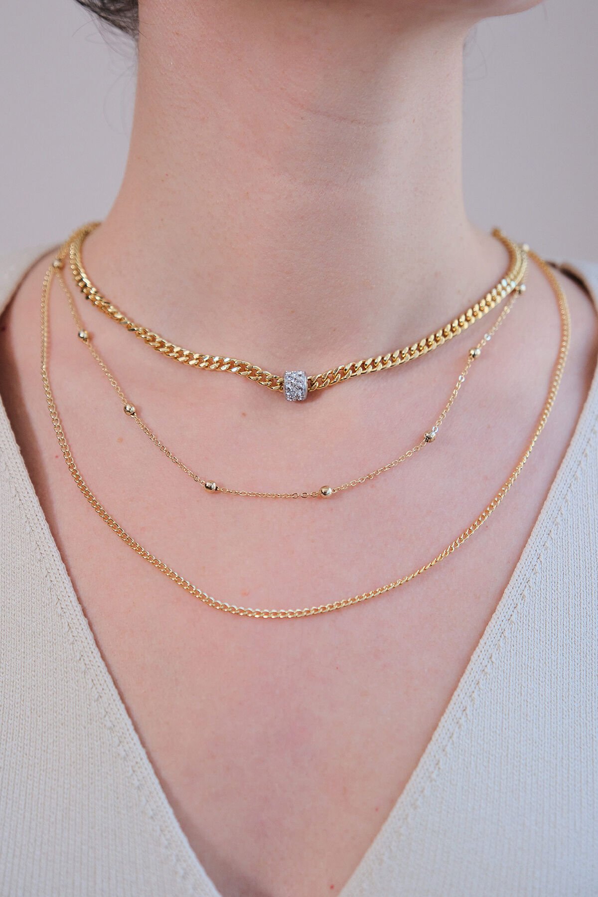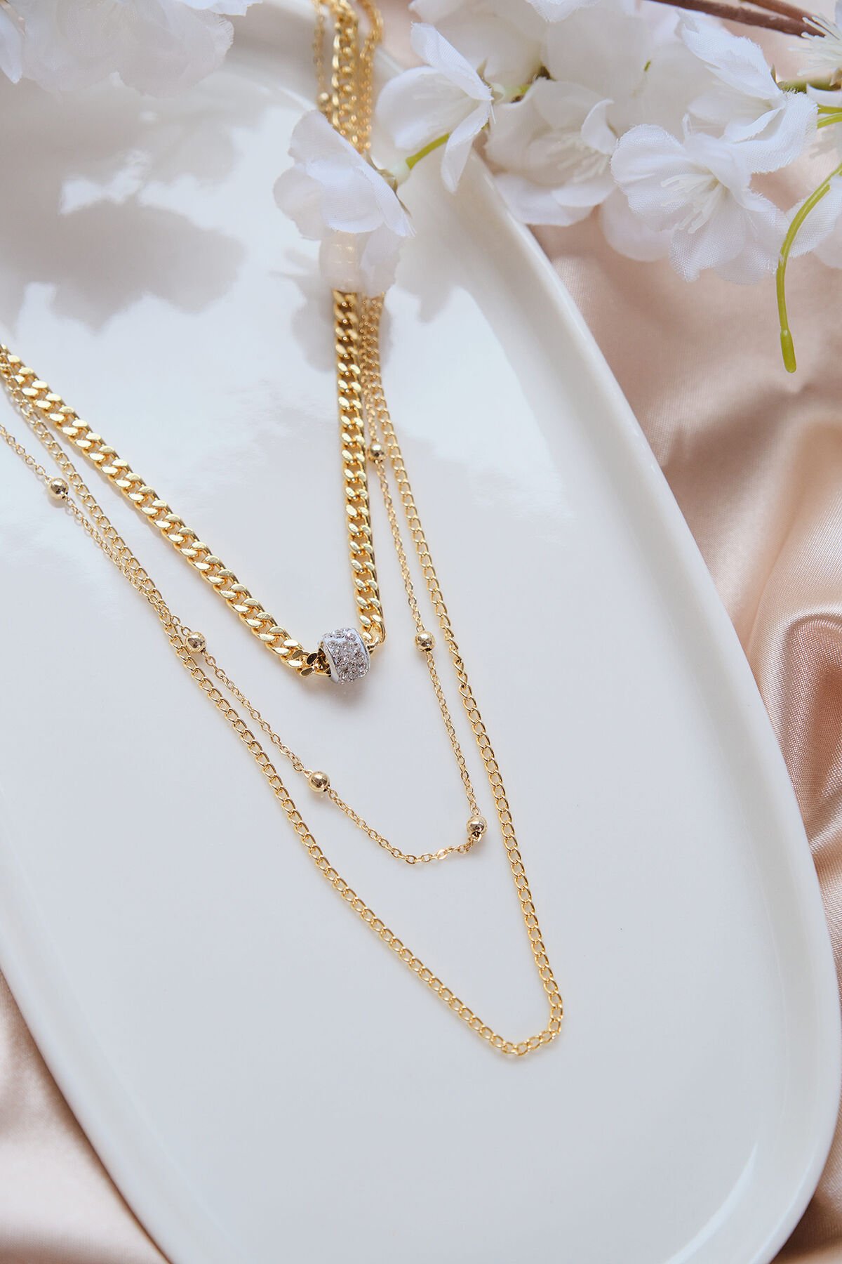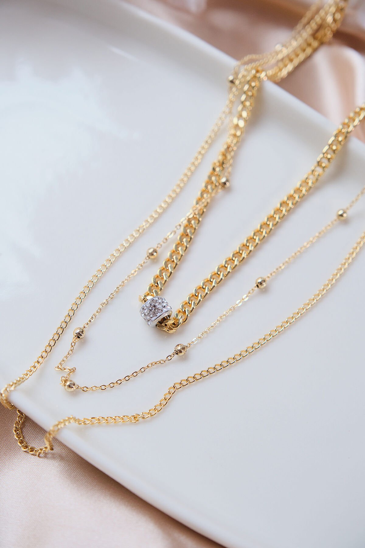 Gold 3'lü Zirkon Taşlı Silindir Kolye