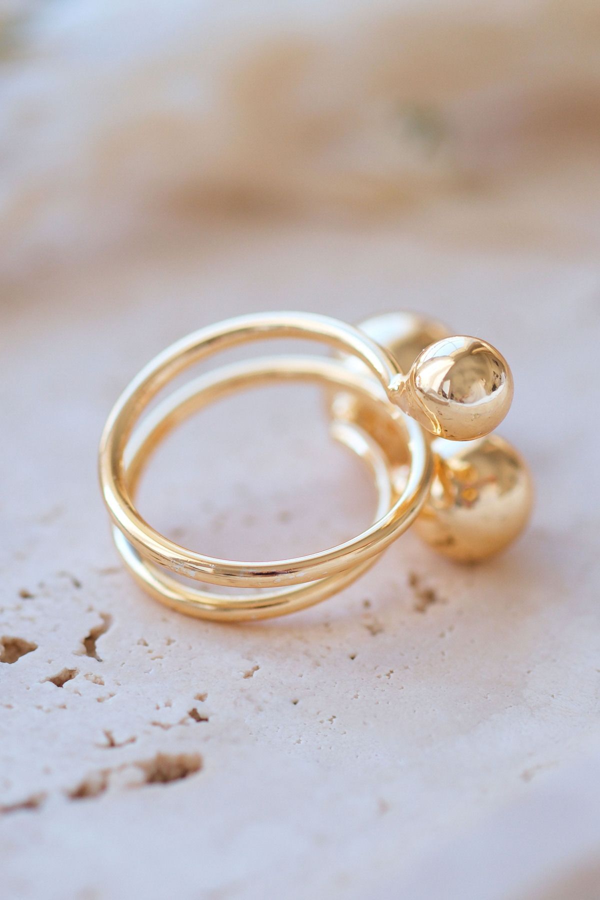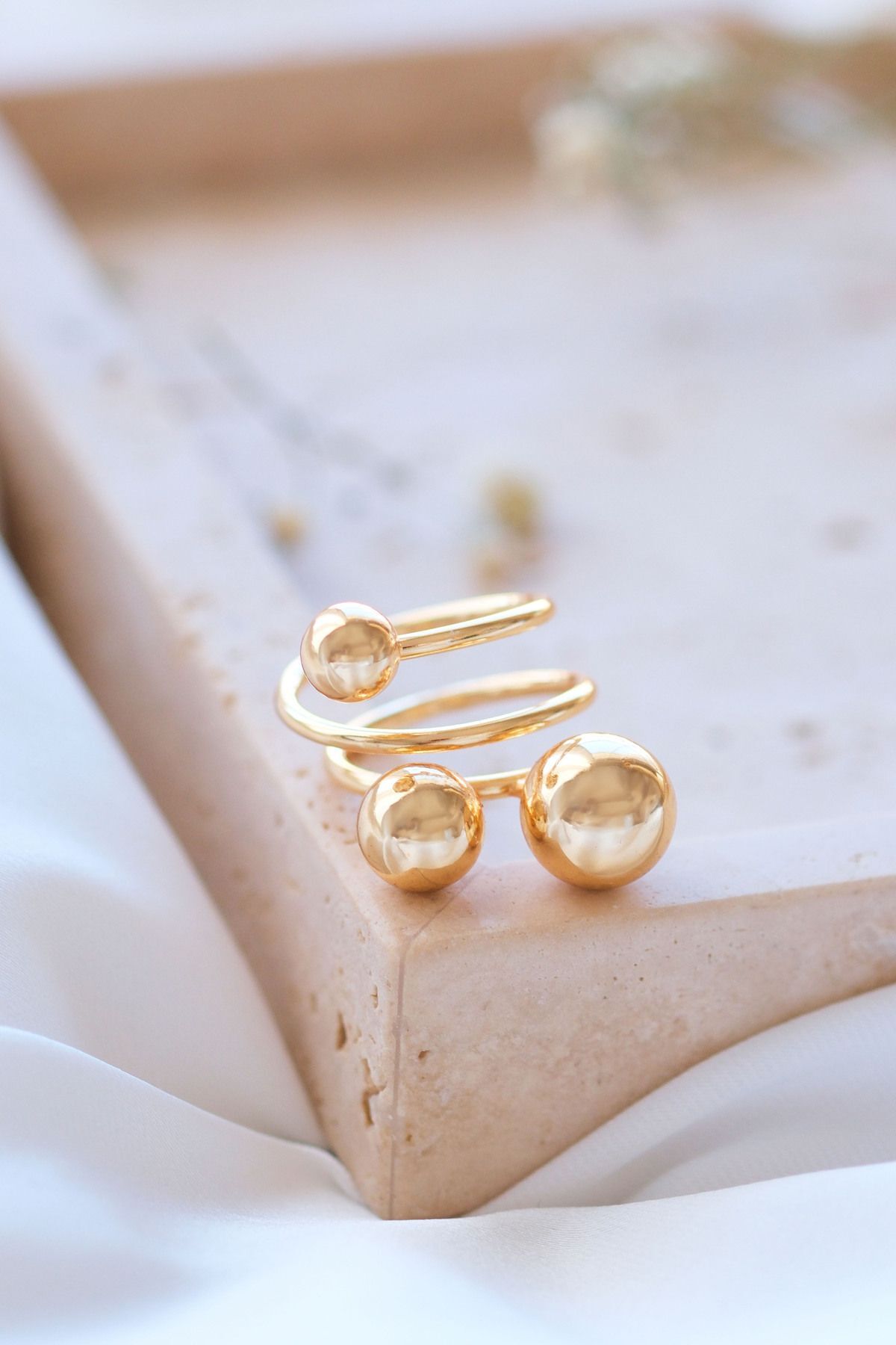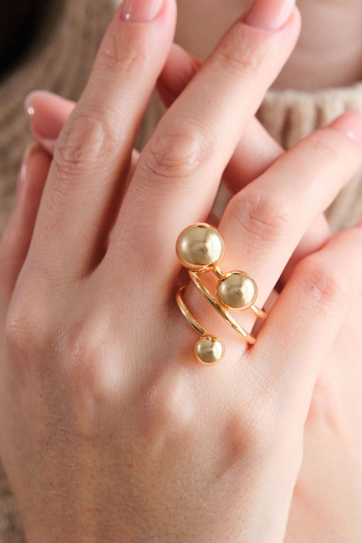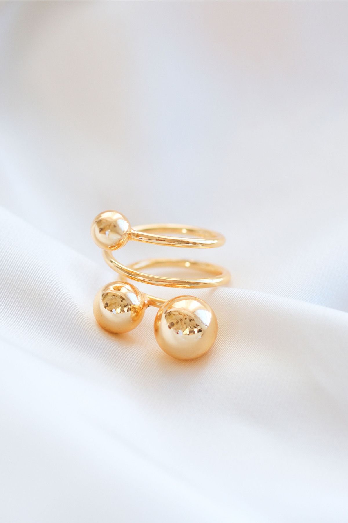 Kadın Altın Kaplama Big Bubble Tasarım Ayarlanabilir Yüzük - Hacimli Balon Model Yüzük