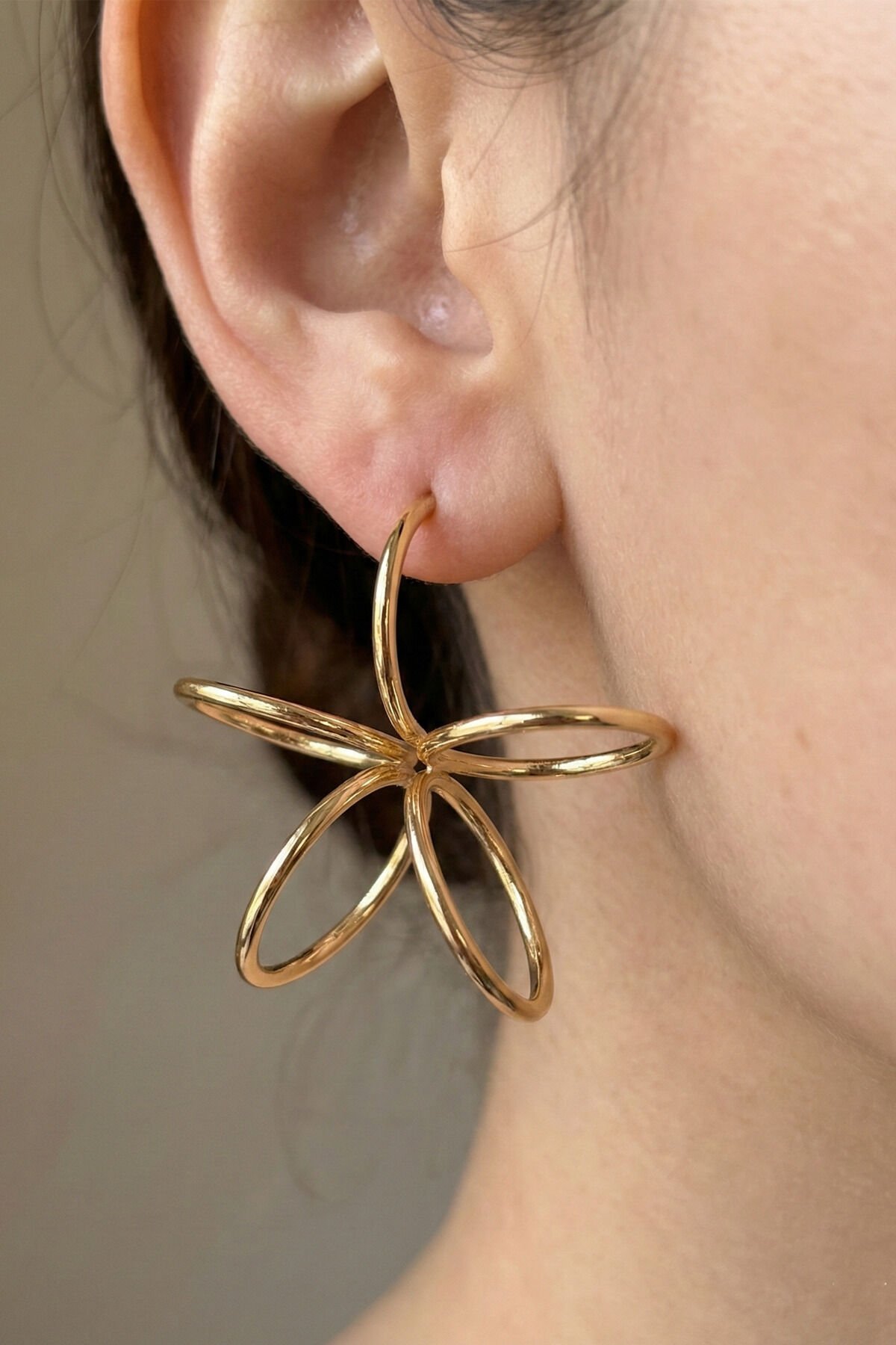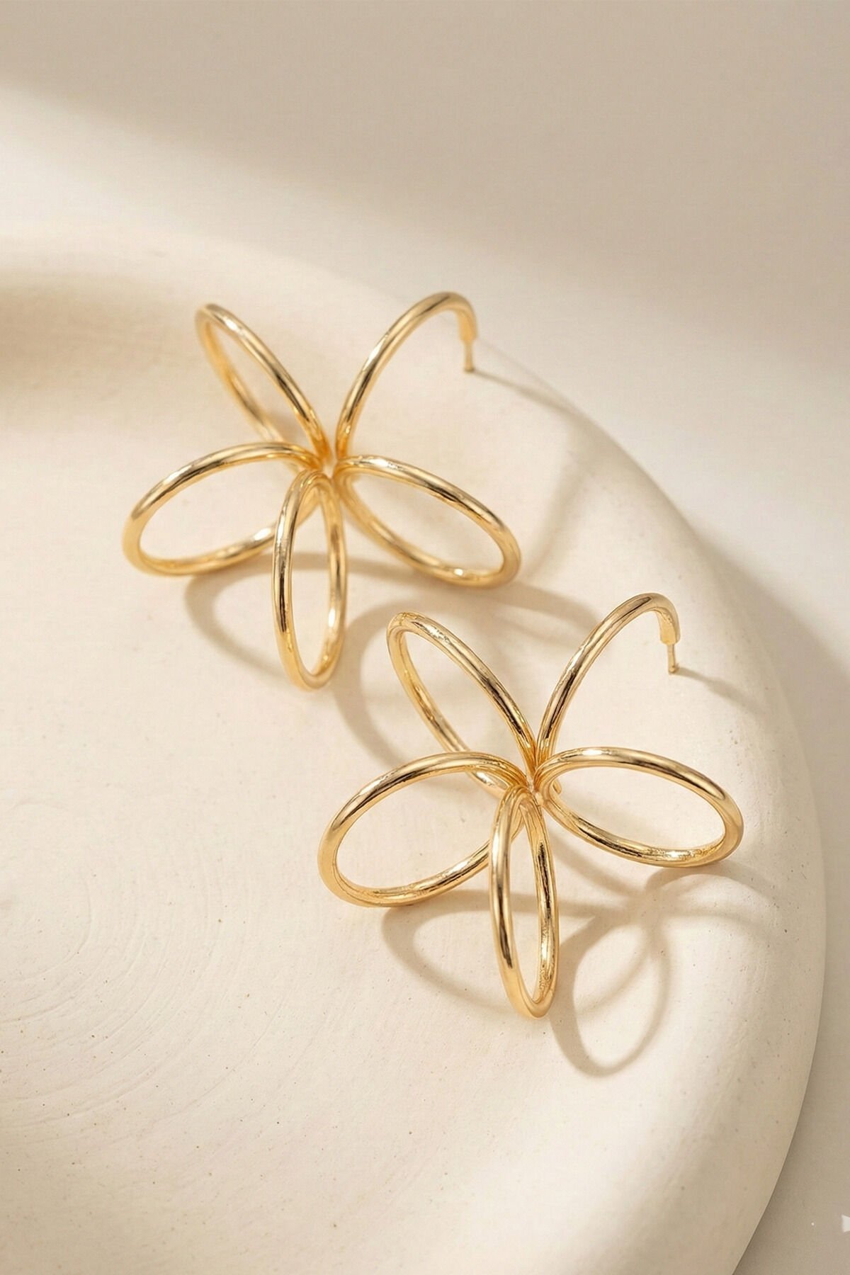Gold Çiçek Desenli Yay Halka Küpe