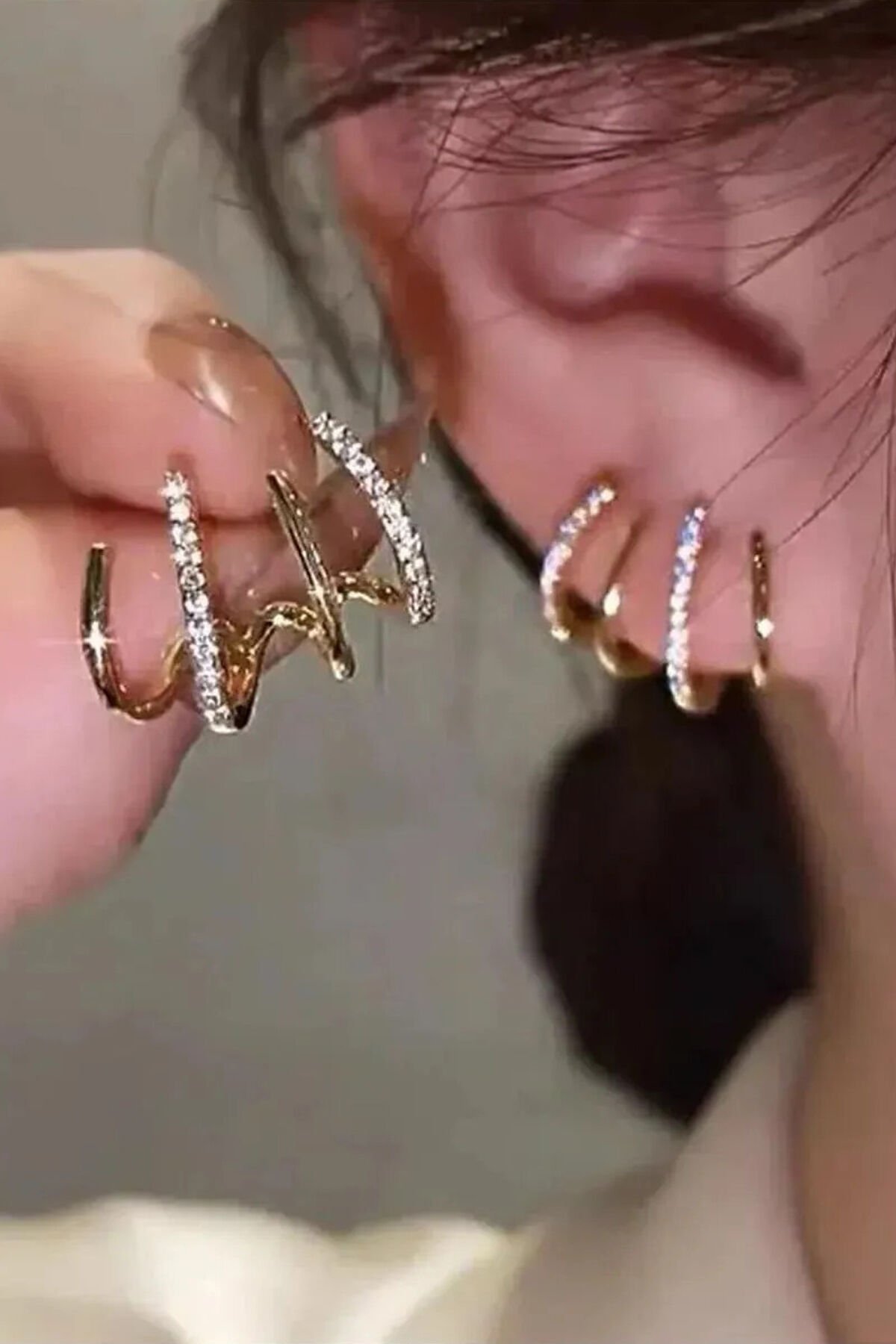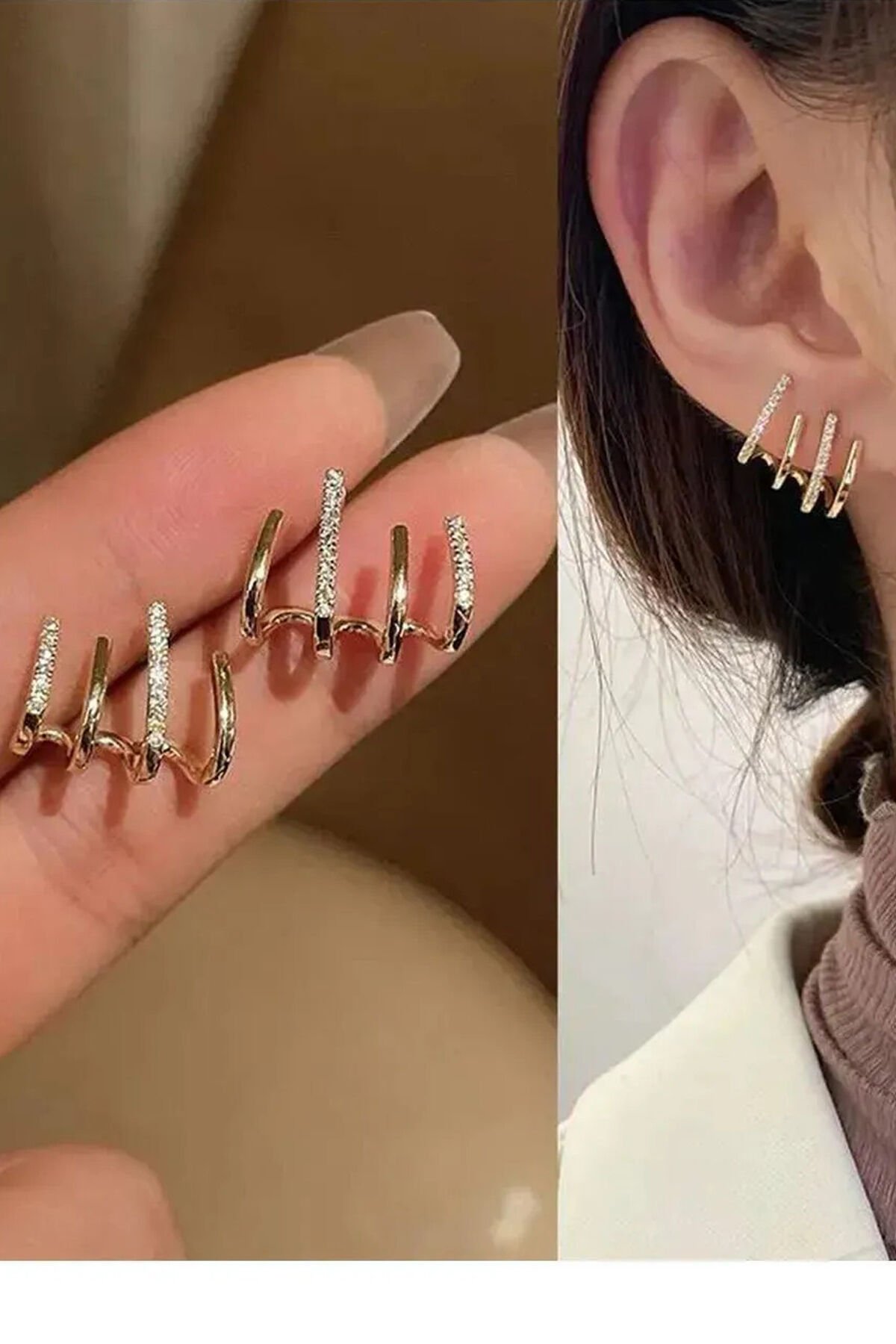 Gold Çoklu Premium Zirkon Taşlı Küpe