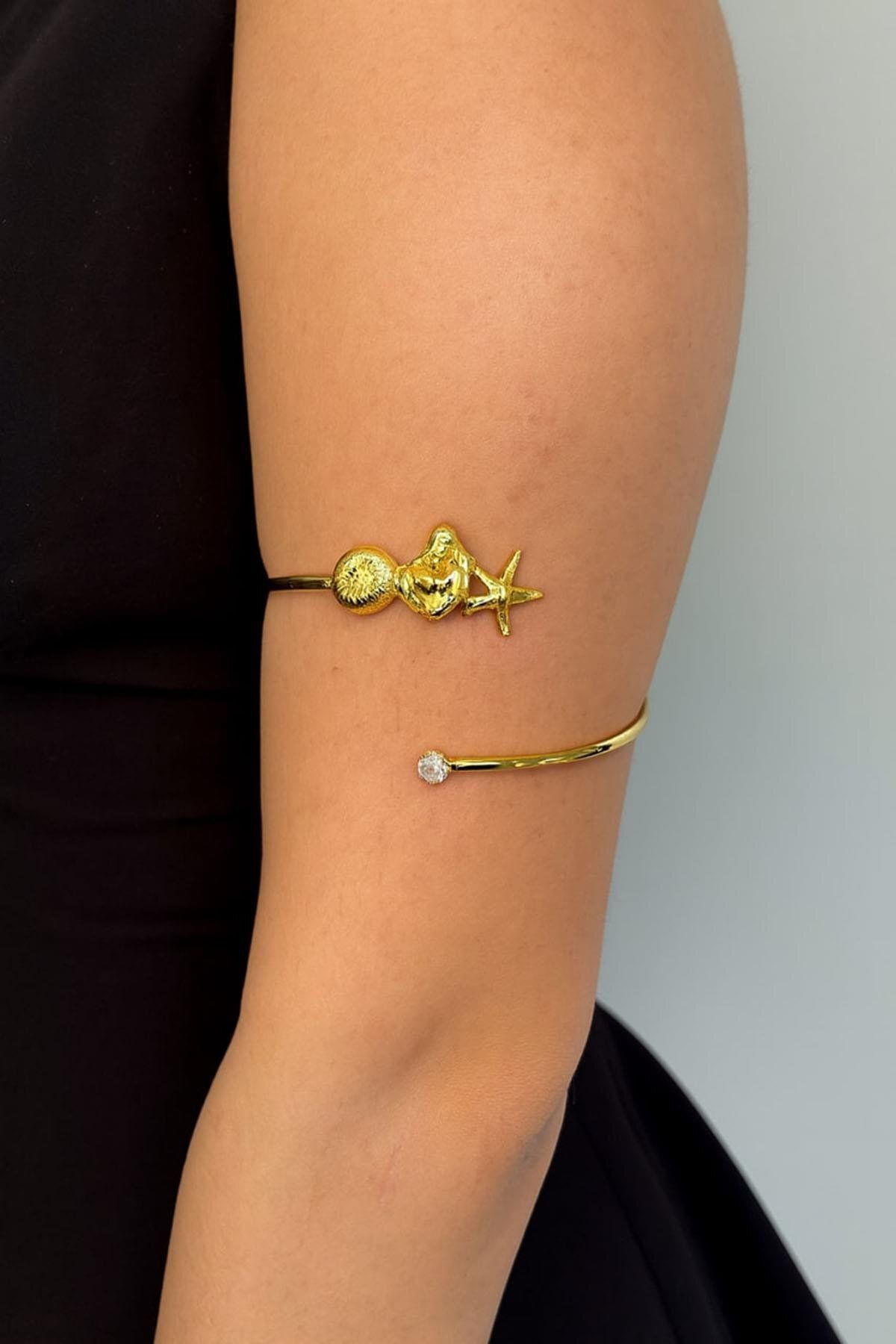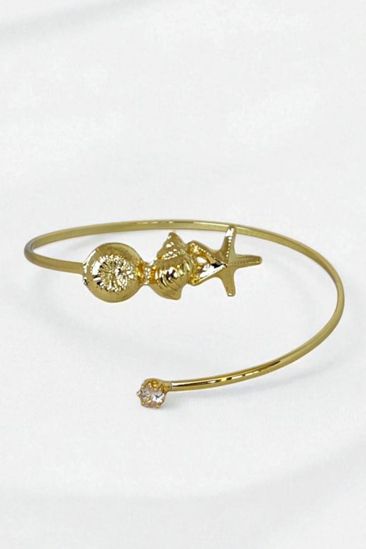Gold Deniz Kabuğu Ve Kalp Pazu Bandı Üst Kol Bilekliği Ayarlanabilir