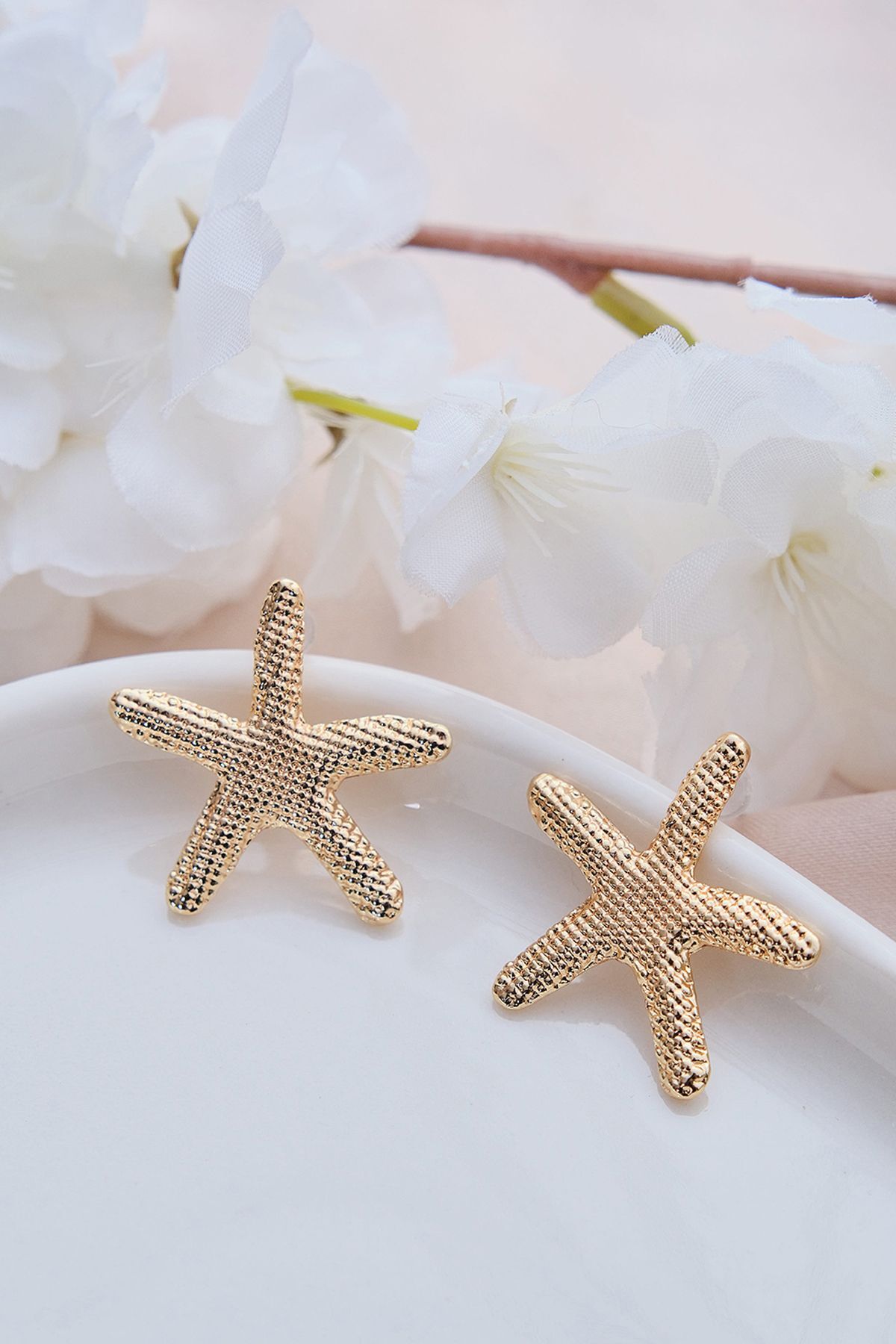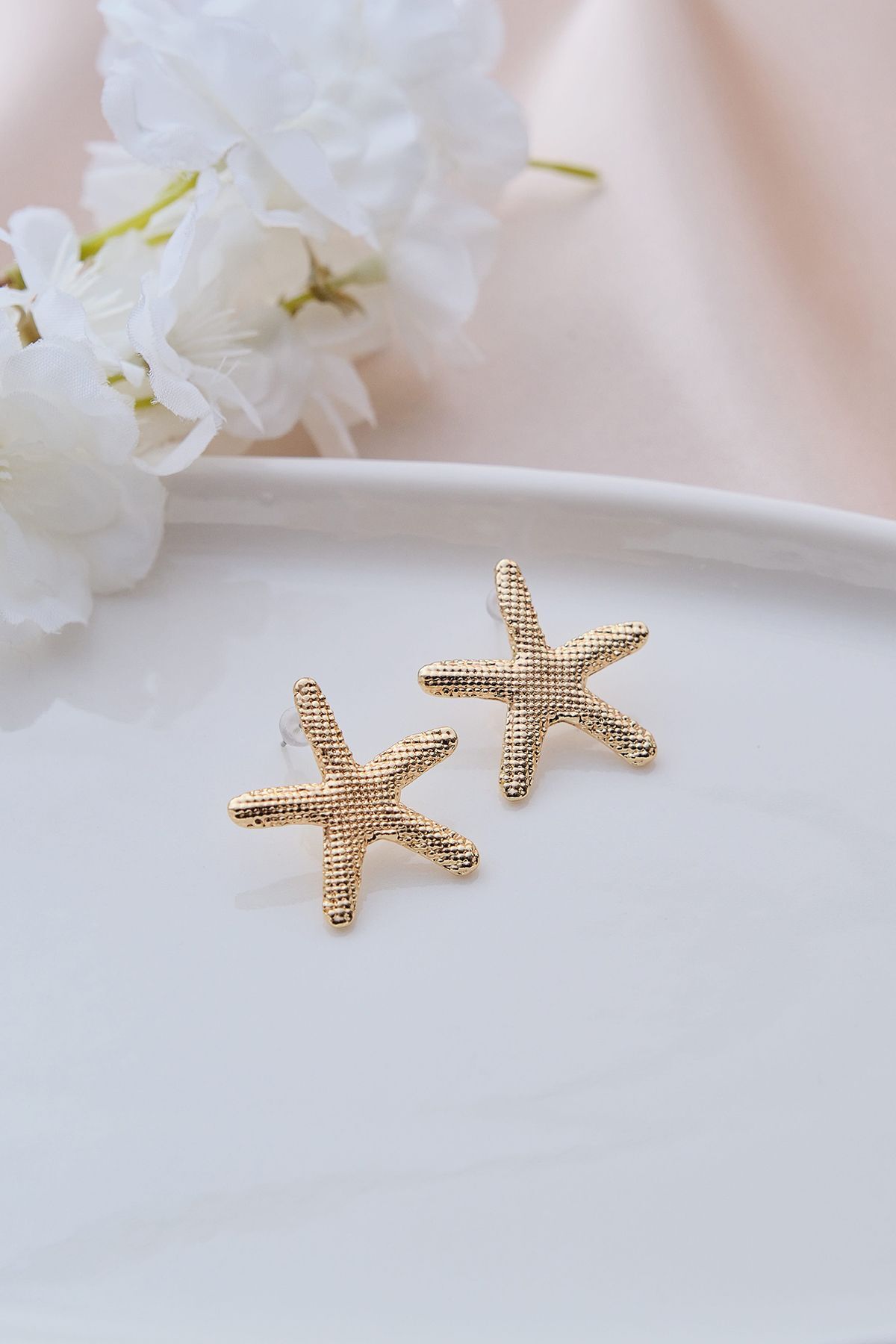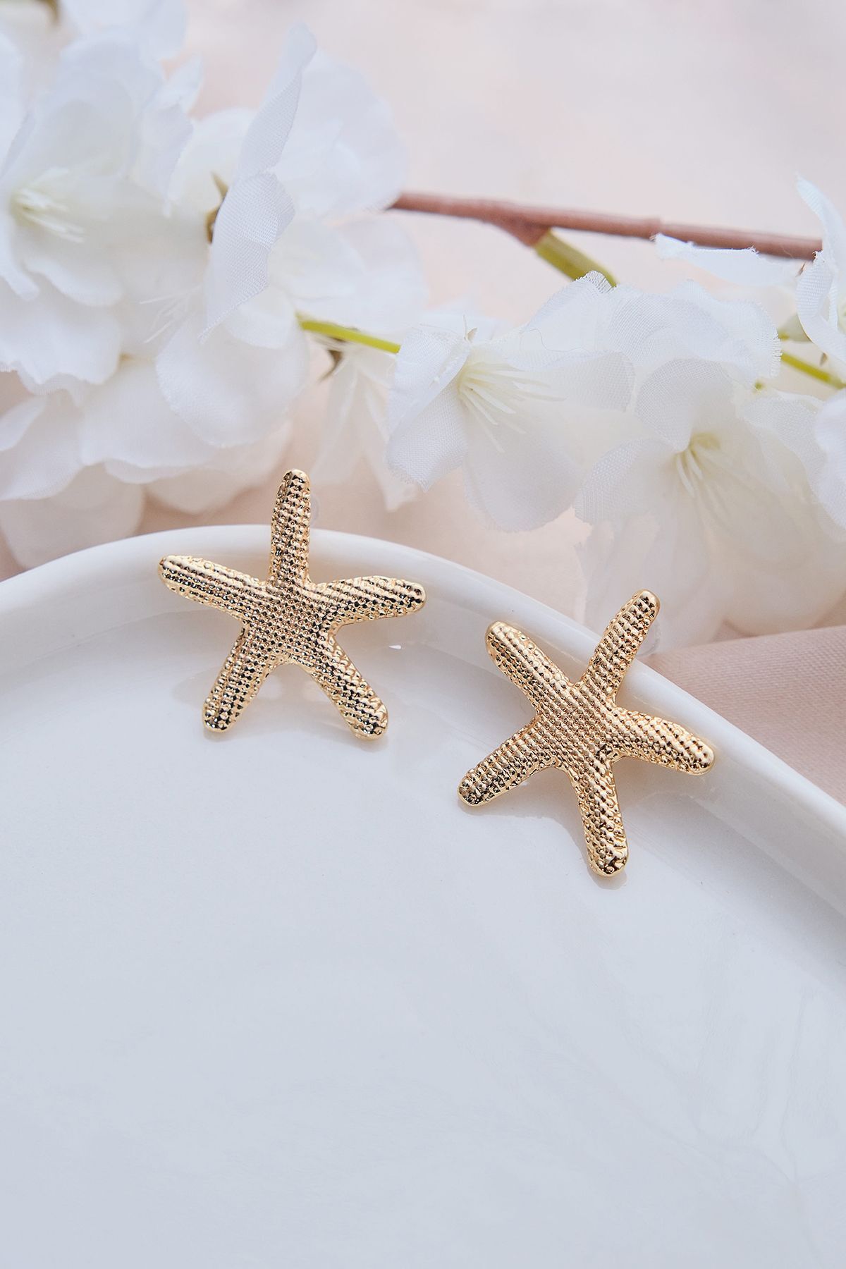 Bu deniz yıldızı küpeleri, Aurrari’nin Deniz Kabuğu ve Kalp Pazu Bandı ile kombinleyerek marin temasını stilinizde bütünleştirebilir; ya da beyaz keten bir elbise ile kullanarak yazın ferahlığını ön plana çıkarabilirsiniz.