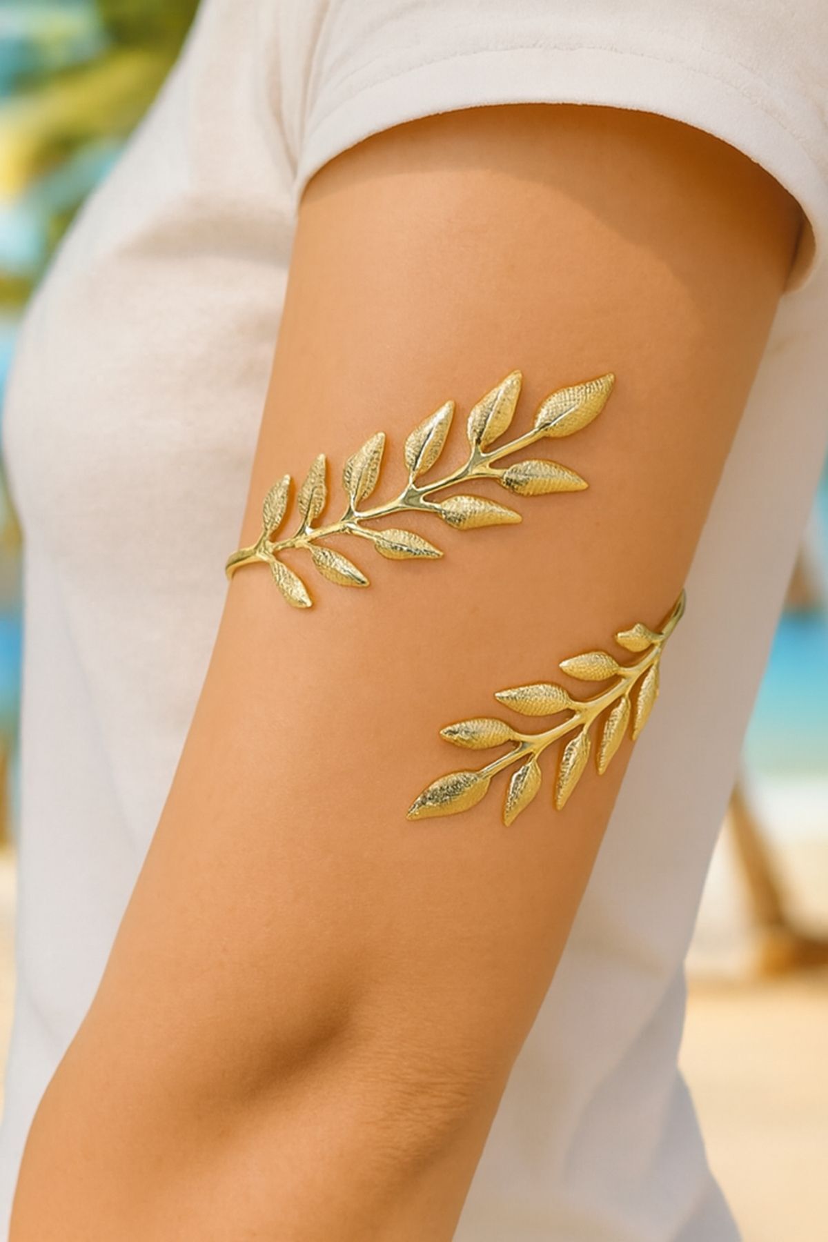 Gold İnce Yaprak Pazu Bandı Üst Kol Bilekliği Ayarlanabilir