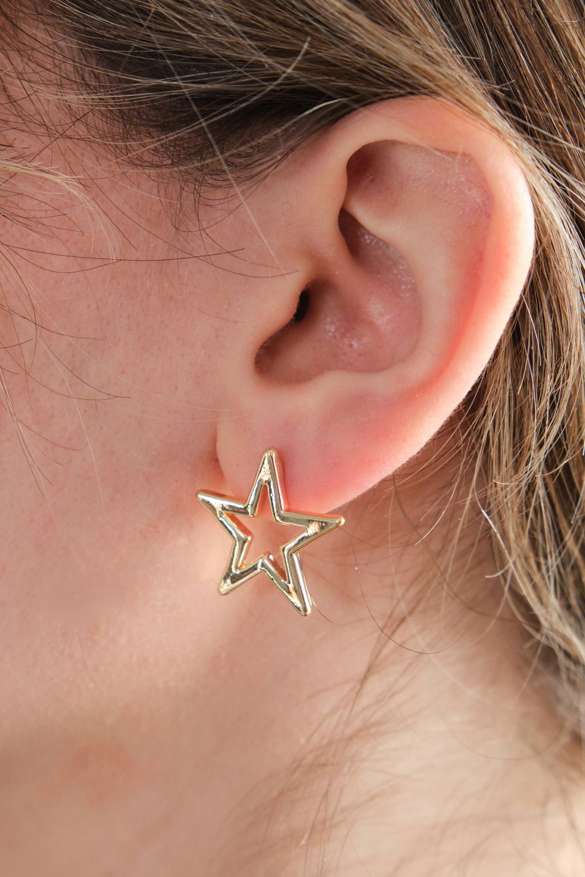 - Bu şık küpeler, iki adet içi boş yıldız figüründen oluşarak hem modern hem de zarif bir tasarım sunuyor. Üstteki küçük yıldız ve alttaki büyük yıldız, birbirine bağlı sallantılı yapısıyla hareketli ve ışığı yansıtan bir görünüm kazandırır. Altın kaplama detaylar, küpelerin sofistike ve göz alıcı bir parlaklığa sahip olmasını sağlarken, dayanıklı yapısı uzun süreli kullanım sunar. İnce işçilikle tasarlanmış olan bu sallantılı yıldız küpeler, her tarza ve her ortama uyum sağlayan zamansız bir aksesuardır. Gündelik stilinize zarif bir dokunuş katmak veya özel günlerde parlamak isteyenler için ideal bir tercih olan bu küpeler, aynı zamanda anlamlı bir hediye seçeneğidir.